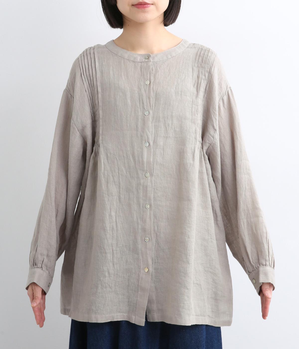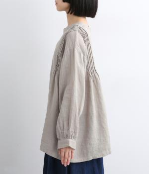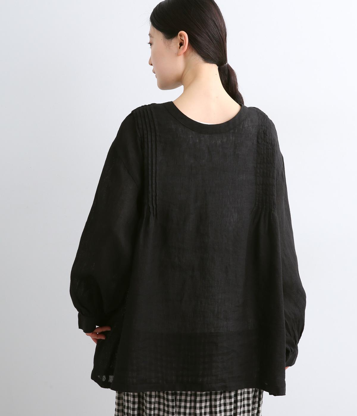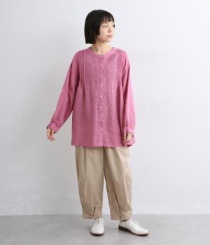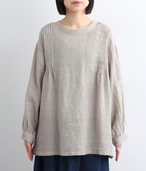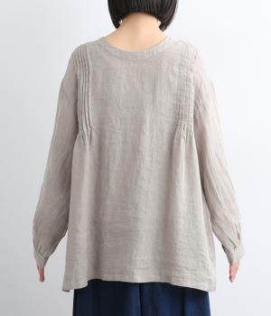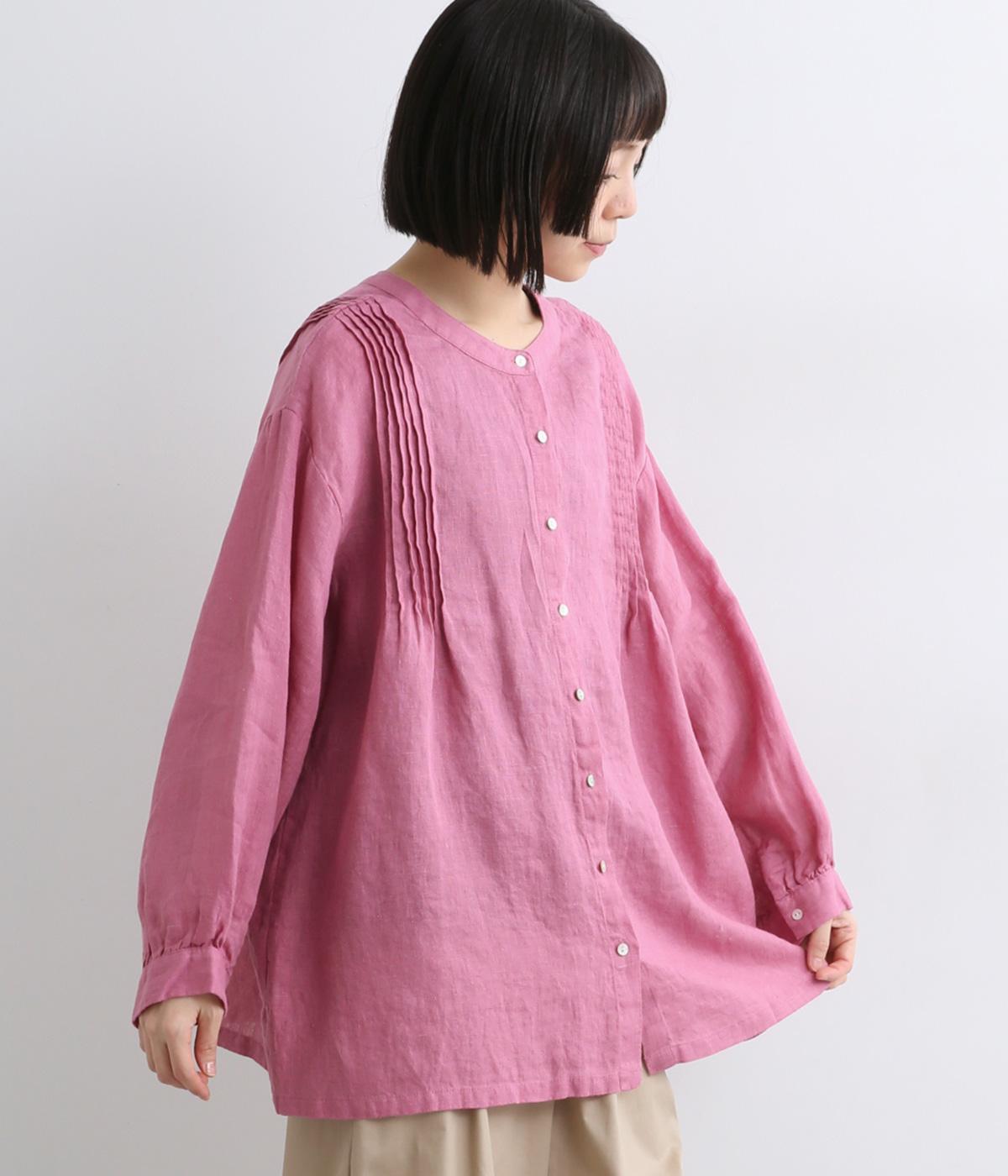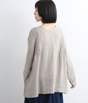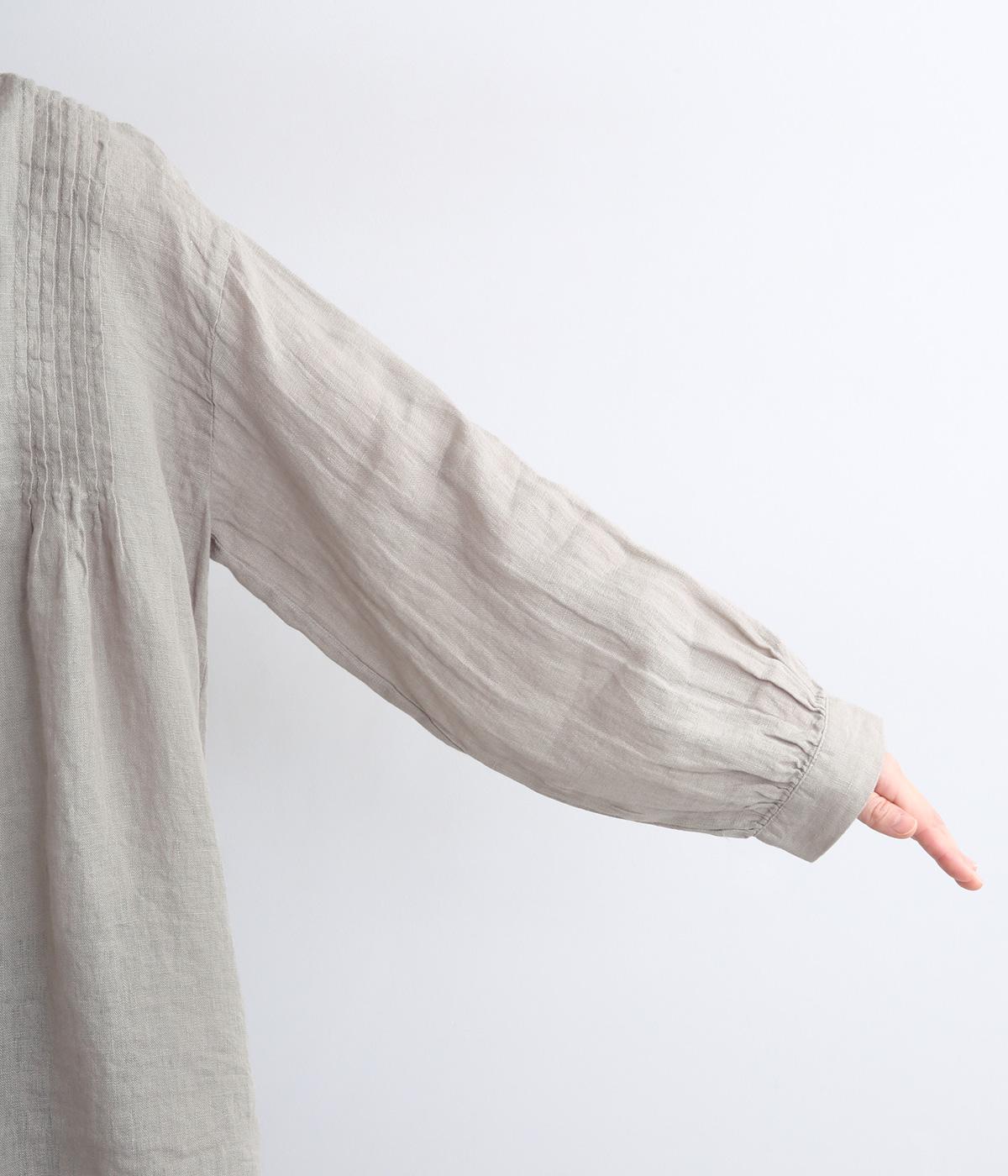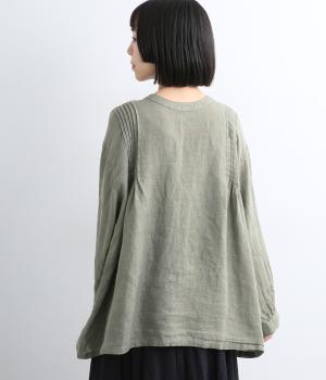 ふんわりとしたシルエットのブラウスを、前開きとプルオーバーの2wayで仕立てました。ナチュラルな素材を引き立てるシンプルなデザインに、ピンタックがさりげない華やかさを添えています。大人のカジュアルスタイルにぴったりな一枚です。