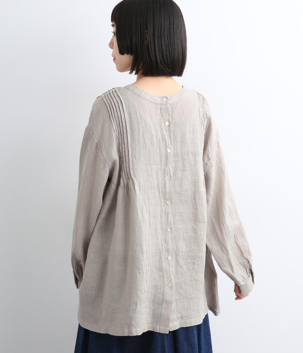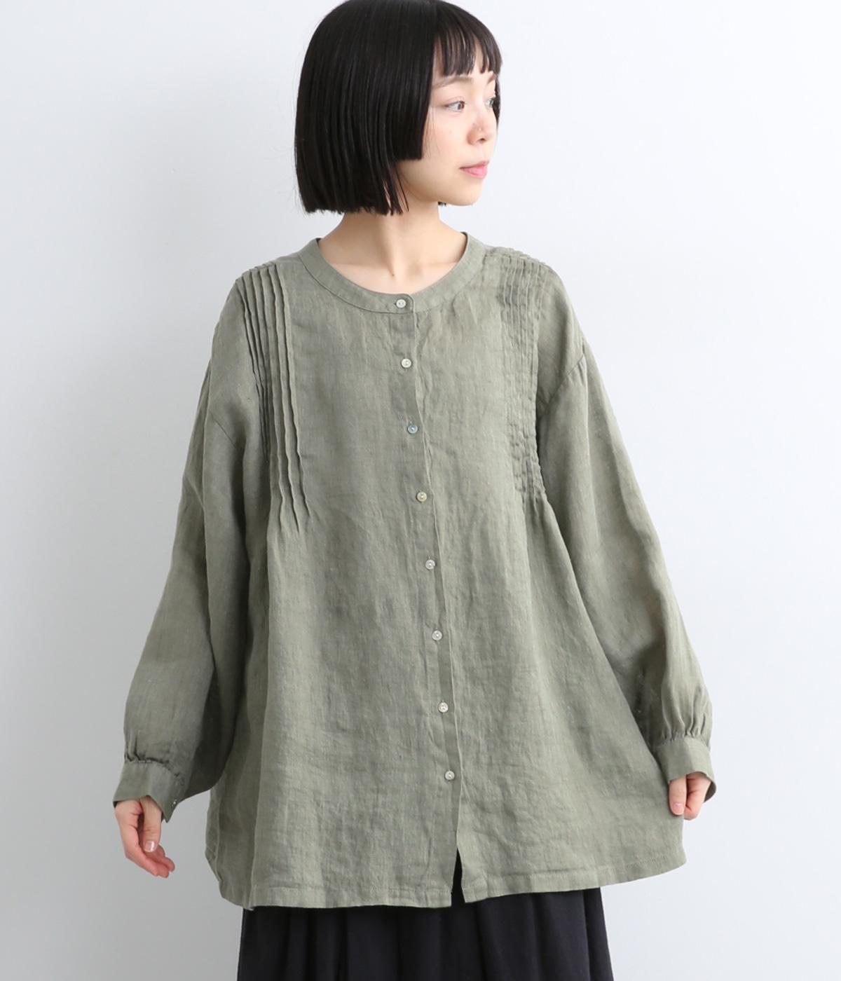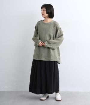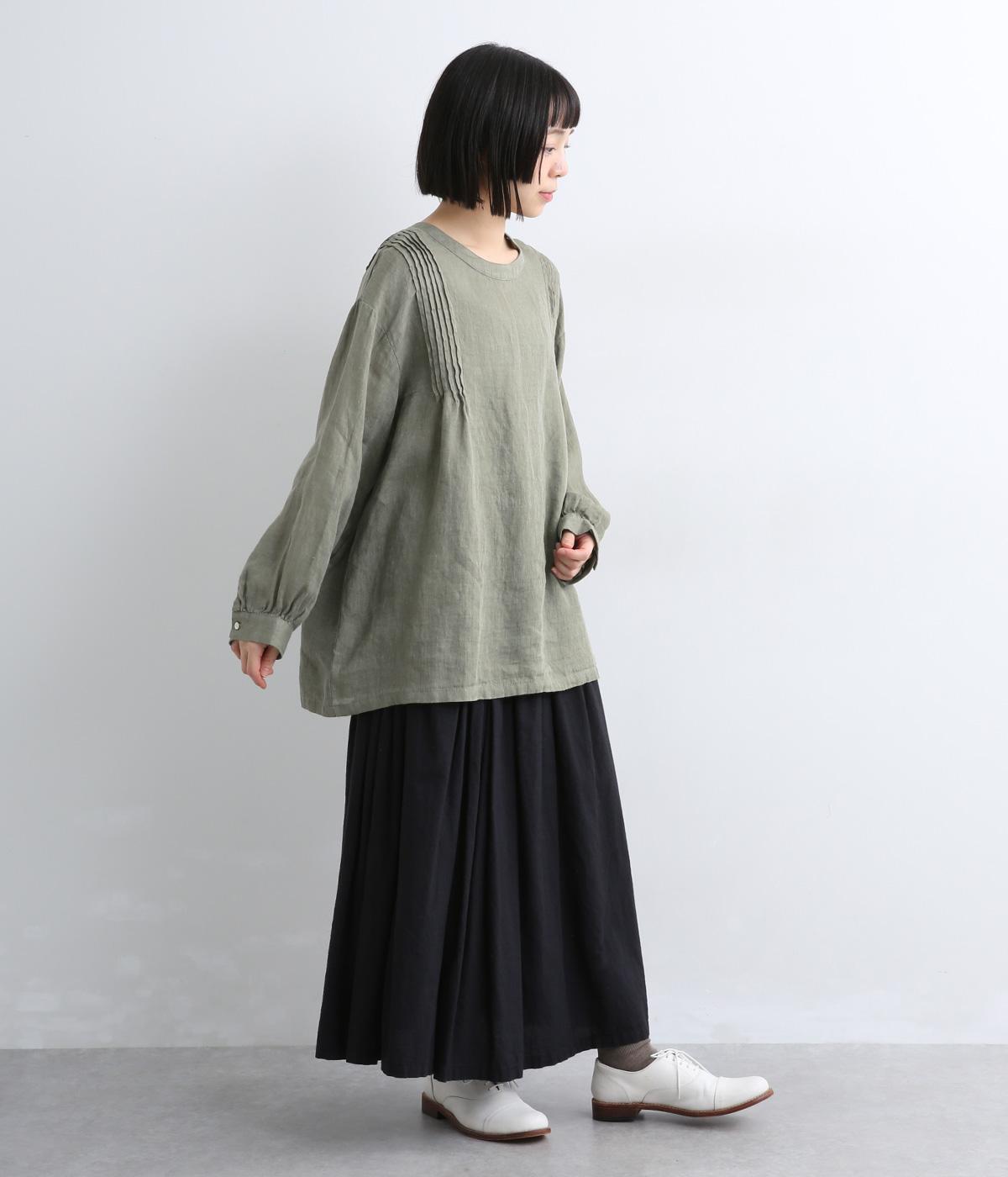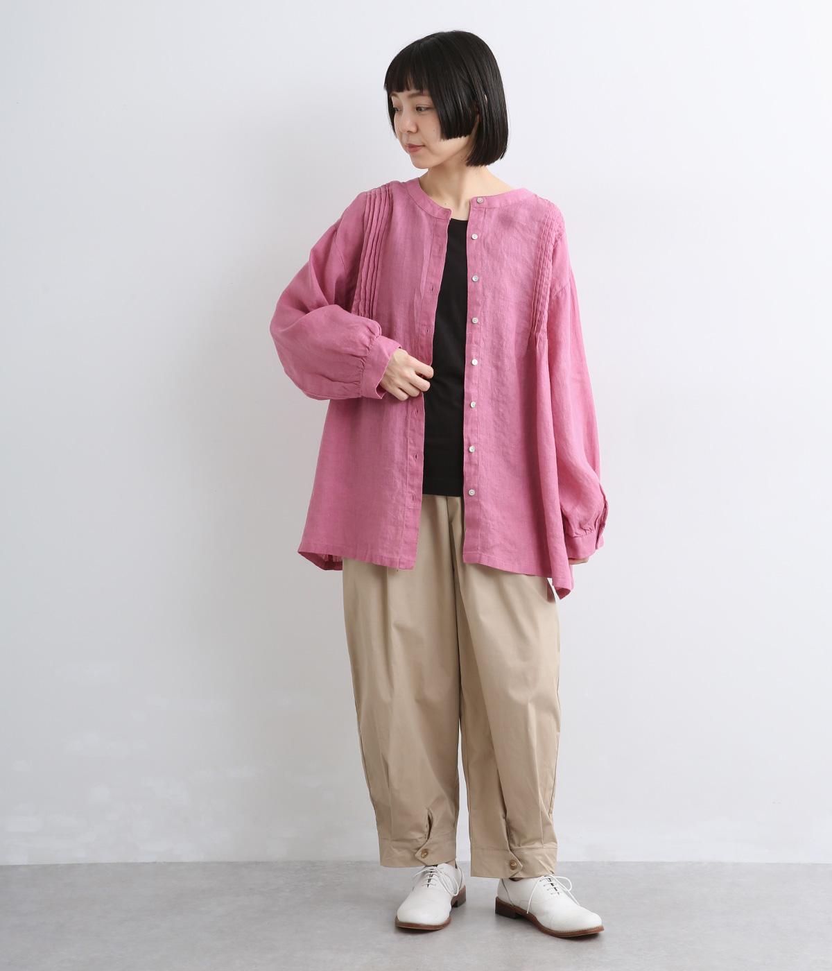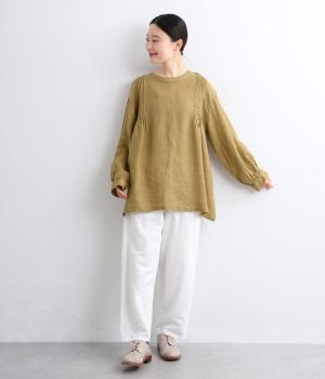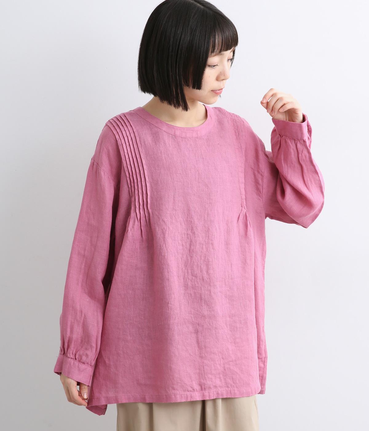 ふんわりとしたシルエットのブラウスを、前開きとプルオーバーの2wayで仕立てました。ナチュラルな素材を引き立てるシンプルなデザインに、ピンタックがさりげない華やかさを添えています。大人のカジュアルスタイルにぴったりな一枚です。