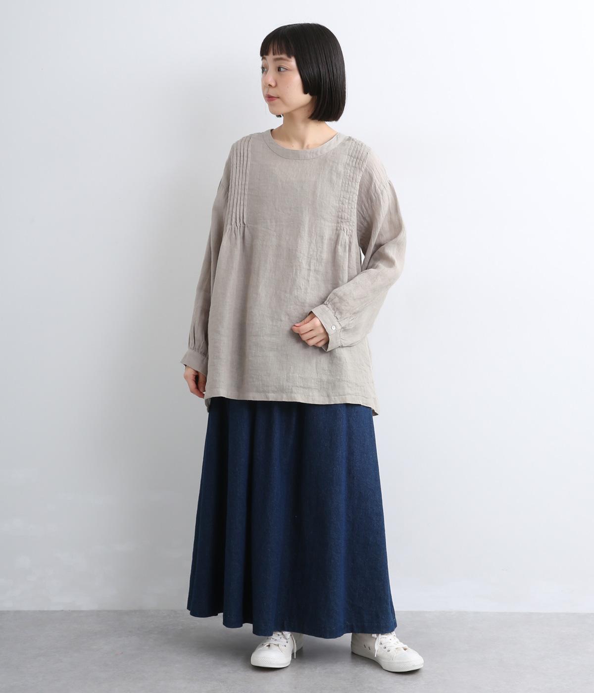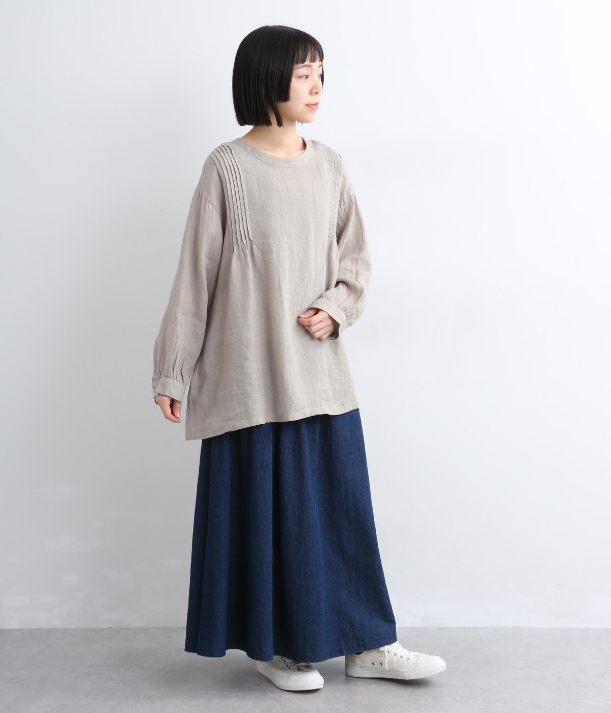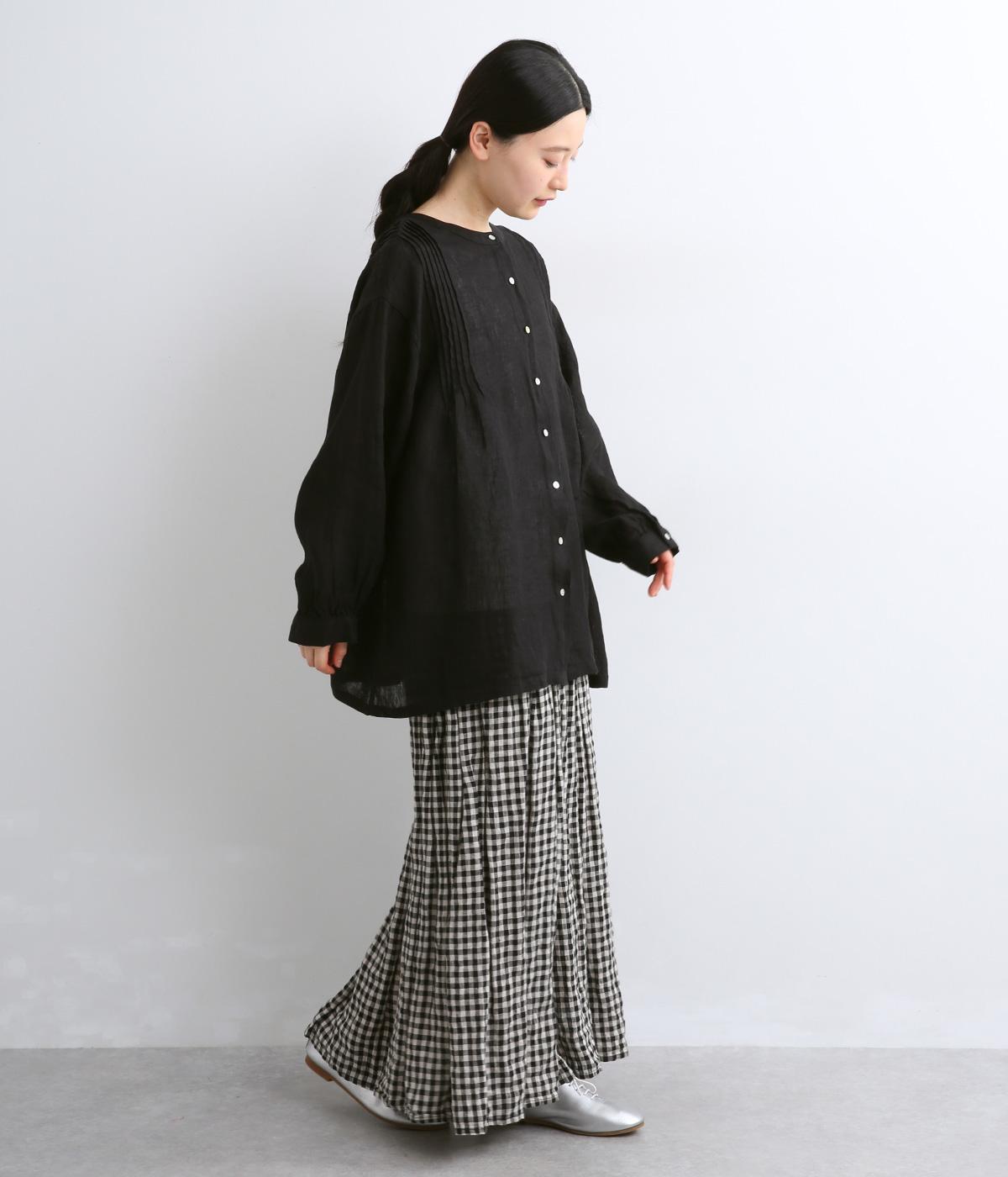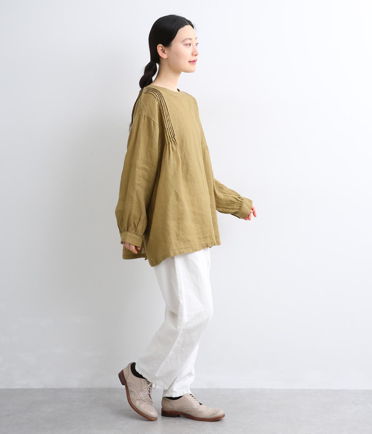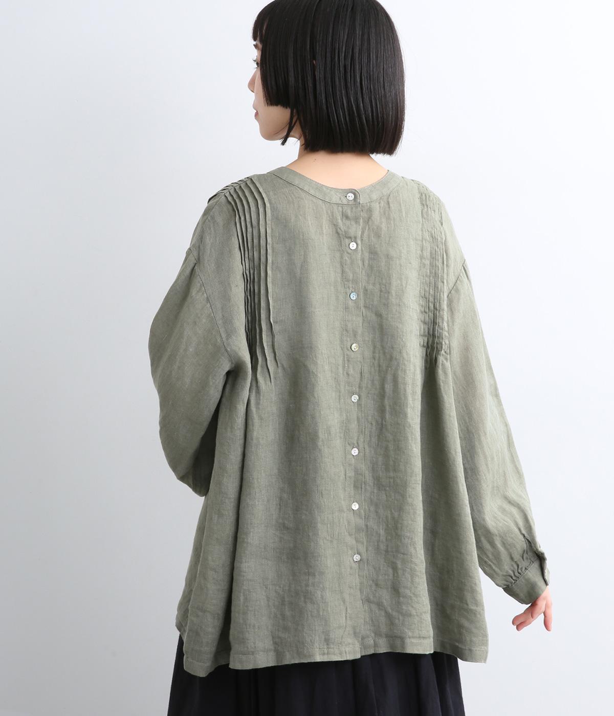 ふんわりとしたシルエットのブラウスを、前開きとプルオーバーの2wayで仕立てました。ナチュラルな素材を引き立てるシンプルなデザインに、ピンタックがさりげない華やかさを添えています。大人のカジュアルスタイルにぴったりな一枚です。