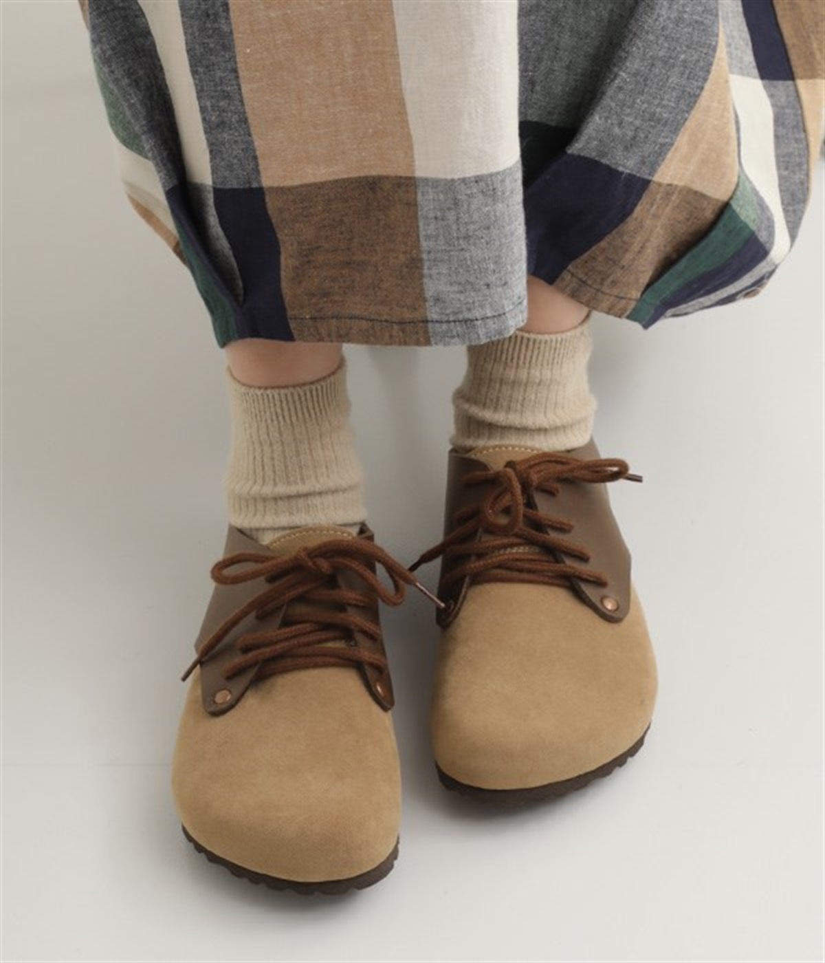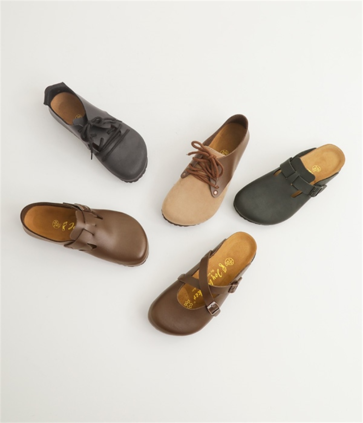 ナチュラルなスタイルはもちろん、どんなスタイルにもしっくりとなじむ、シンプルなレースアップタイプの225シリーズです。コロンとしたフォルムがとってもキュート。ジョイウオーカーオリジナルの、フットベットよりも弾力のあるソフトフットベットを中敷きに使用することで凹凸が足にほどよくフィット。長時間はいても足が疲れにくく心地よい一足に仕上げています。
