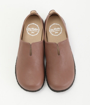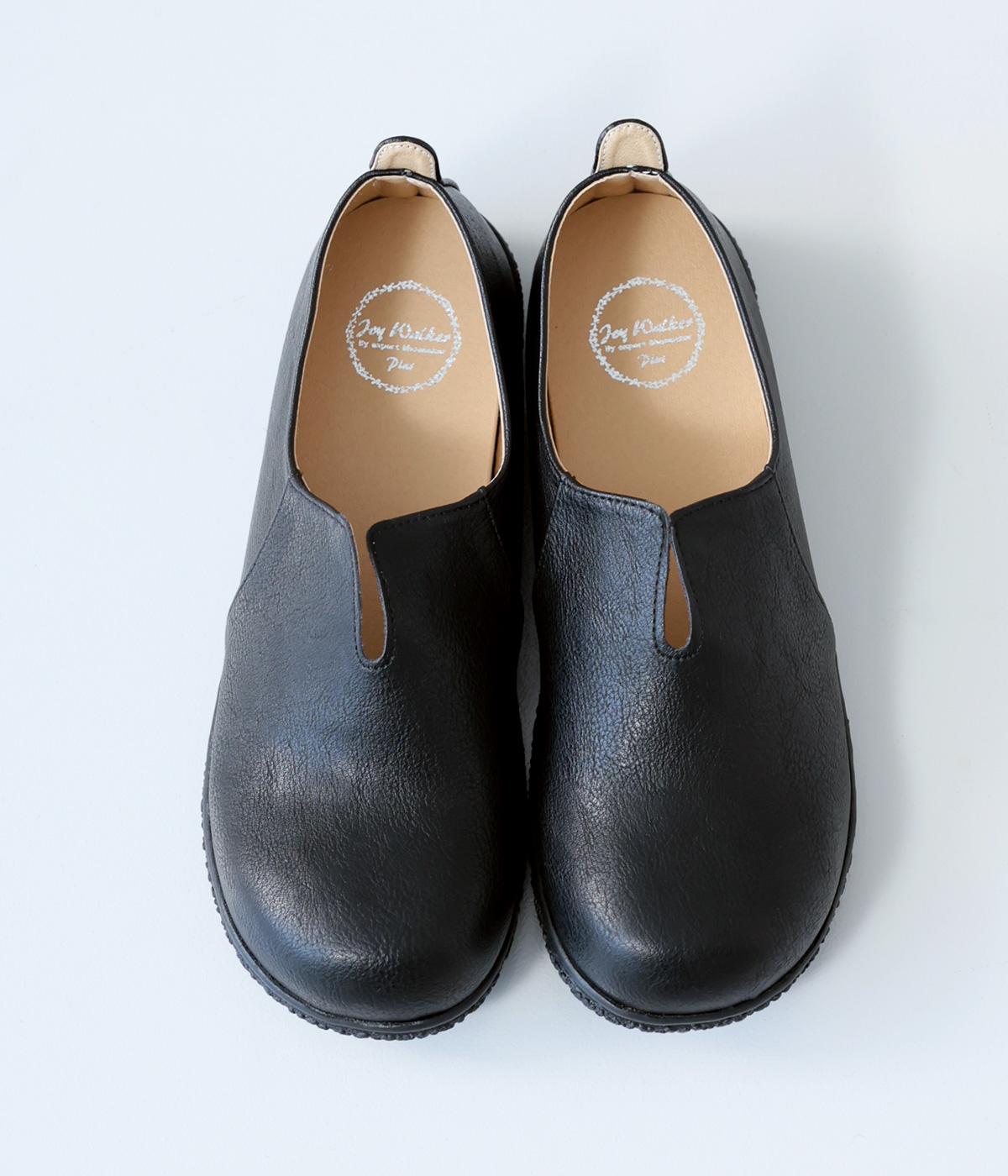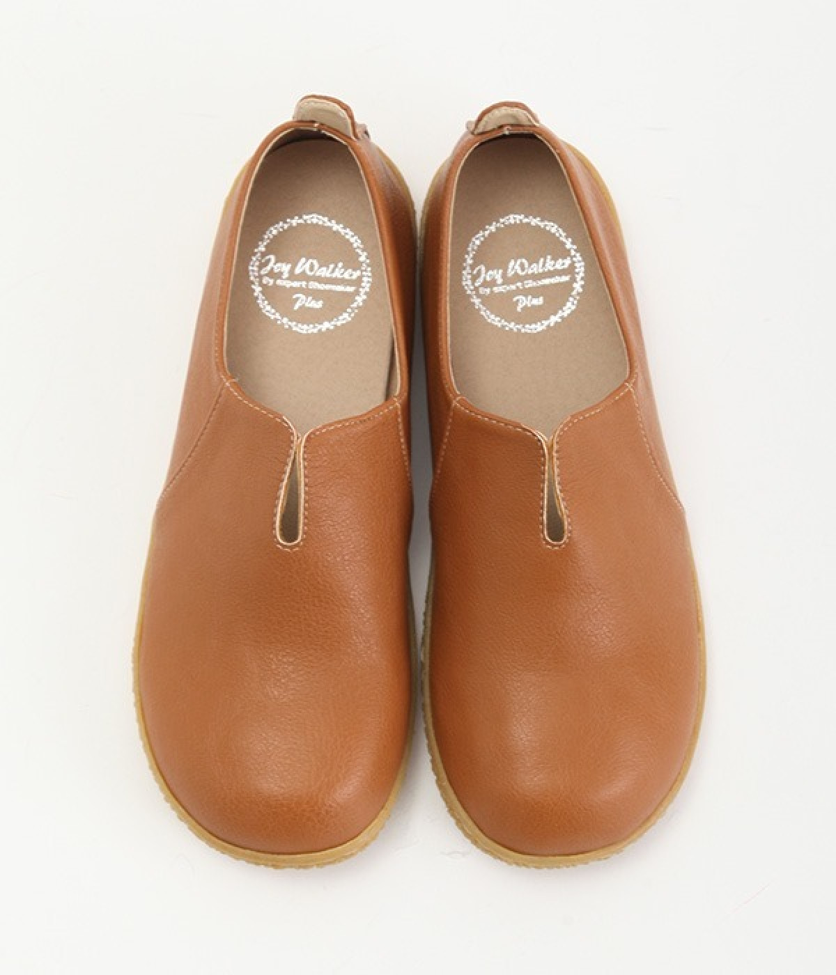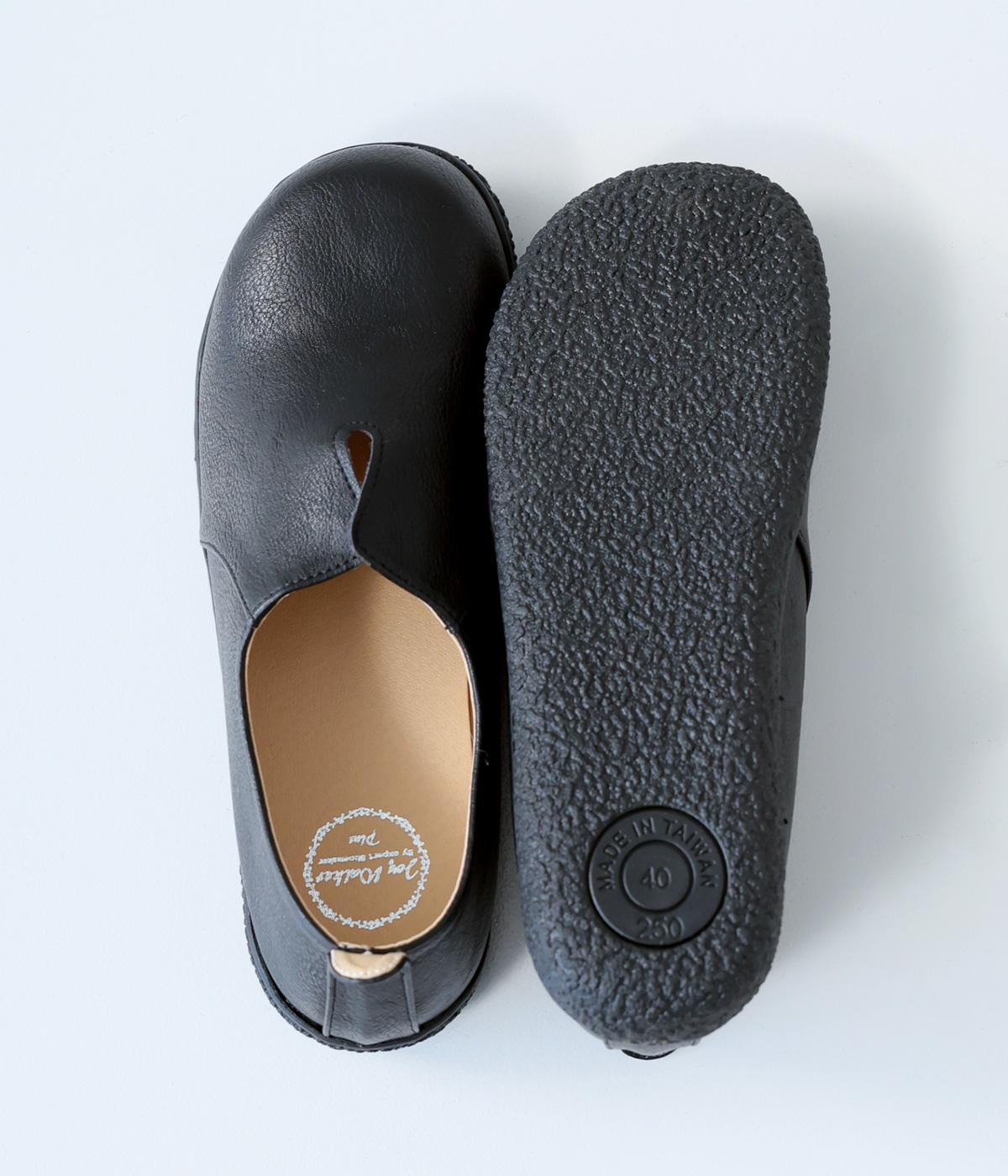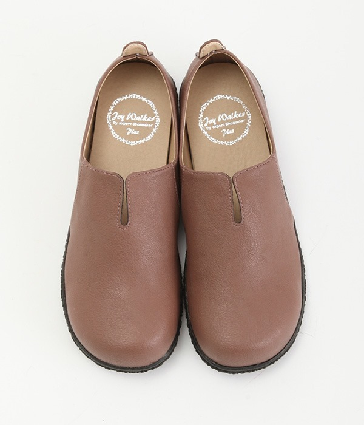 甲のVカットをアクセントにした、脱ぎ履き簡単なスリッポンシューズです。丸みのあるフォルムと無駄のないシンプルなデザインが上品で女性らしい足元を演出。カジュアルにもきれいめにも合わせやすく、さまざまなシーンで重宝します。