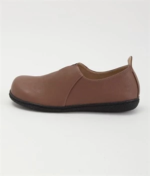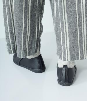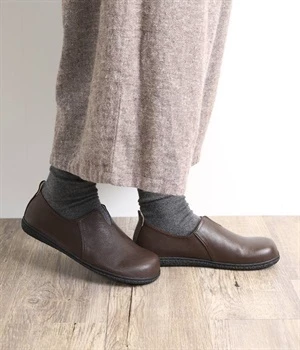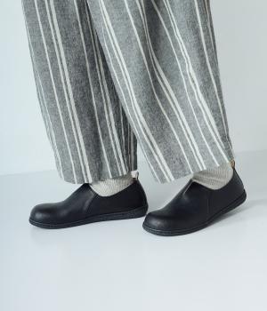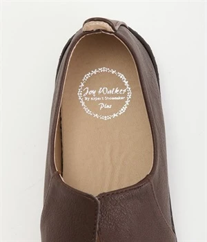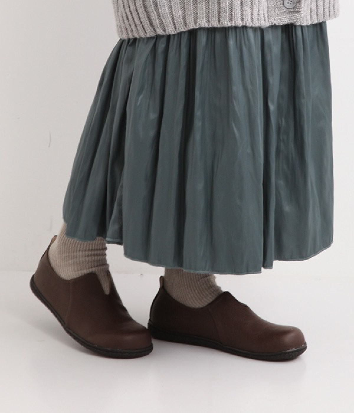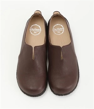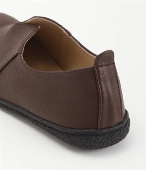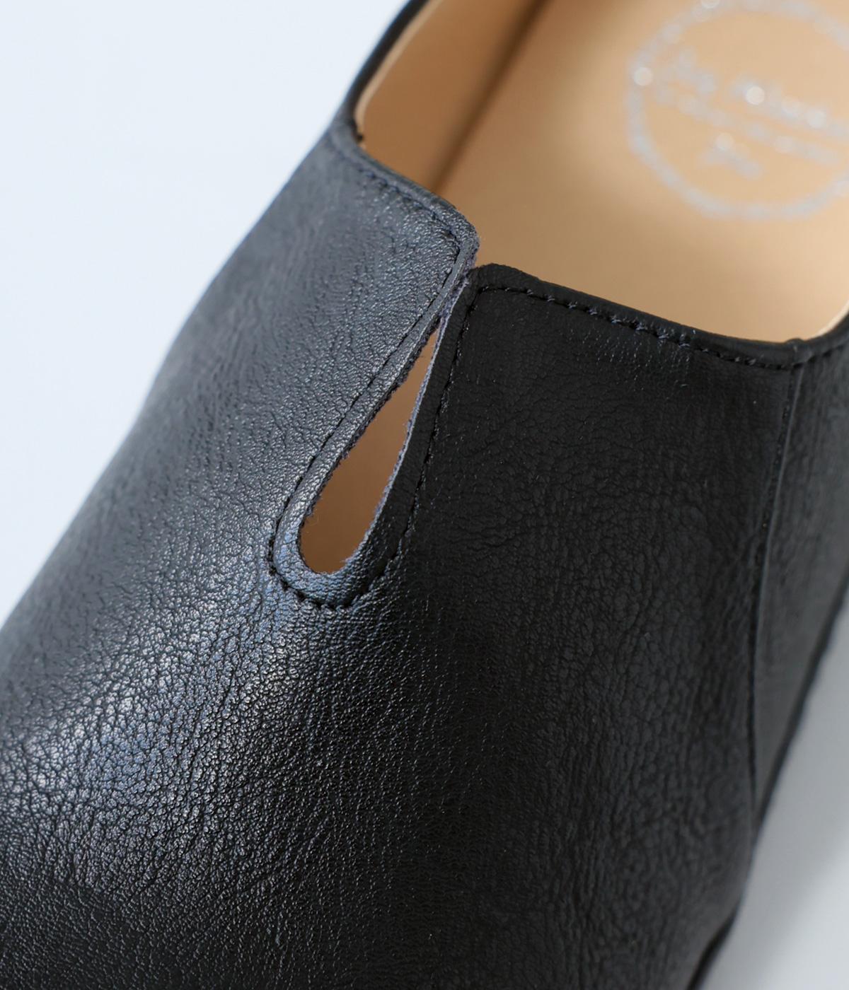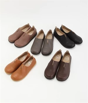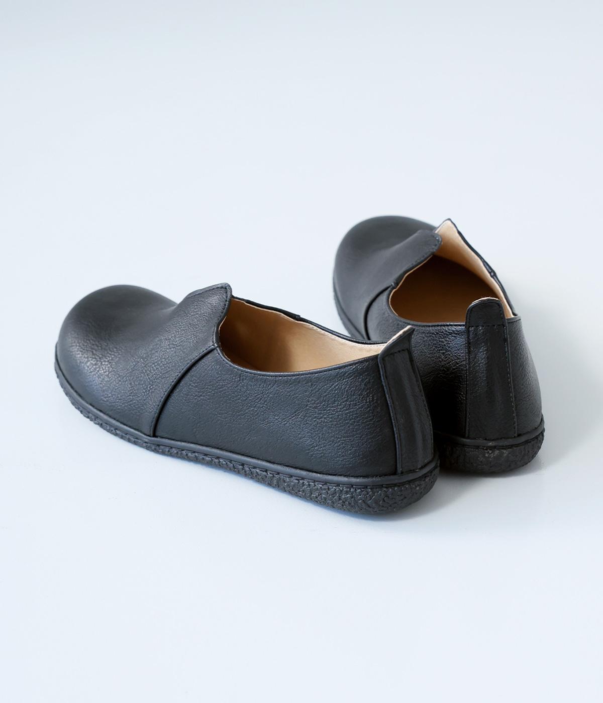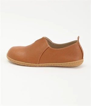表面に細かなシボがあり、リアルレザーのような上品な見た目が魅力の合成皮革です。足の動きに合わせてやわらかくしなるので、歩きやすさも抜群。クッション性のあるインソールを使用しています。