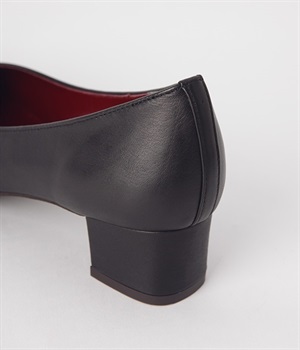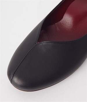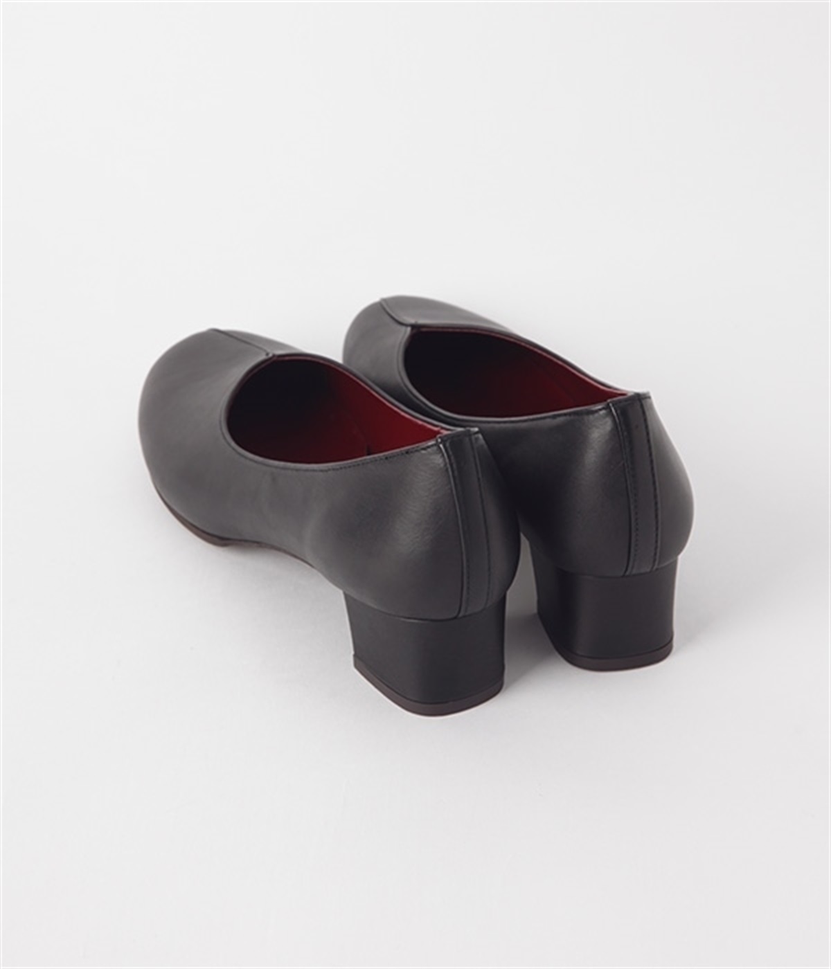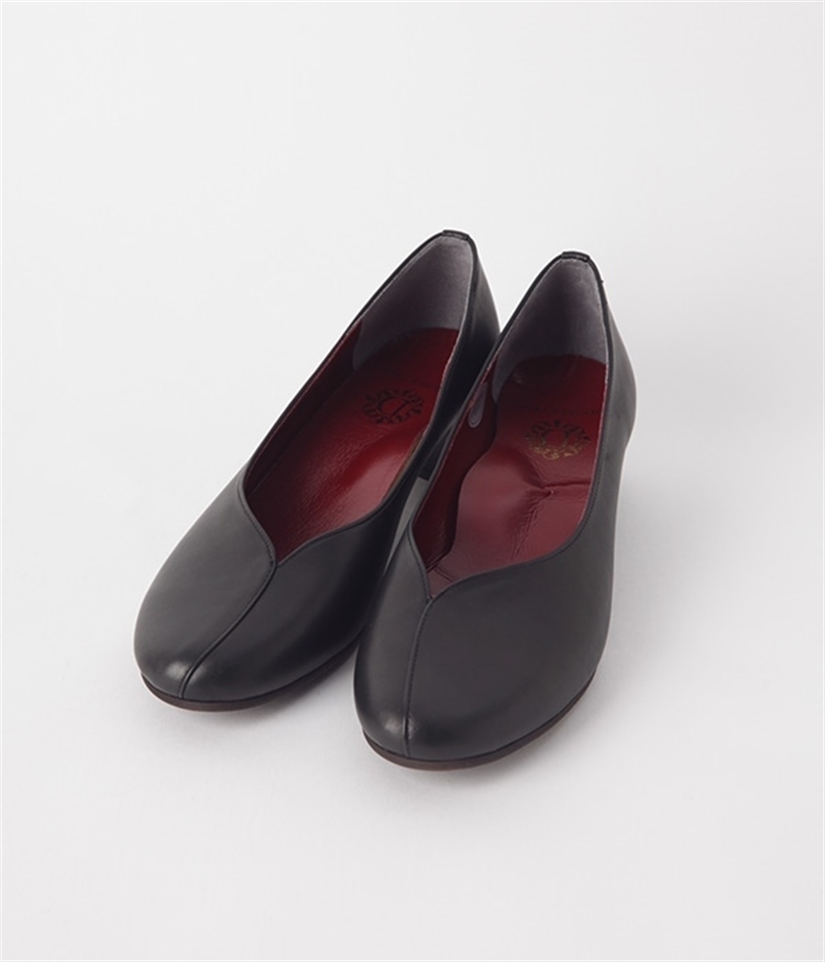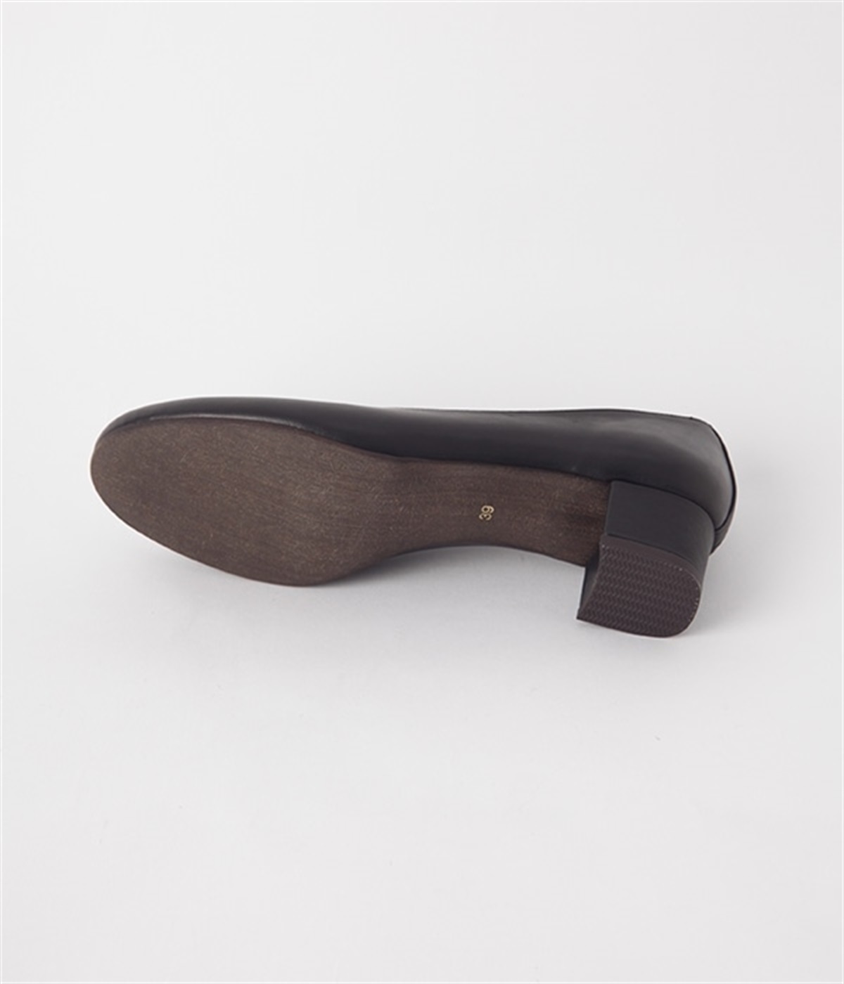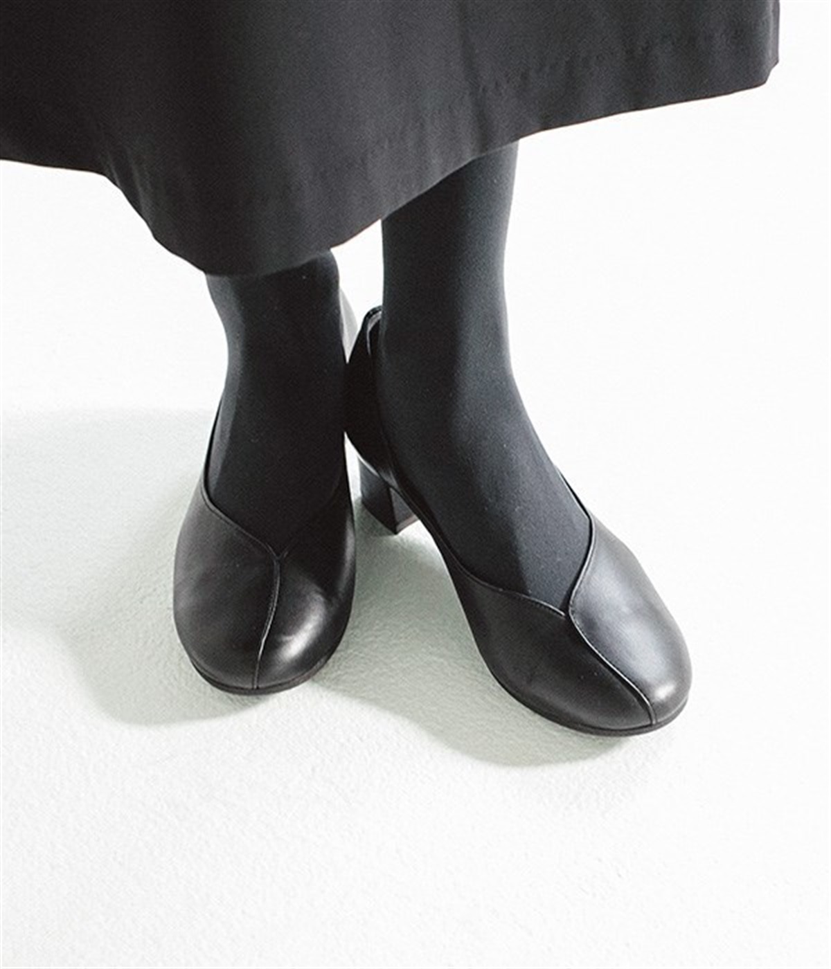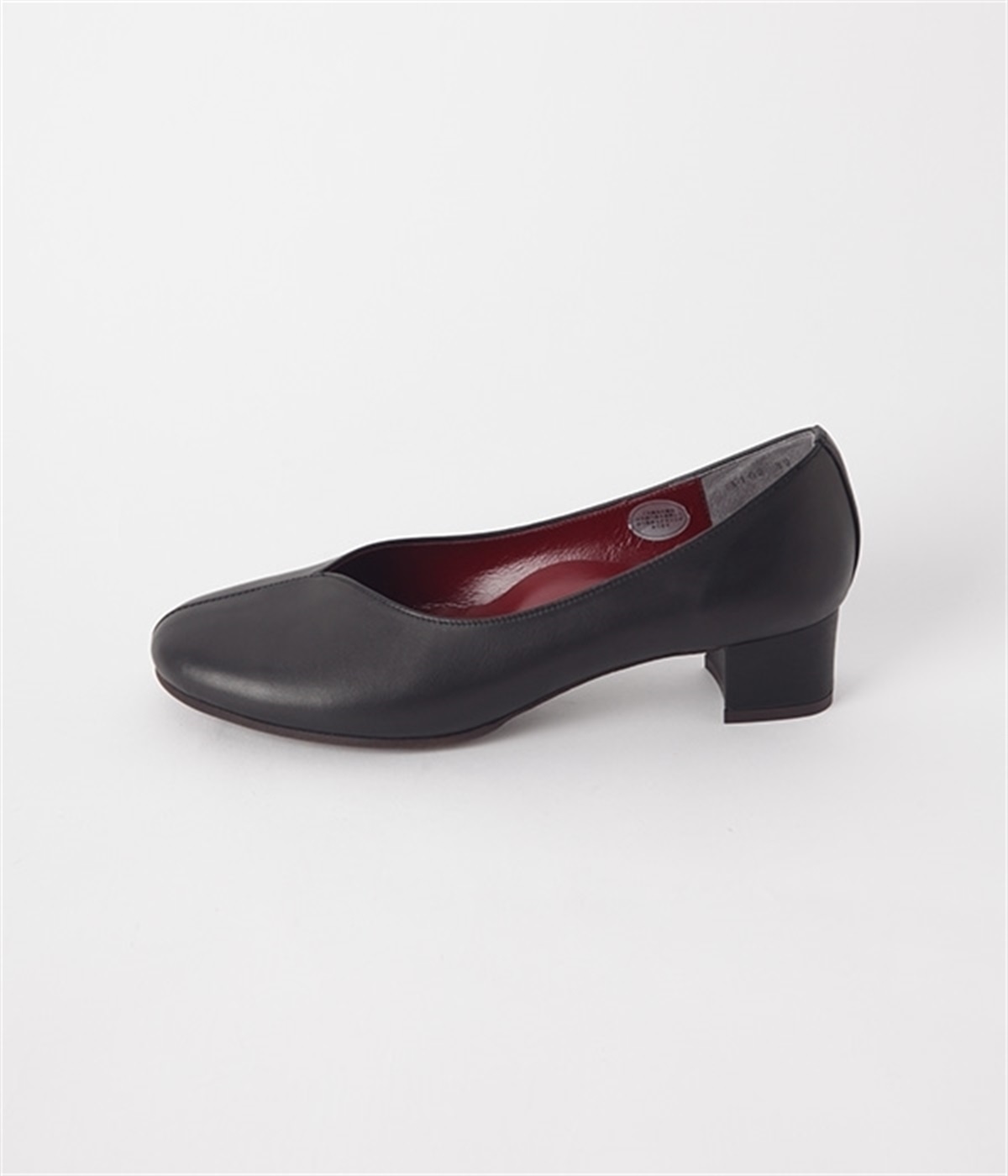 アシンメトリーなキレイなVカット曲線の天然皮革のアッパーに、少し太めのヒールを使ったスマートなパンプスです。スコッチガード溶剤を練りこんだ防水レザーを使用しているので、お出かけの際の急な雨にも安心。上品さ漂うマットなスムースレザーは柔らかい質感で、足あたりが良く履きやすいのも嬉しいポイントです。