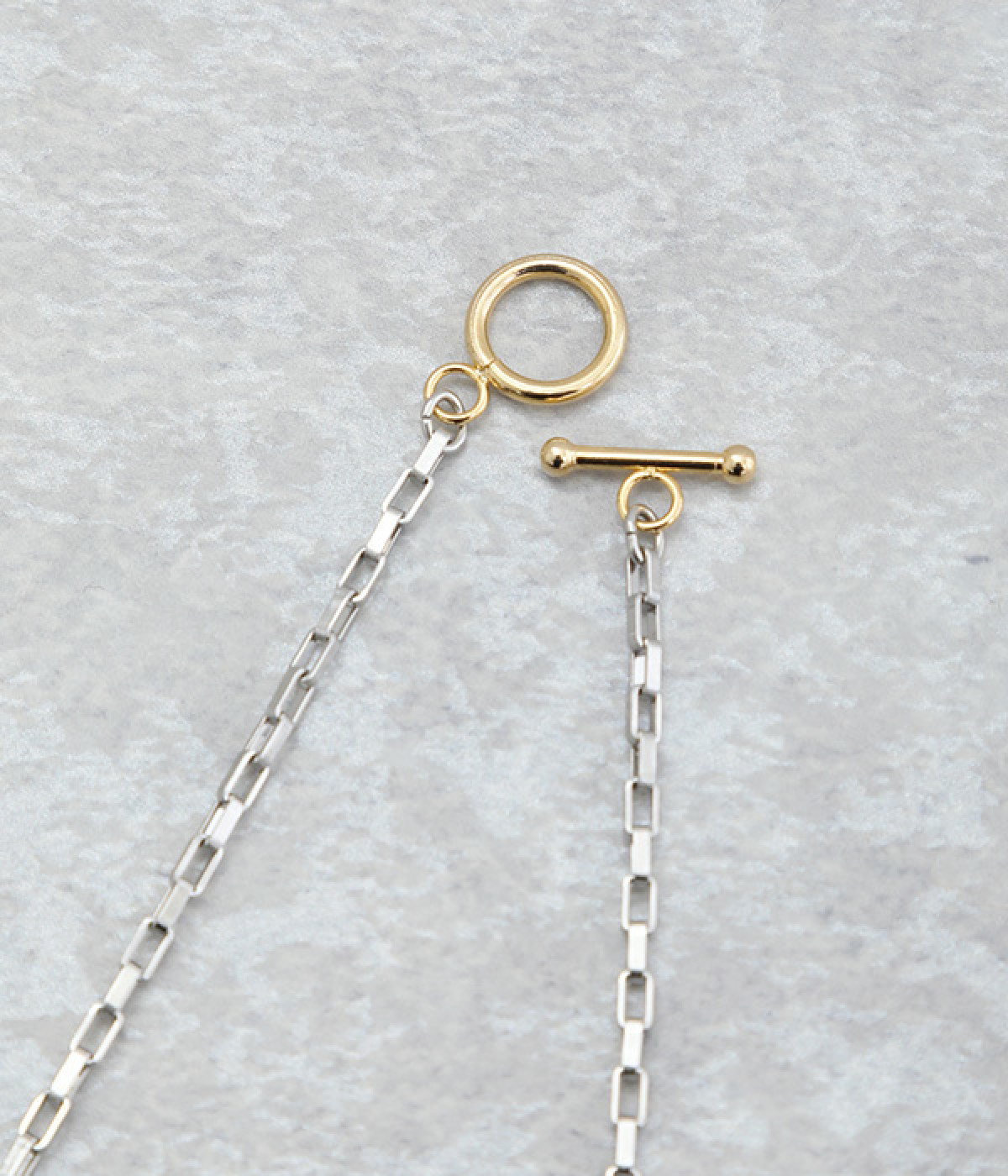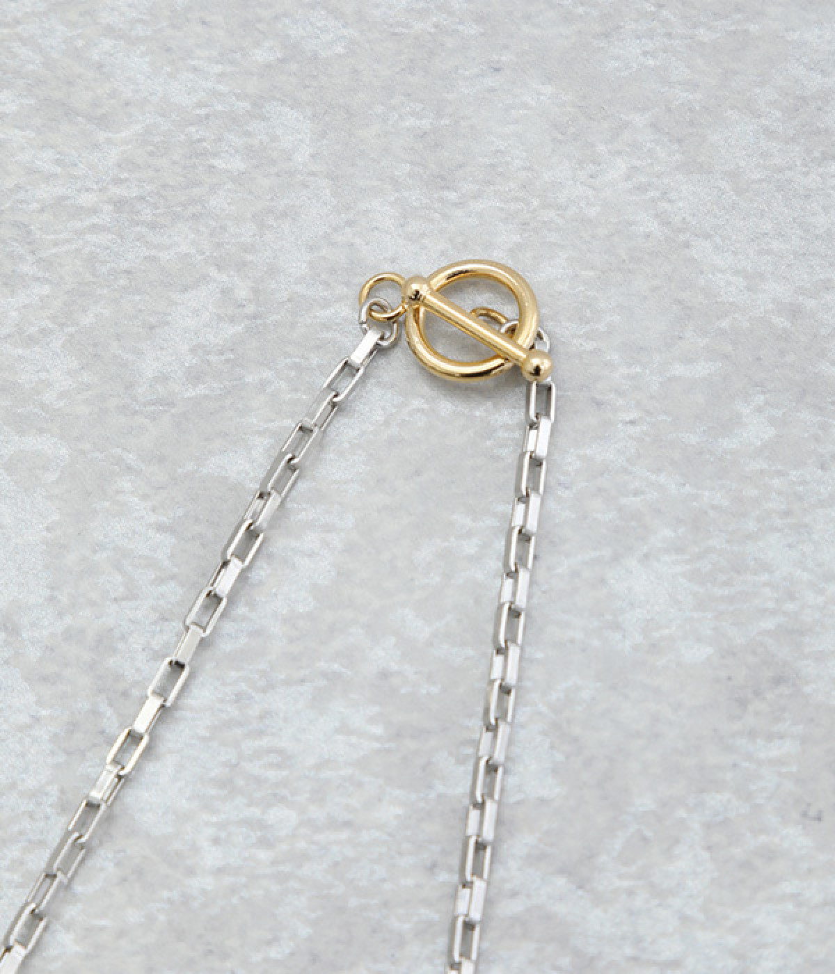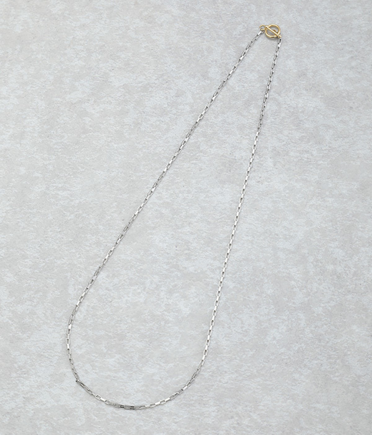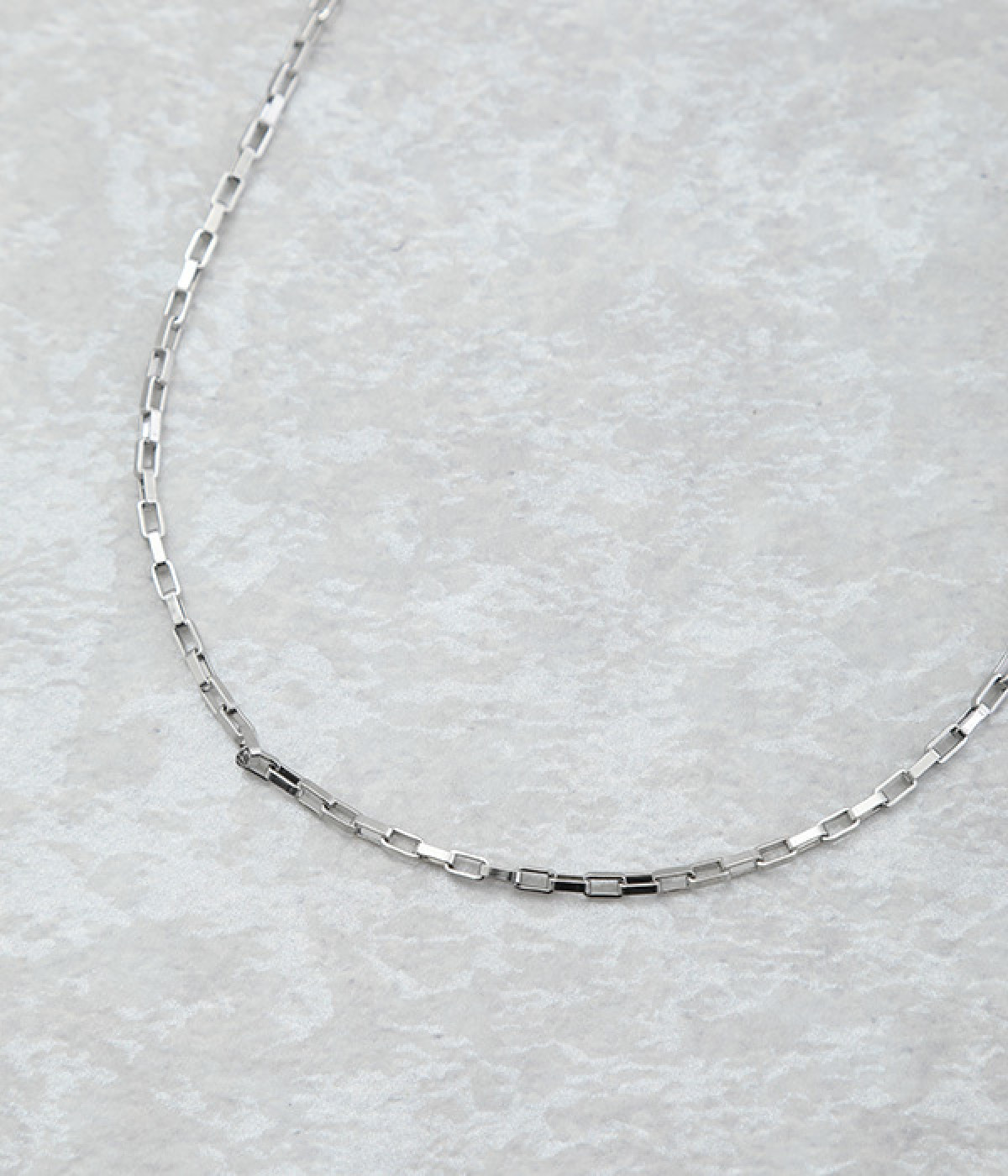 ・直線的なスクエアチェーンで首元をスタイリッシュに