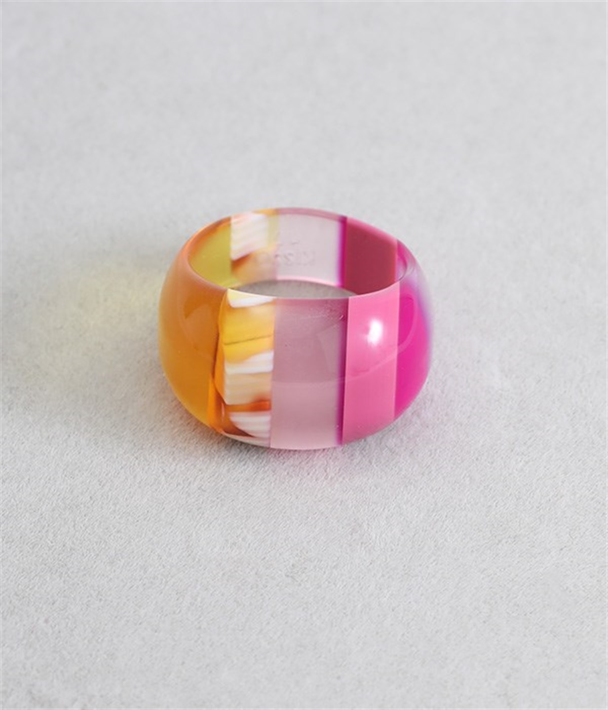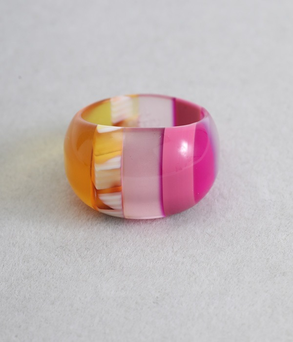 艶やかなカラー、天然鉱石のような透明感、つるんとした光沢が魅力のリングです。丸みを帯びたラウンド型は、ほどよいぽってり感で独特の可愛らしさ。つけ心地がさらっとしていてとても軽いのも◎。指先にさりげないおしゃれを演出するのにぴったりです。オリジナルの箱付きでギフトにもおすすめです。