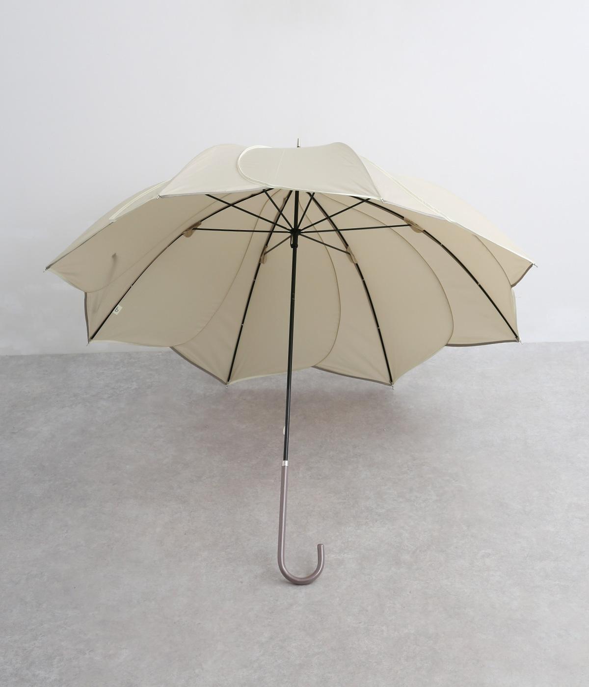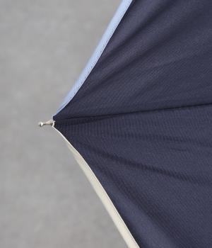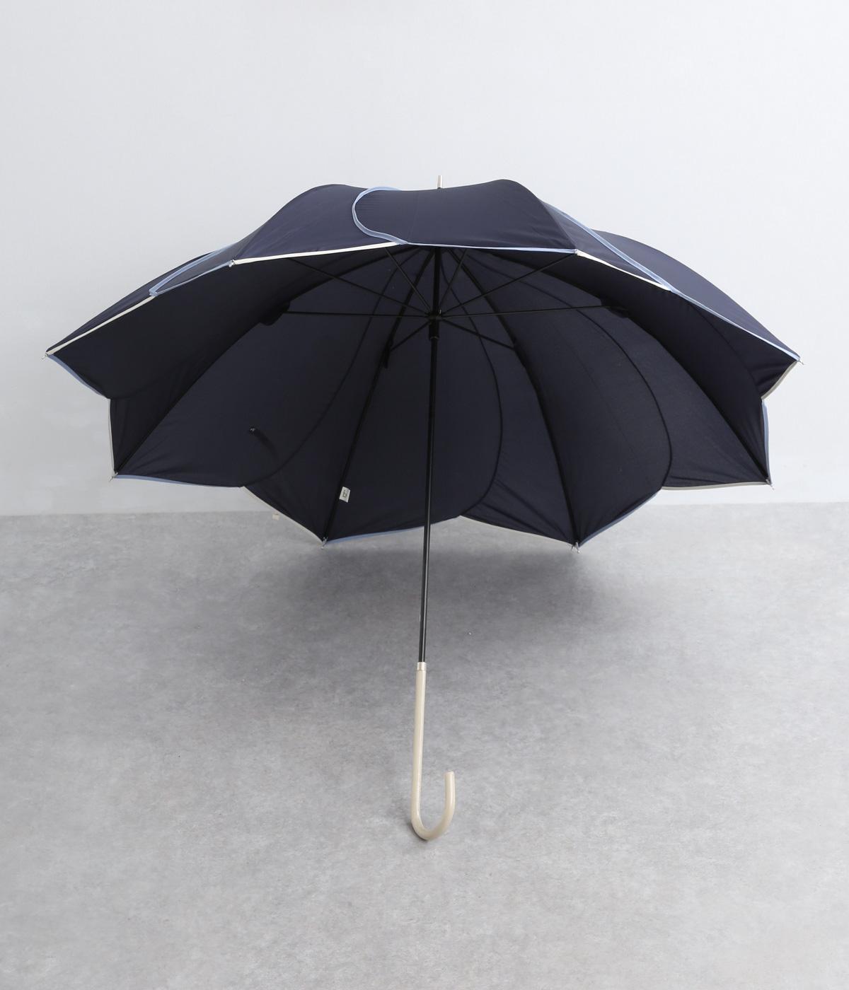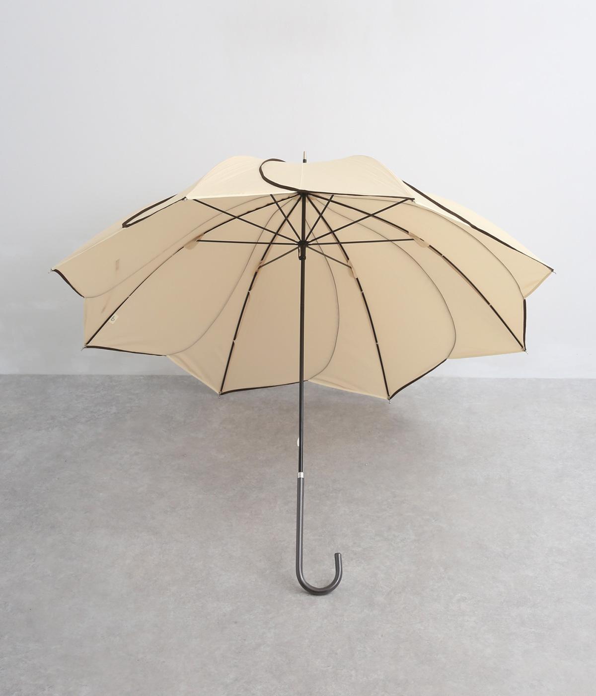 スタイリッシュなカットワークとパイピングで花びらのような繊細さが美しい晴雨兼用長傘。品のいい配色にすっきりとしたシルエットできれいめな装いにも相性のいいデザインです。親骨58cmで雨や日差しからもしっかりガード。