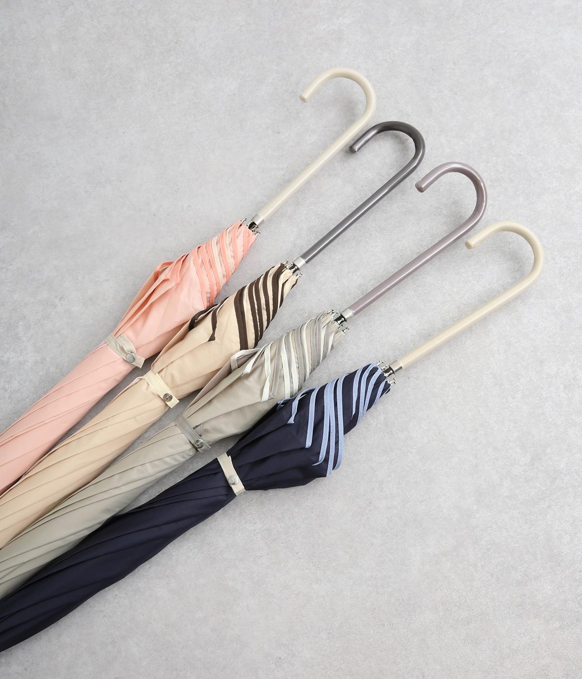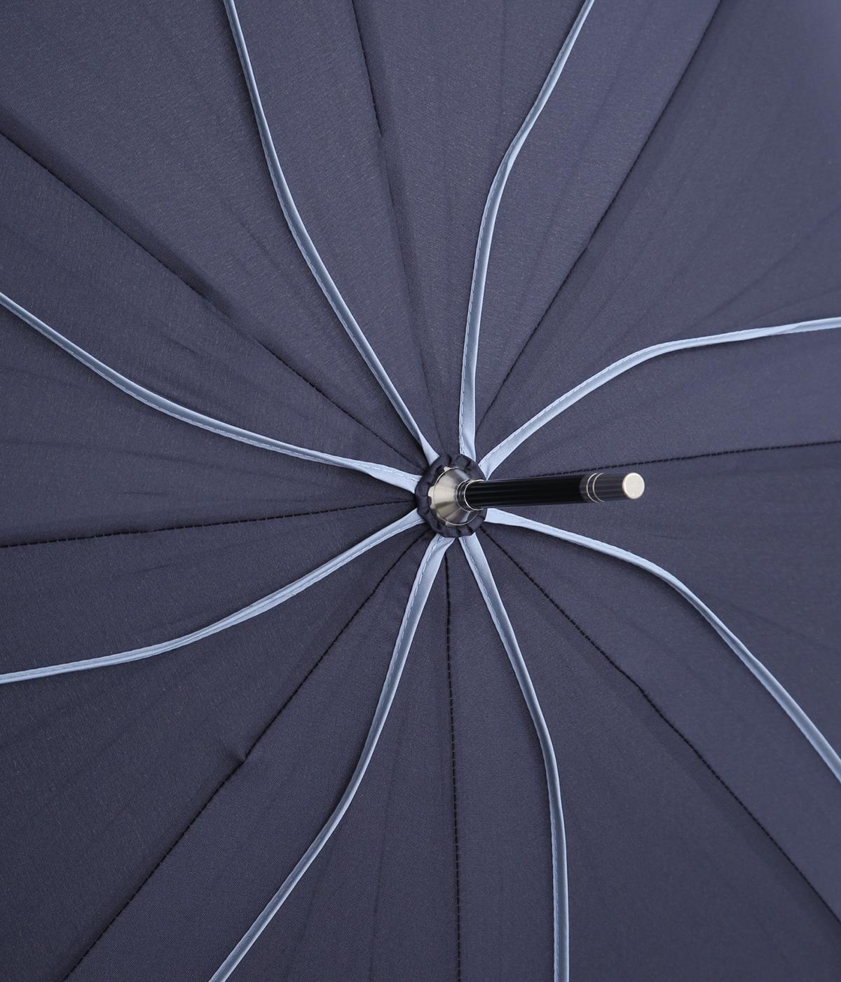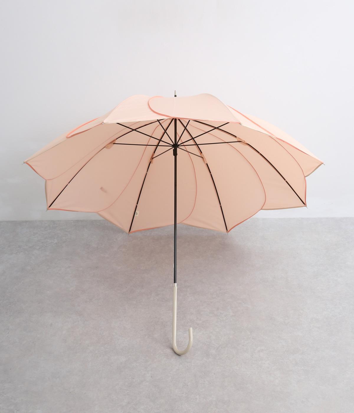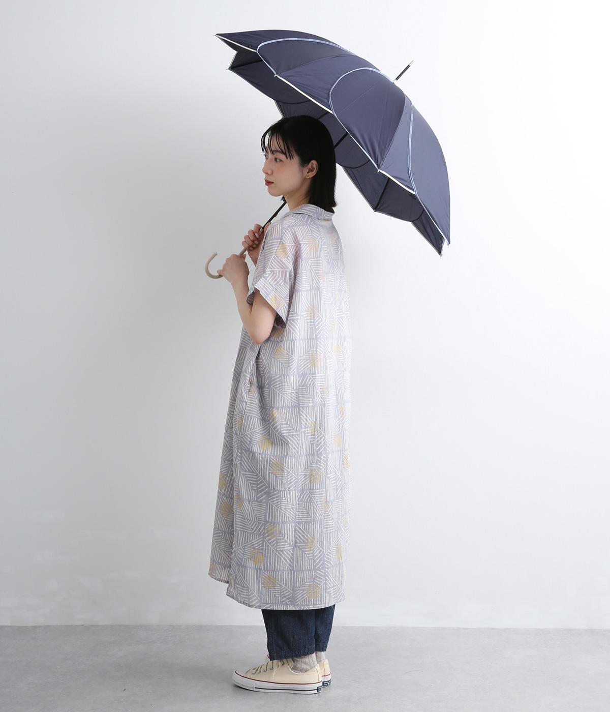 スタイリッシュなカットワークとパイピングで花びらのような繊細さが美しい晴雨兼用長傘。品のいい配色にすっきりとしたシルエットできれいめな装いにも相性のいいデザインです。親骨58cmで雨や日差しからもしっかりガード。