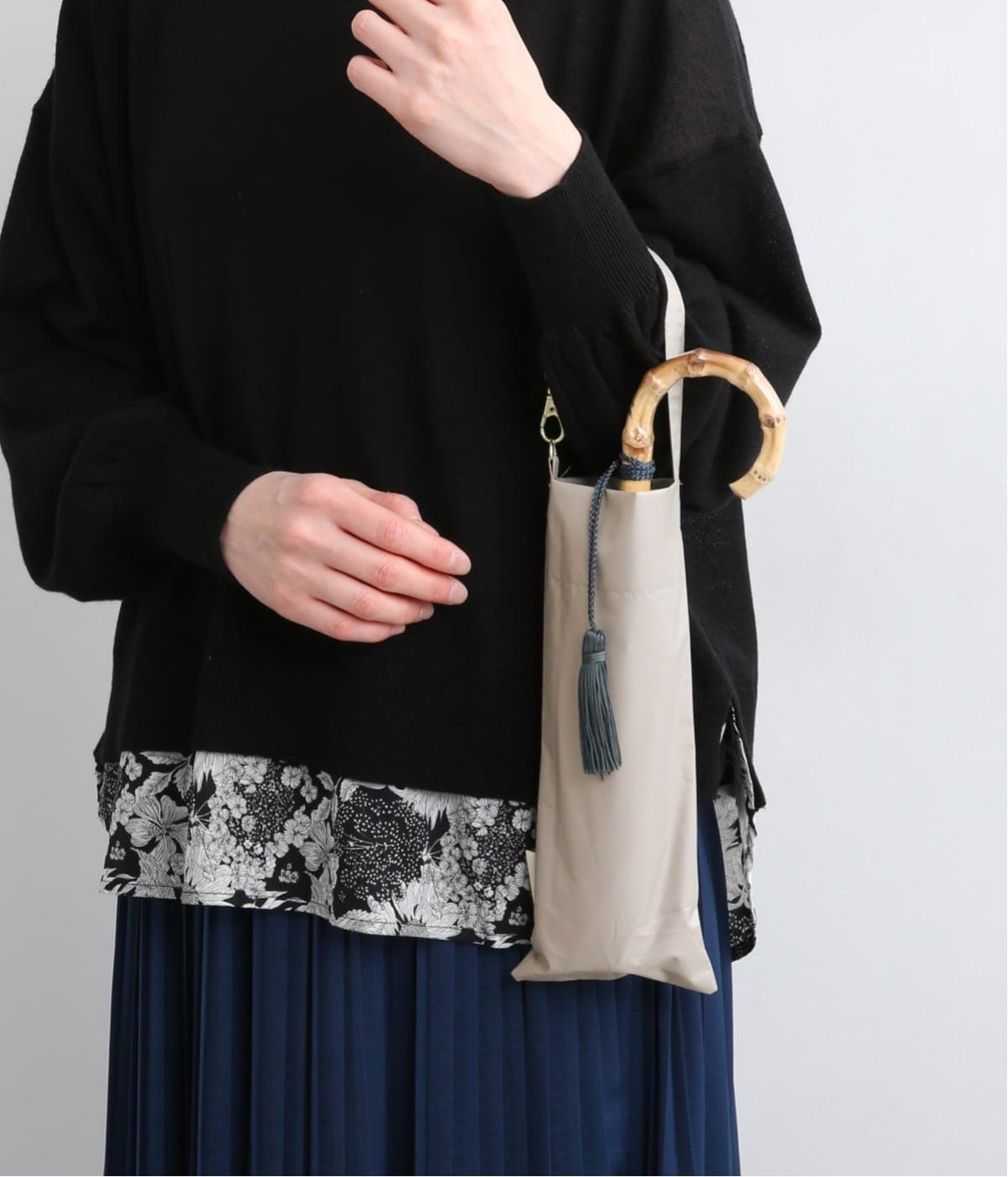 雨や日差しからしっかり守ってくれる大きめサイズながら、8本骨が上品なシルエットをキープ。正面からの風を受け流す構造で耐久性も◎。バッグに取りつけられる便利なストラップつきカバーにタッセルもポイント。