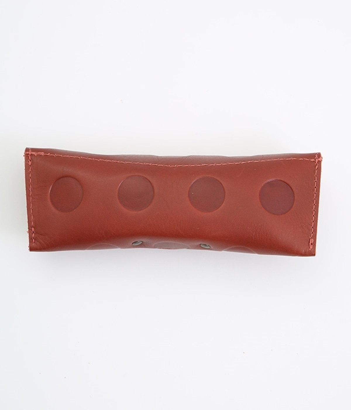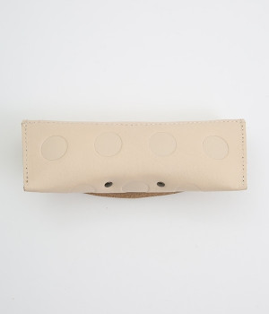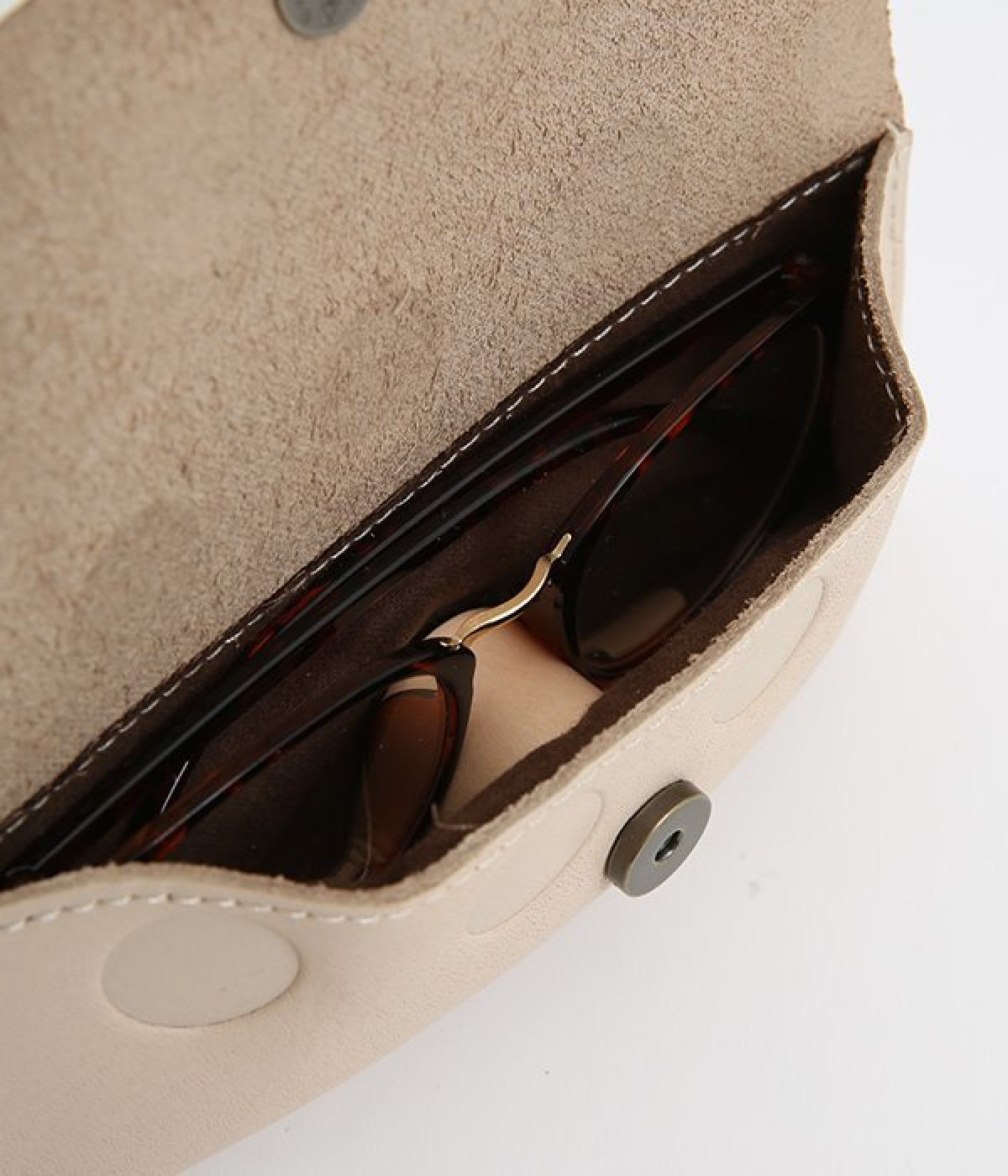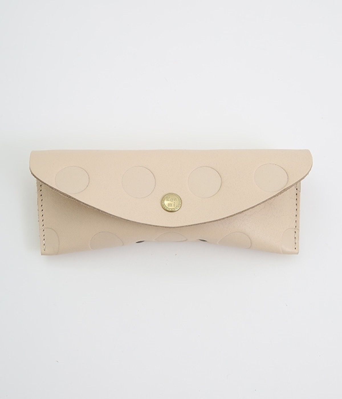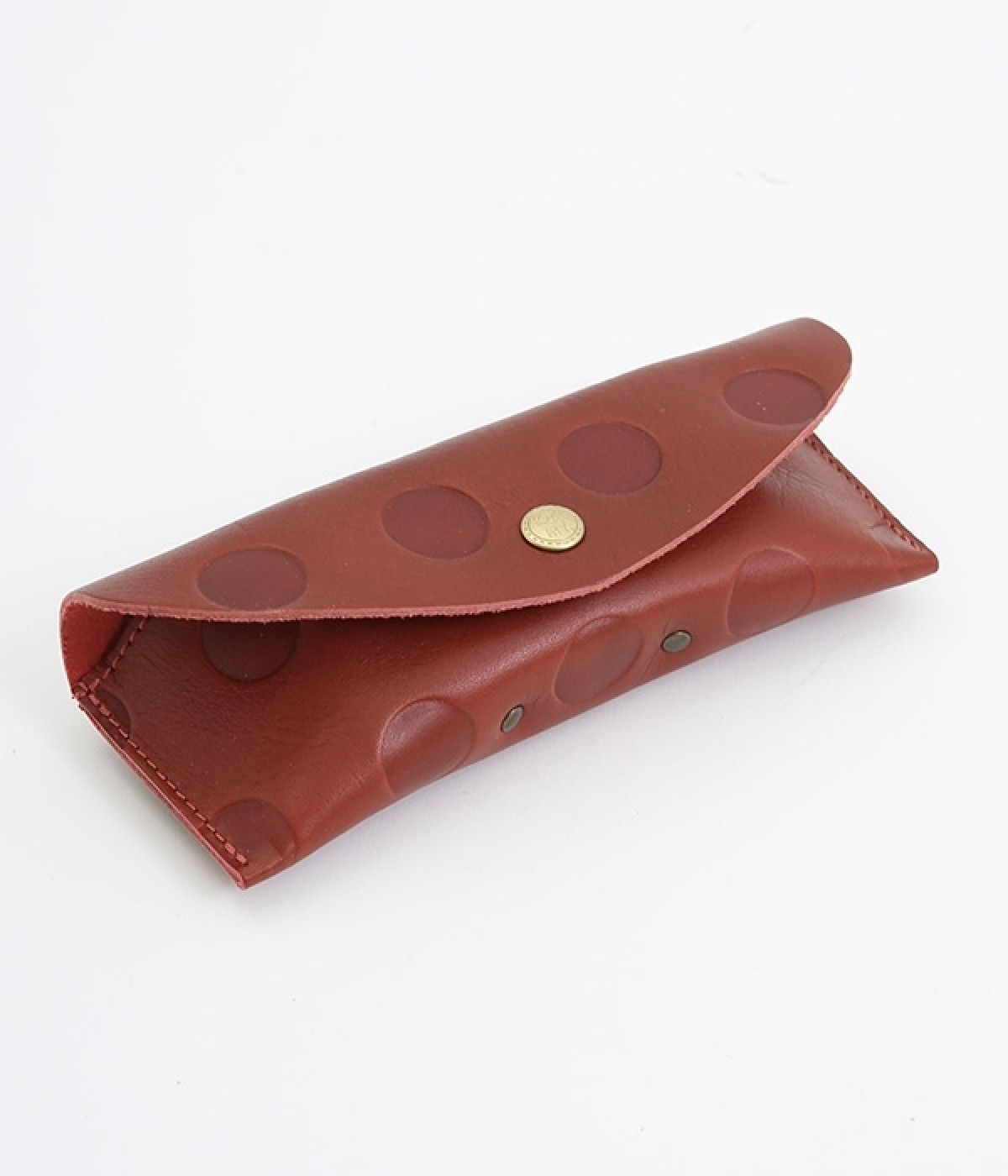 ドットがアクセントの上質な牛革を使用したメガネケースです。メガネをしっかりと守りながらも、かわいさも忘れない四角いシルエット。中の分厚いヌメ革の鼻当て部分にメガネをのせれば動きにくくなり、しっかりと安定して型崩れを防いでくれます。華奢なフレームでも安心のタフさがポイント。内側はやわらかな起毛素材で、大切なメガネをやさしく包み込みます。ボタンはマグネット式で、開け閉めもスムーズ。持ち運びにはもちろん、オフィスや読書机に置いてもサマになるレザーの豊かな表情も魅力です。実用性とデザインを兼ね備えた、生活を彩るアイテムです。