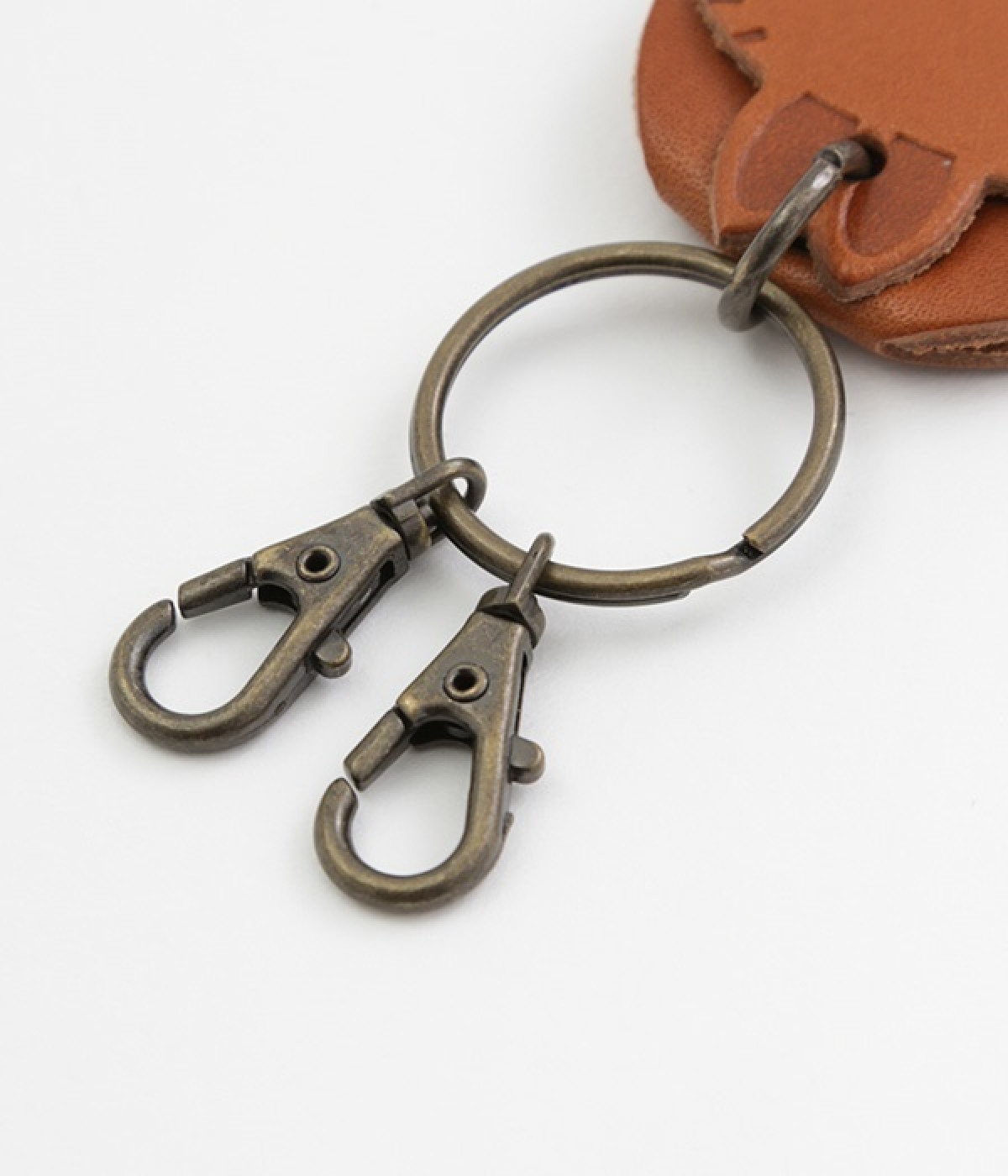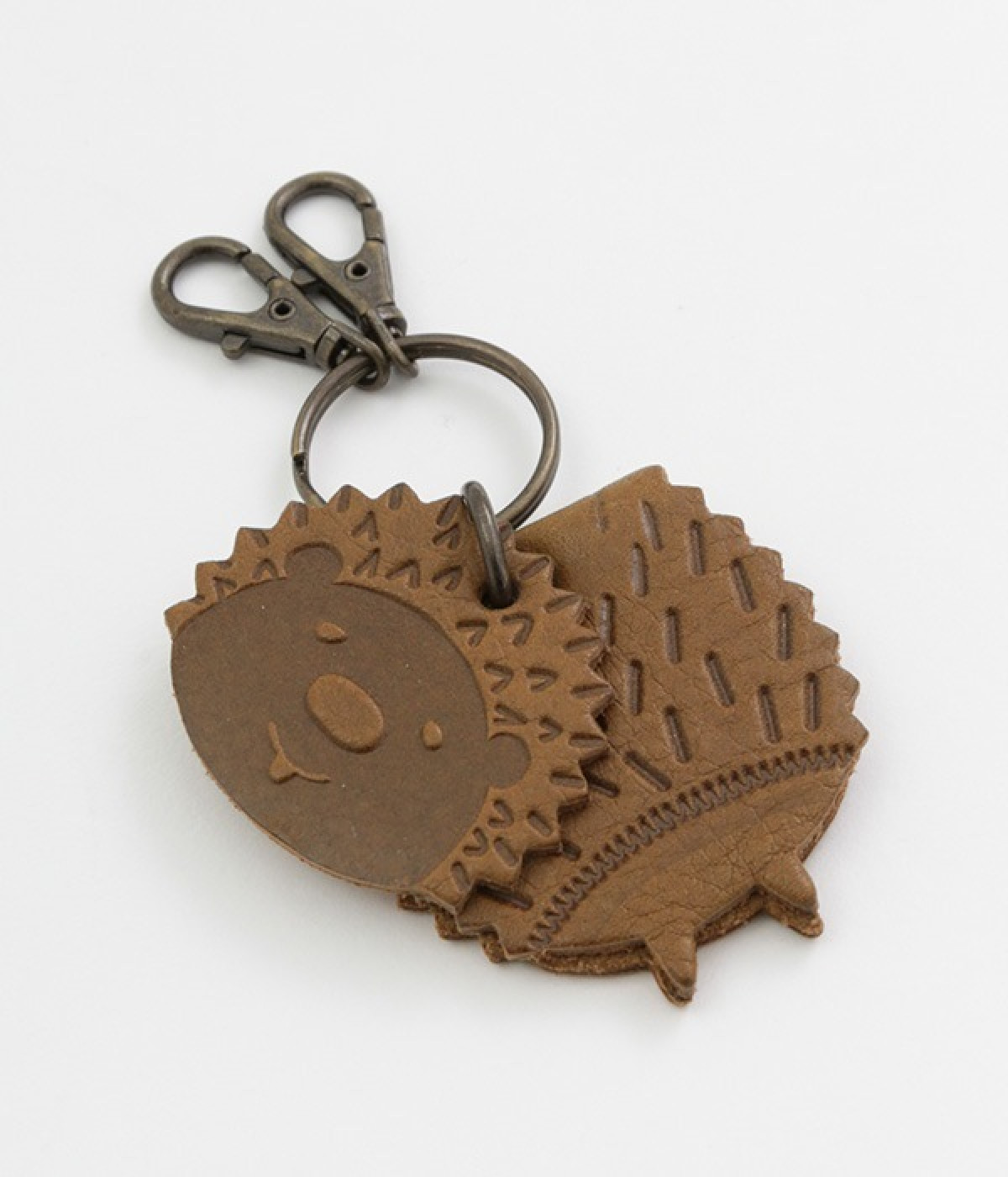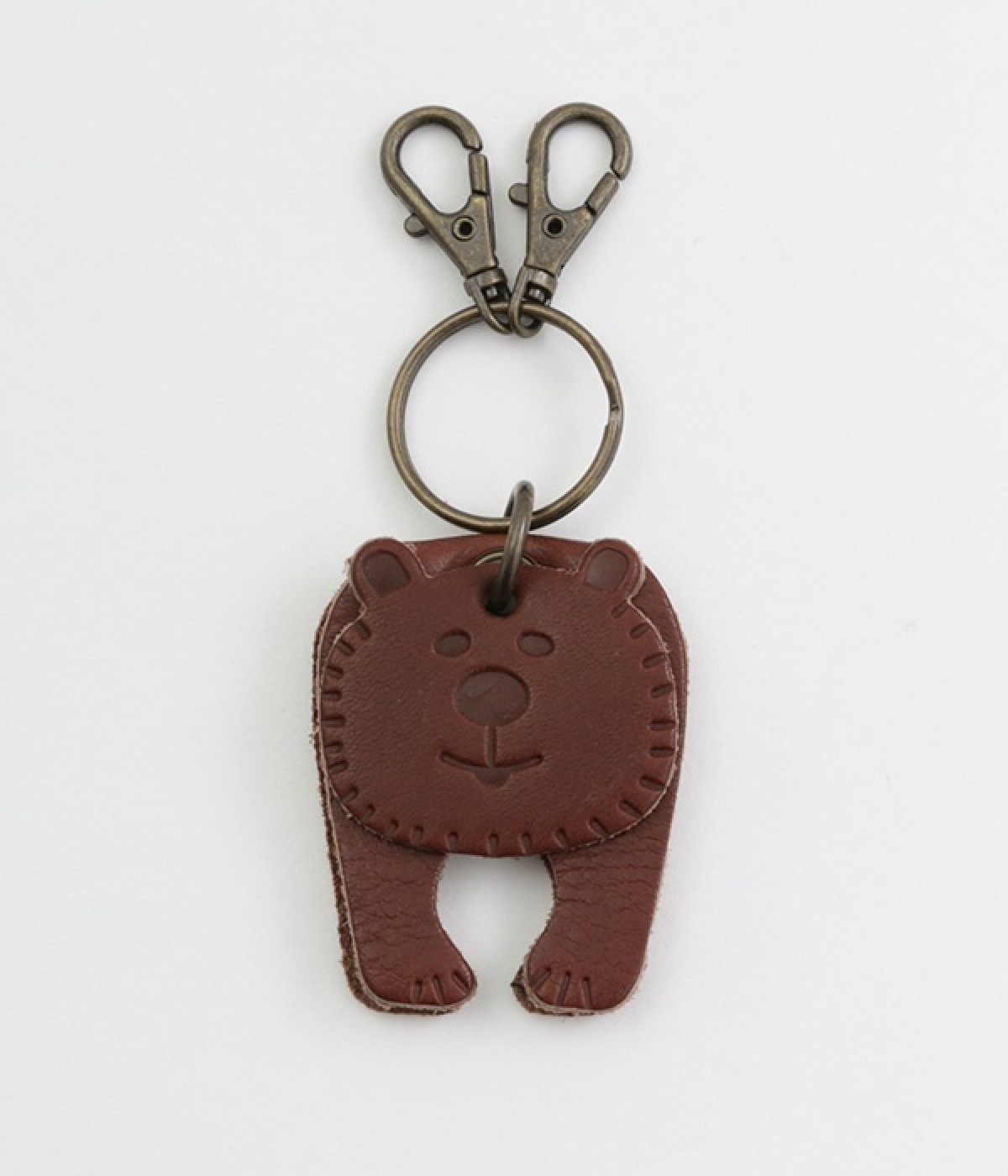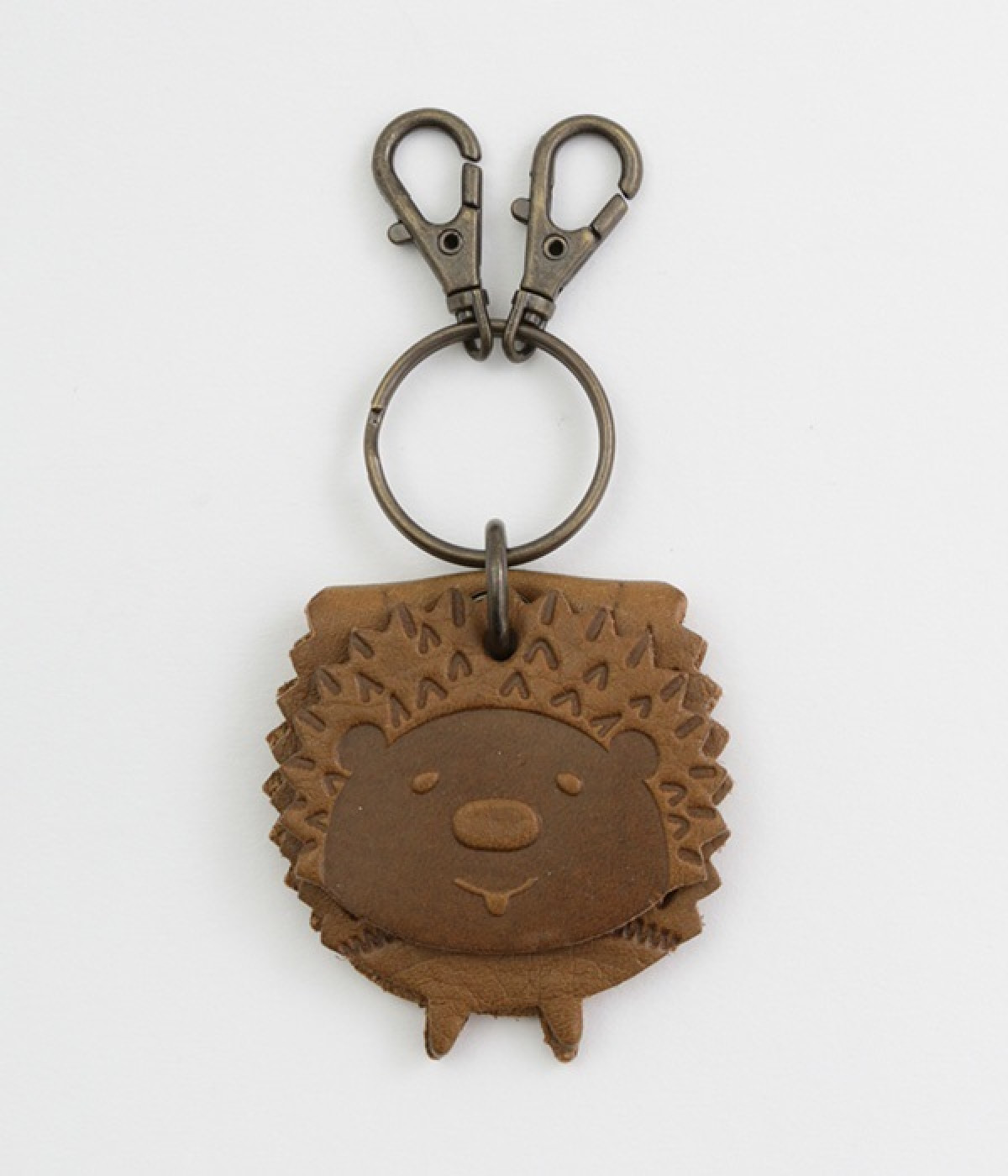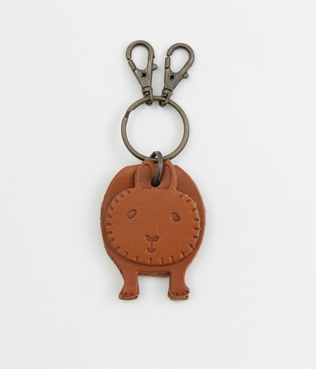 ゆらゆらと揺れる、レザーで作られたかわいらしいアニマルモチーフのキーリングです。キーを掛けられるフックが2つ付いた使い勝手の良い仕様。使い続けるにつれてツヤが増して、手触りもより柔らかく馴染んでくるレザーの経年変化が楽しめるのも魅力です。お子様から大人まで使えるデザインなので、プレゼントにもおすすめです。