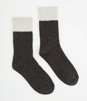 パキっとした配色が印象的なバイカラーソックス。目をひく明るい配色は、コーディネートのアクセントにもぴったりです。ショートブーツと合わせて、リブの配色をちらりとのぞかせるのもおすすめ。
