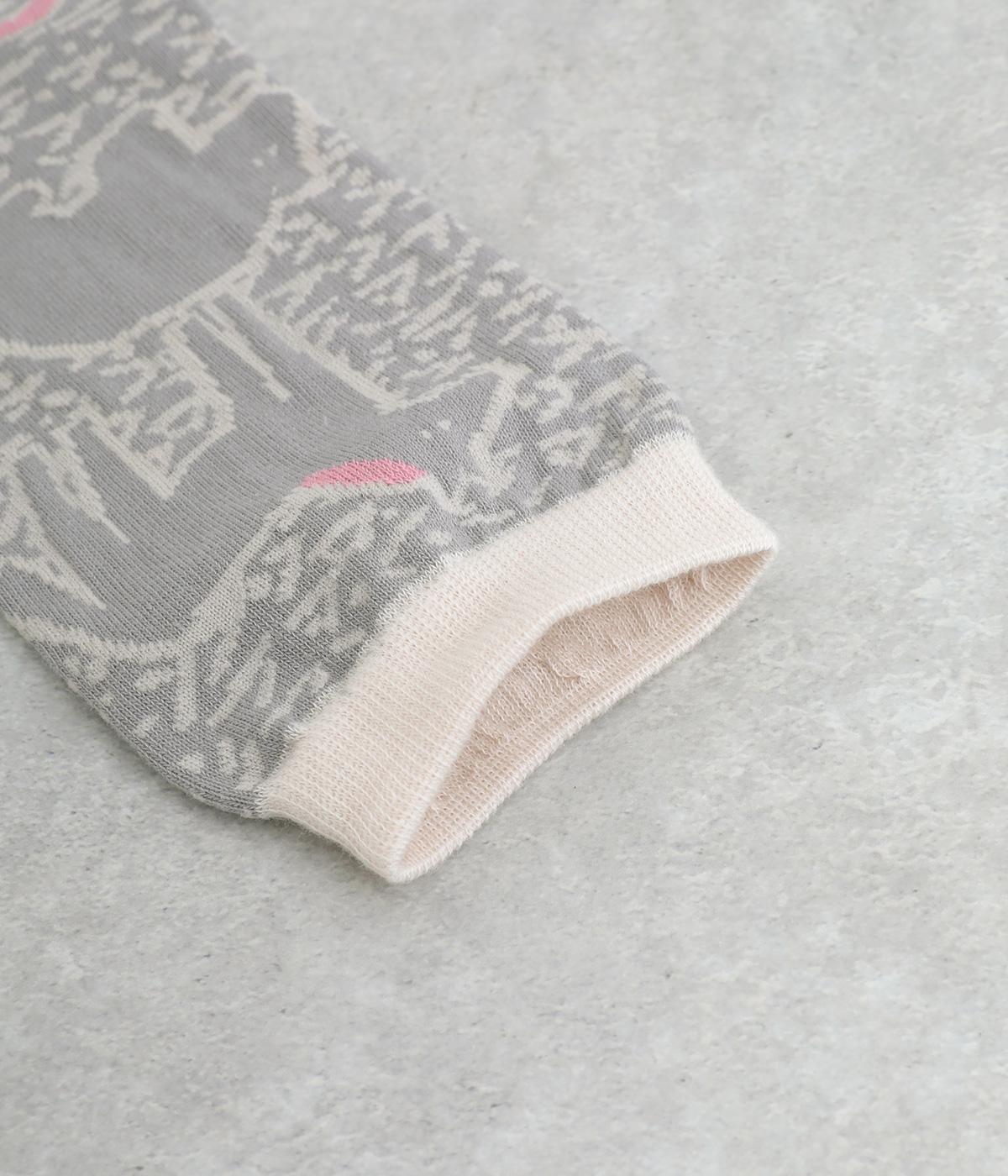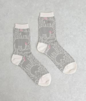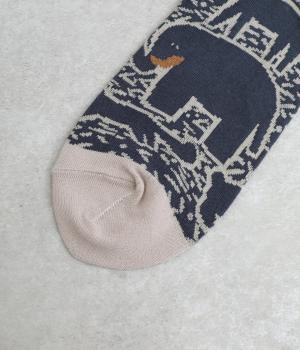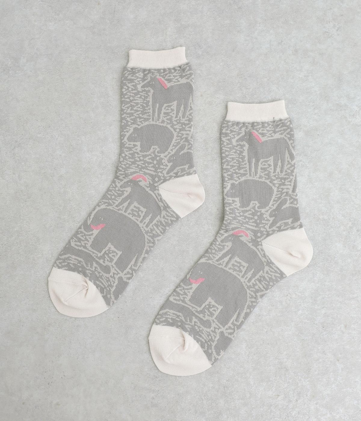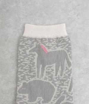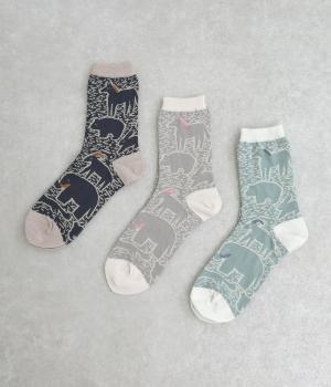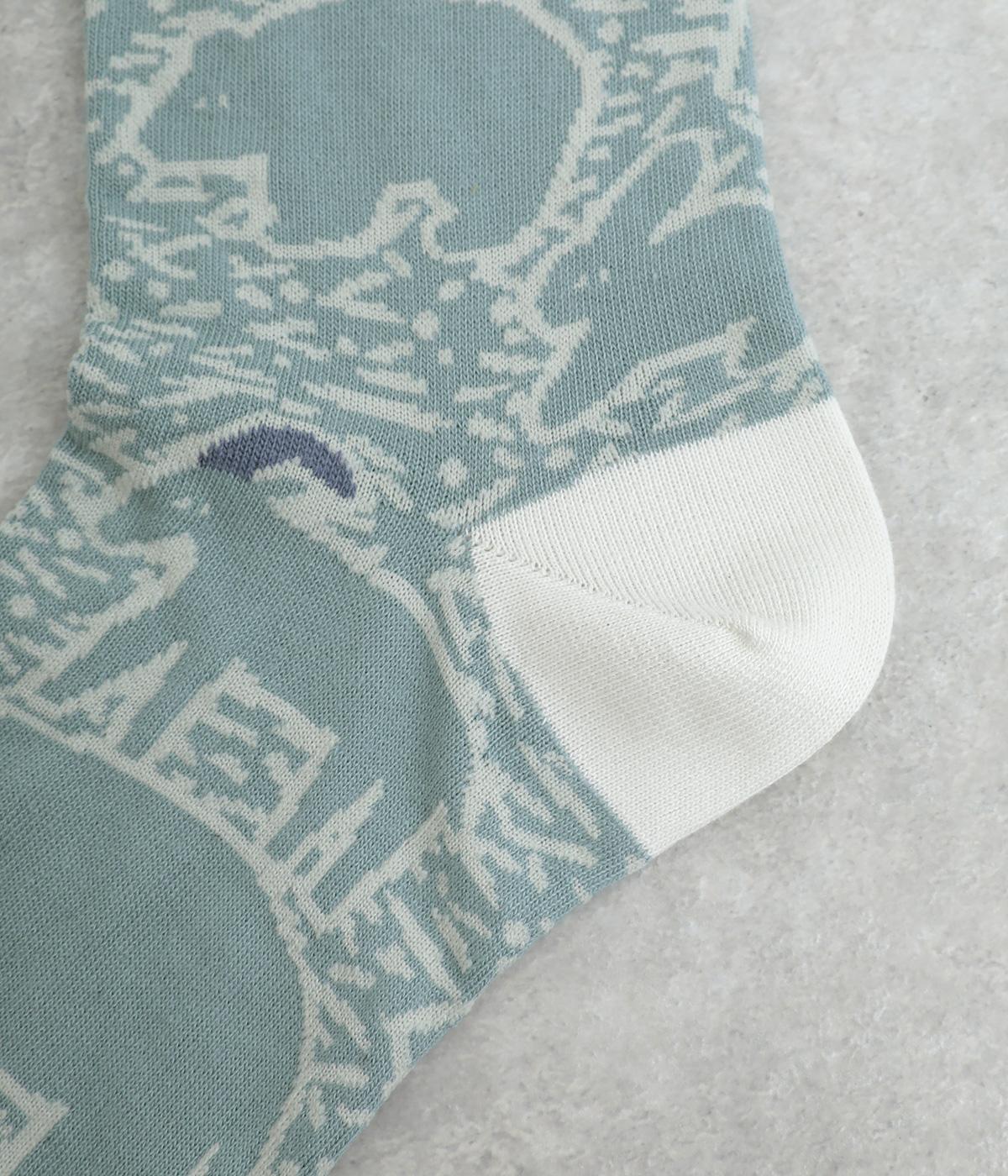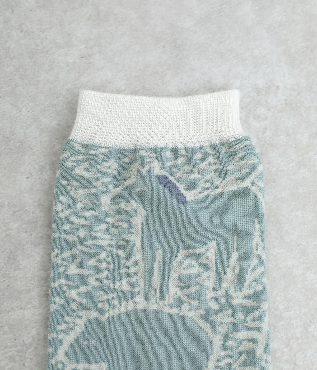 版画タッチで描かれたさまざまな動物がユーモアで可愛らしいソックスです。たのしげな動物が癒されるデザインで、落ち着いた配色もグッド。ナチュラルやカジュアルテイストなデイリースタイルに取り入れやすい仕上がりです。