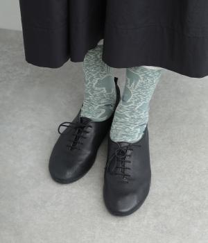 綿糸をベースにしてやわらかく編み立てました。ナイロンをミックスすることで適度に軽いタッチに仕上がっています。シューズサイズにも影響しにくいほどよい薄さです。