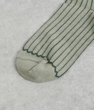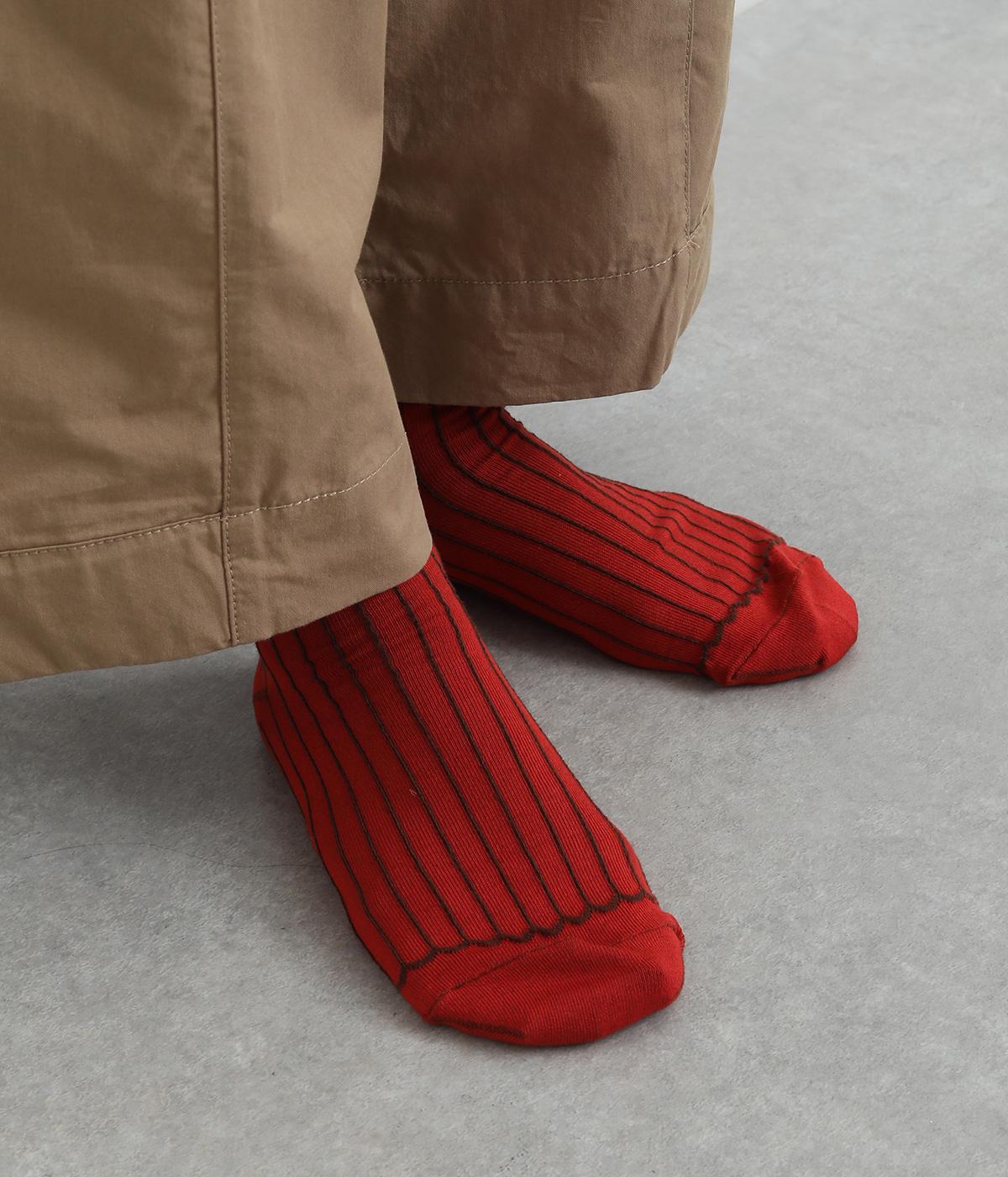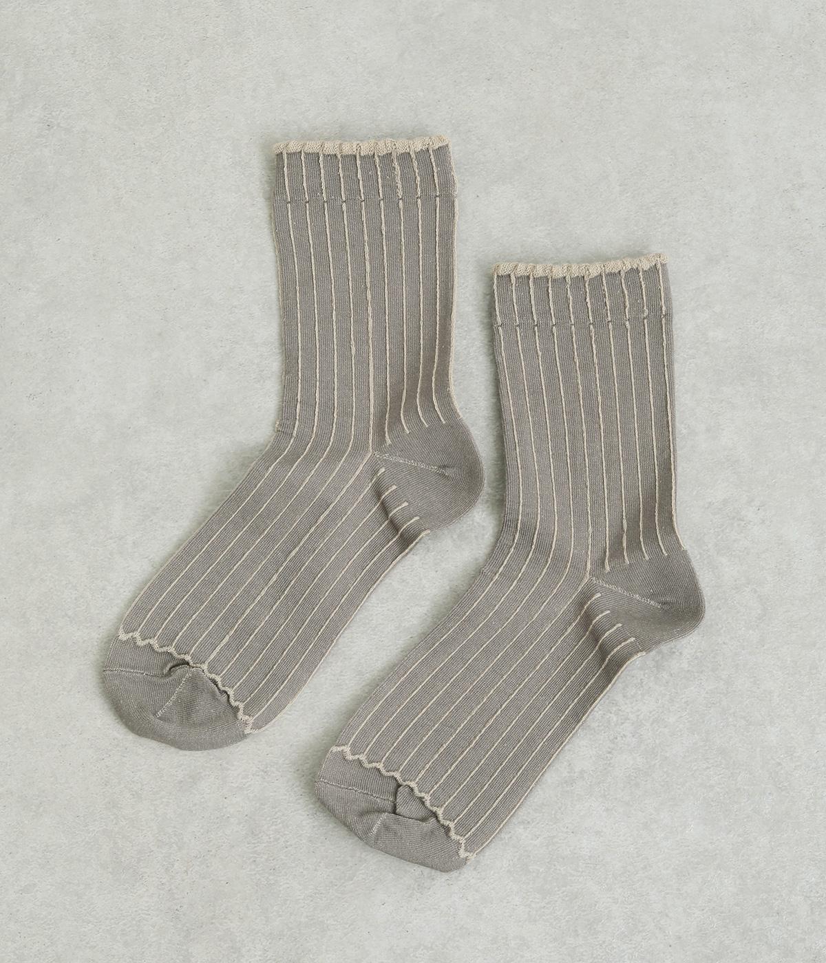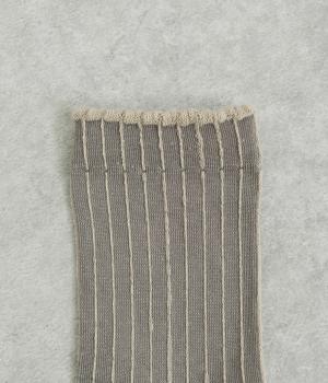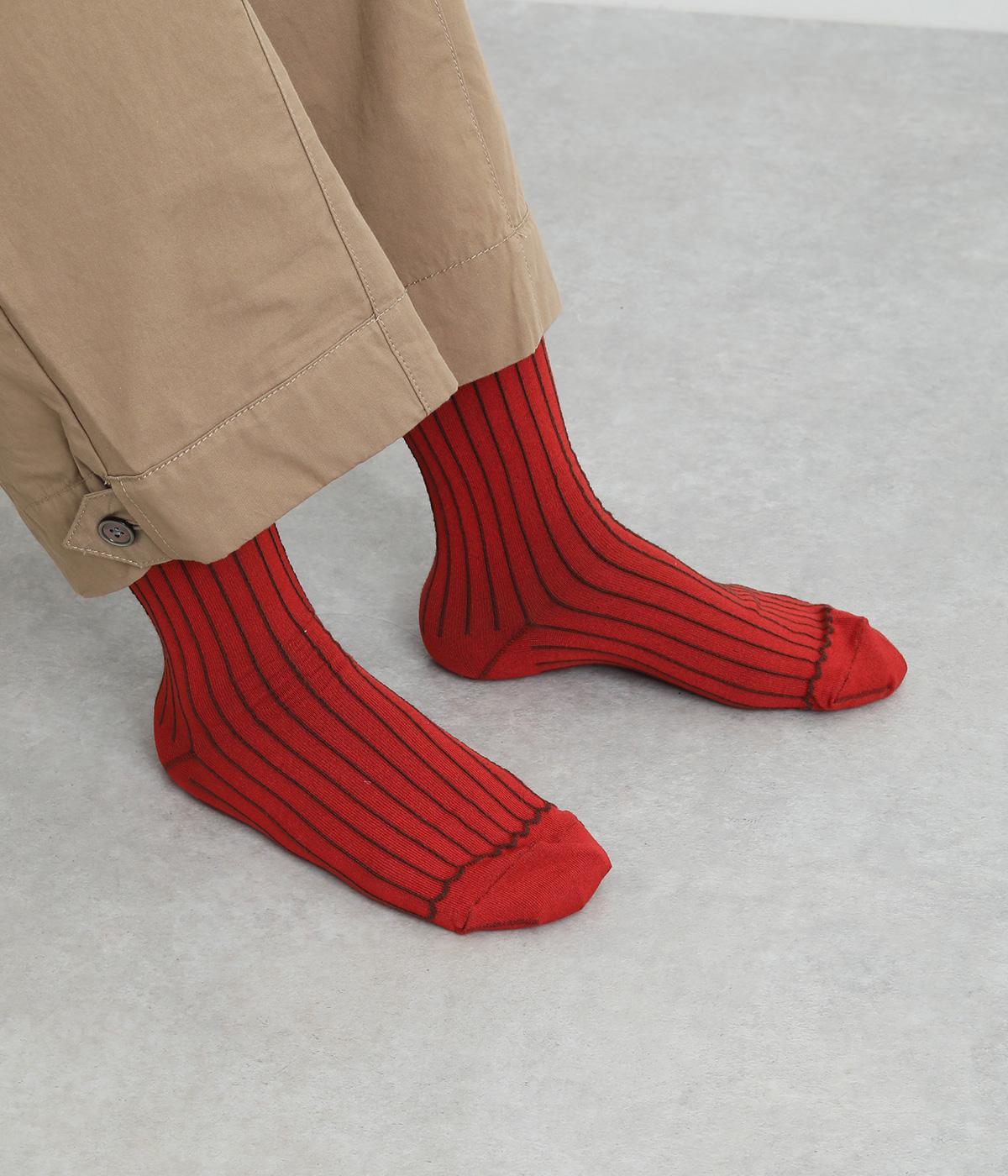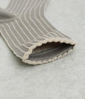 立体感のある細いストライプがおしゃれなソックス。配色も派手過ぎず、さまざまな装いに大人っぽく合わせられます。色違いでいくつも揃えたくなるアイテムです。
