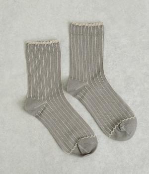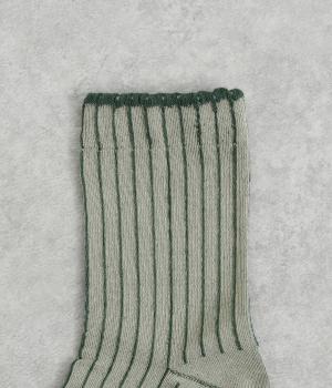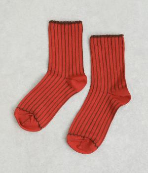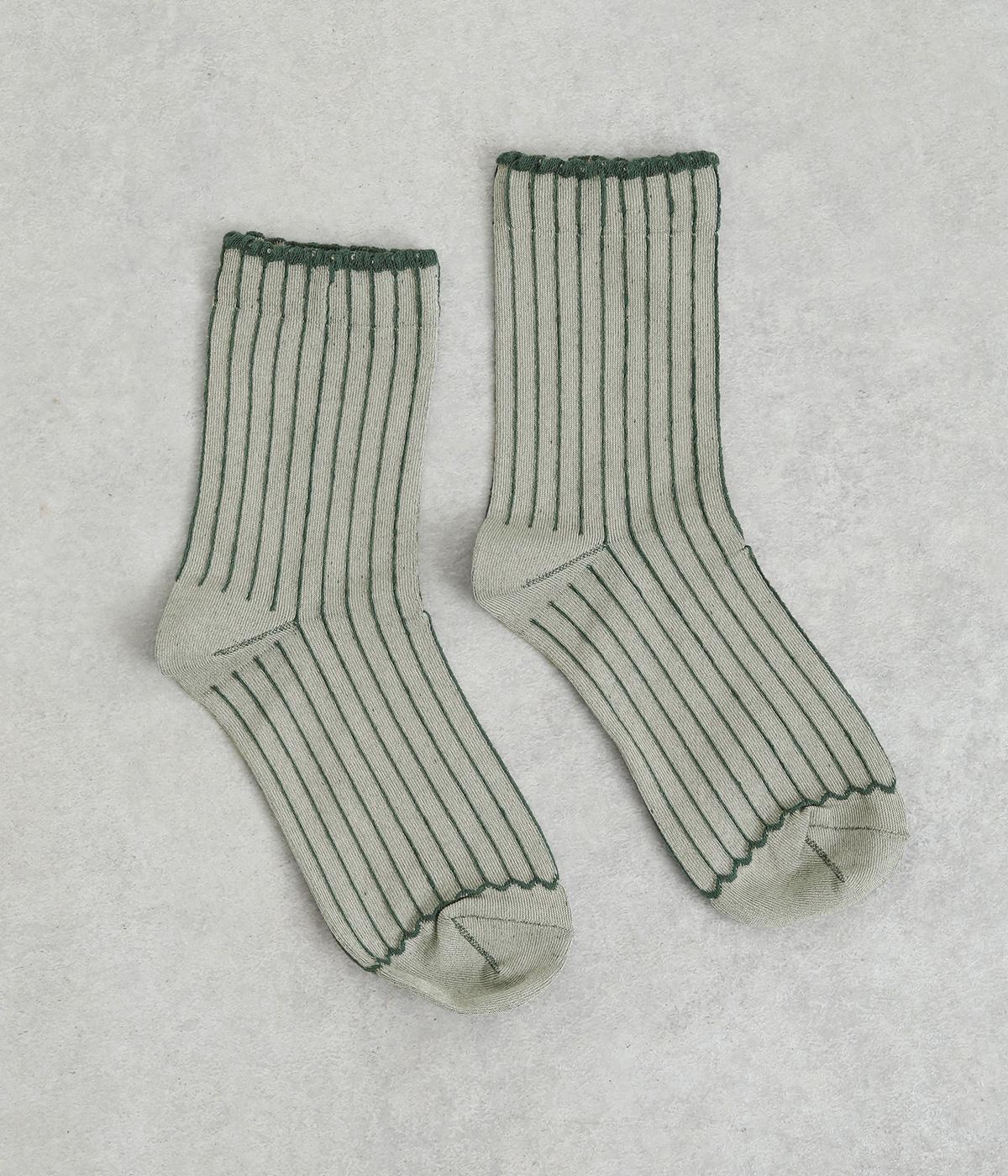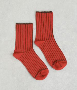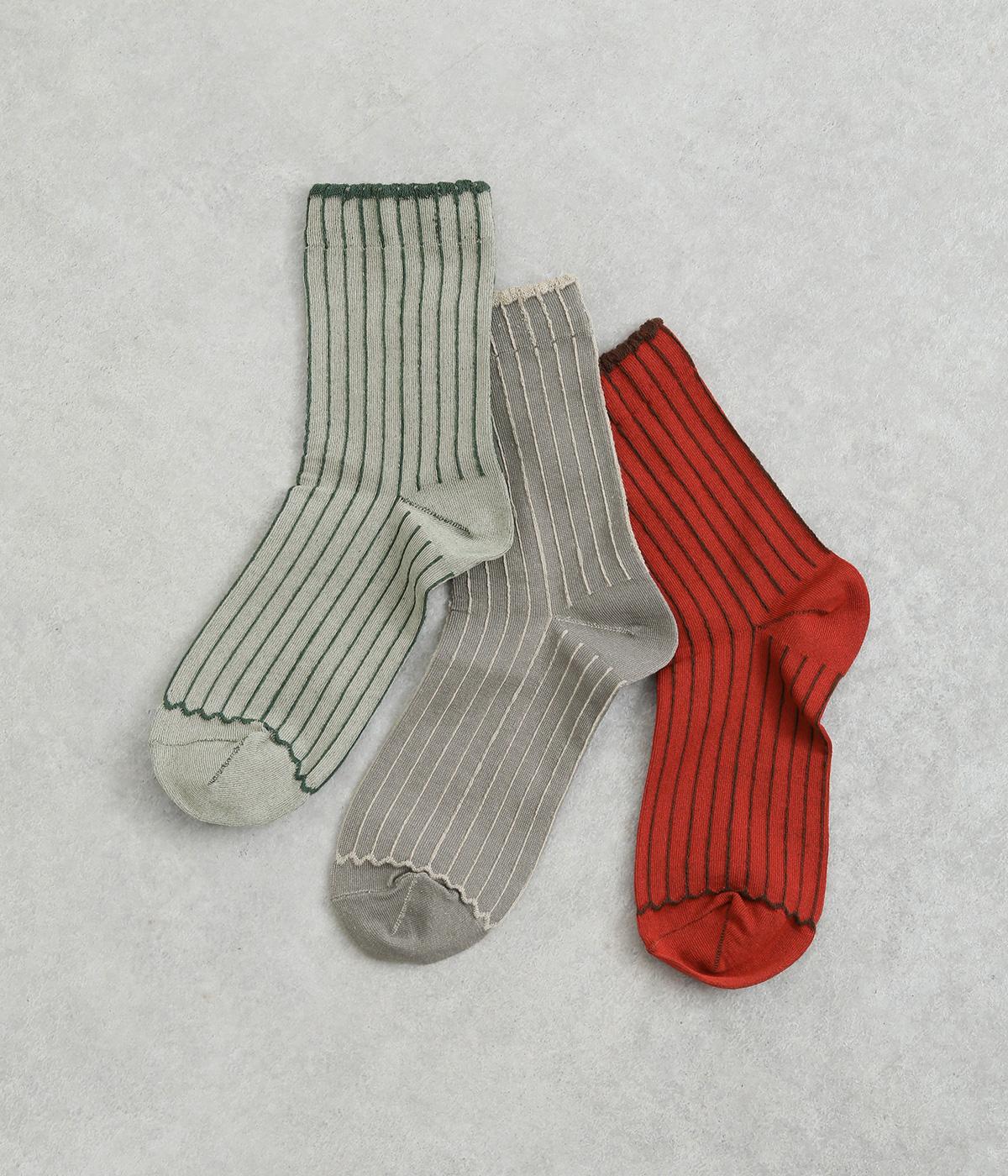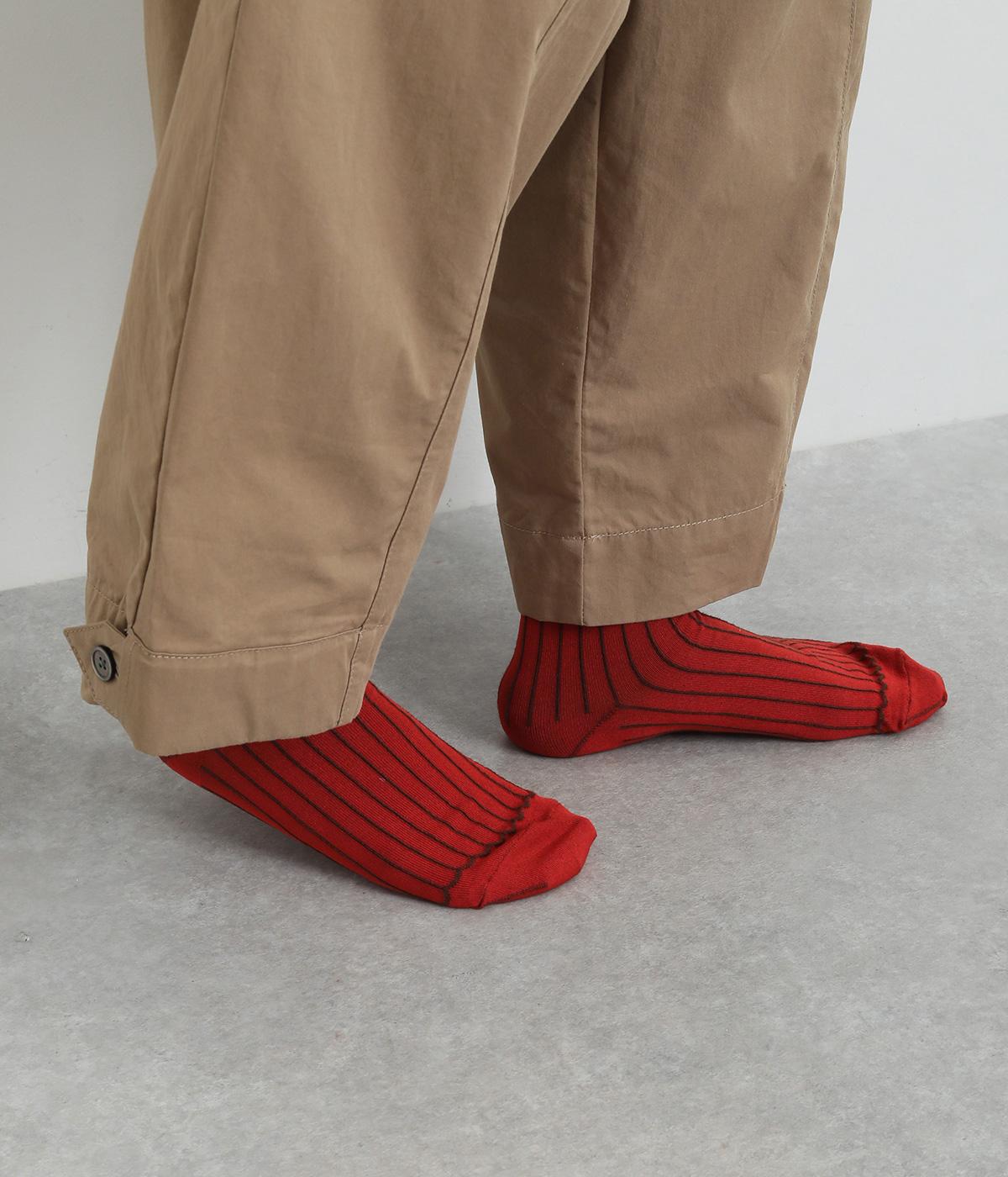 立体感のある細いストライプがおしゃれなソックス。配色も派手過ぎず、さまざまな装いに大人っぽく合わせられます。色違いでいくつも揃えたくなるアイテムです。