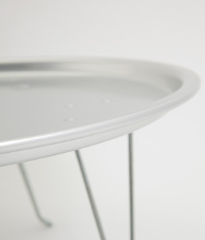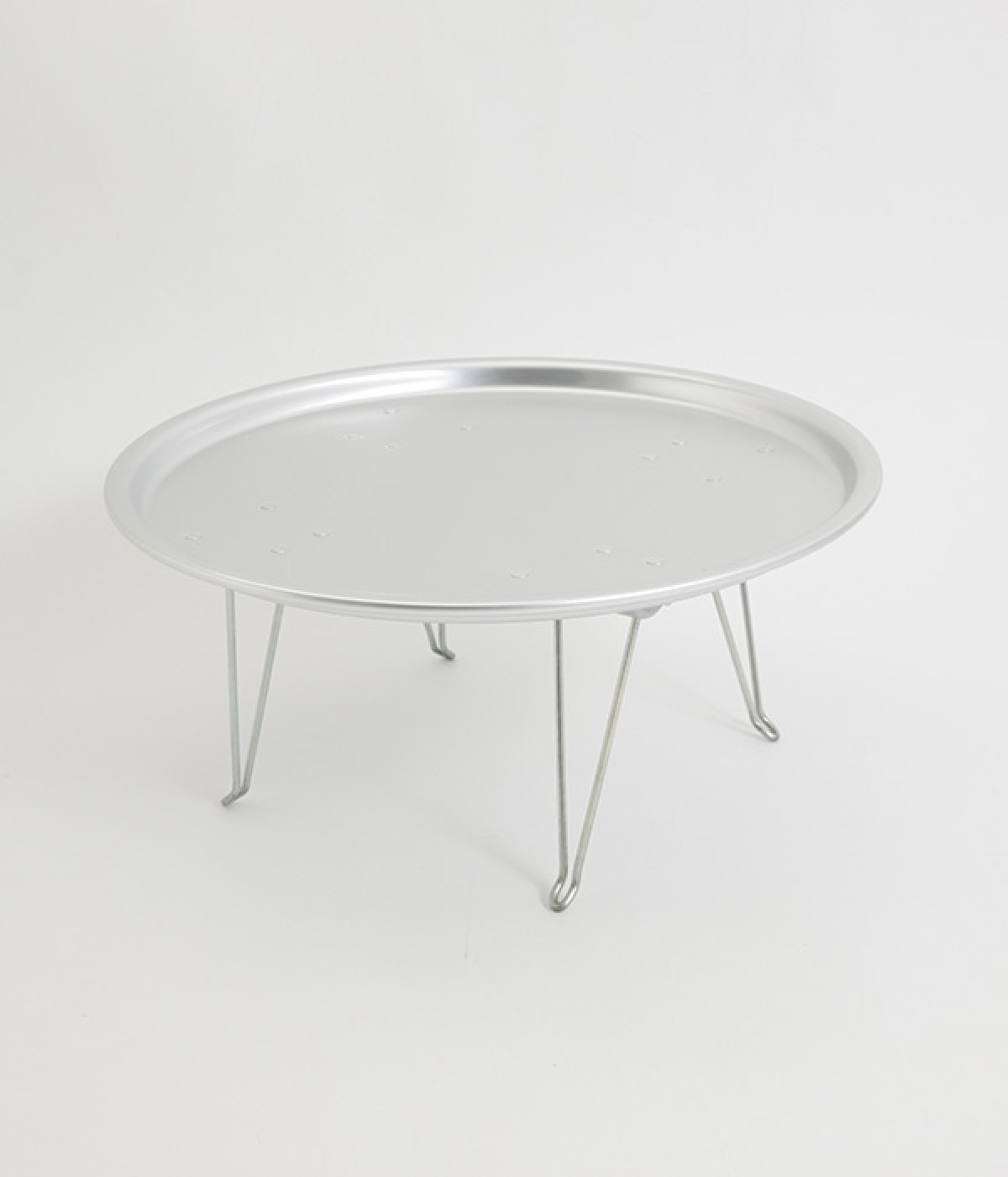アルマイト処理を施したアルミ製のちゃぶ台。足が4つ設けられた安定感のあるつくりで、ちゃぶ台として使うのはもちろん、足を折り畳めばお盆としてもお使いいただけます。折り畳めばコンパクトなサイズになるので置き場所に困ることもありません。軽量で持ち運びしやすいので、キャンプやバーベキューなどといったアウトドアシーンでも活躍してくれます。