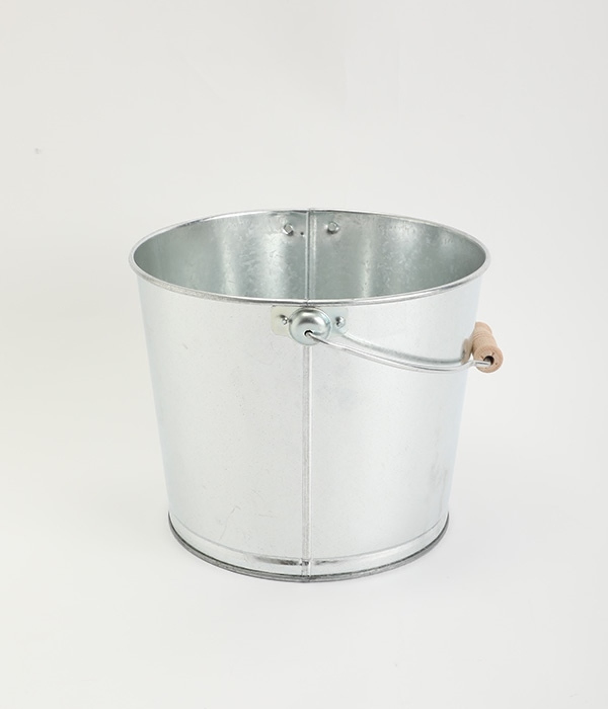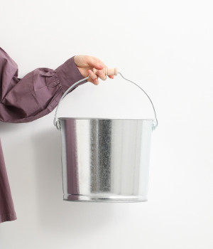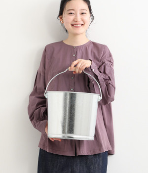 寸胴で容量が多く、元々工事現場などで使用されていたため底や側面の板厚が厚く衝撃にも強く作られたバケツです。ズボンなどをひっかけないように、釣手が内側に巻かれているのもポイントに。掃除にはもちろん室内での収納に、キャンプでも活躍しそう。優しい風合いの木製の取っ手が付いた懐かしい雰囲気のトタン素材は、どんな場所にも馴染みます。