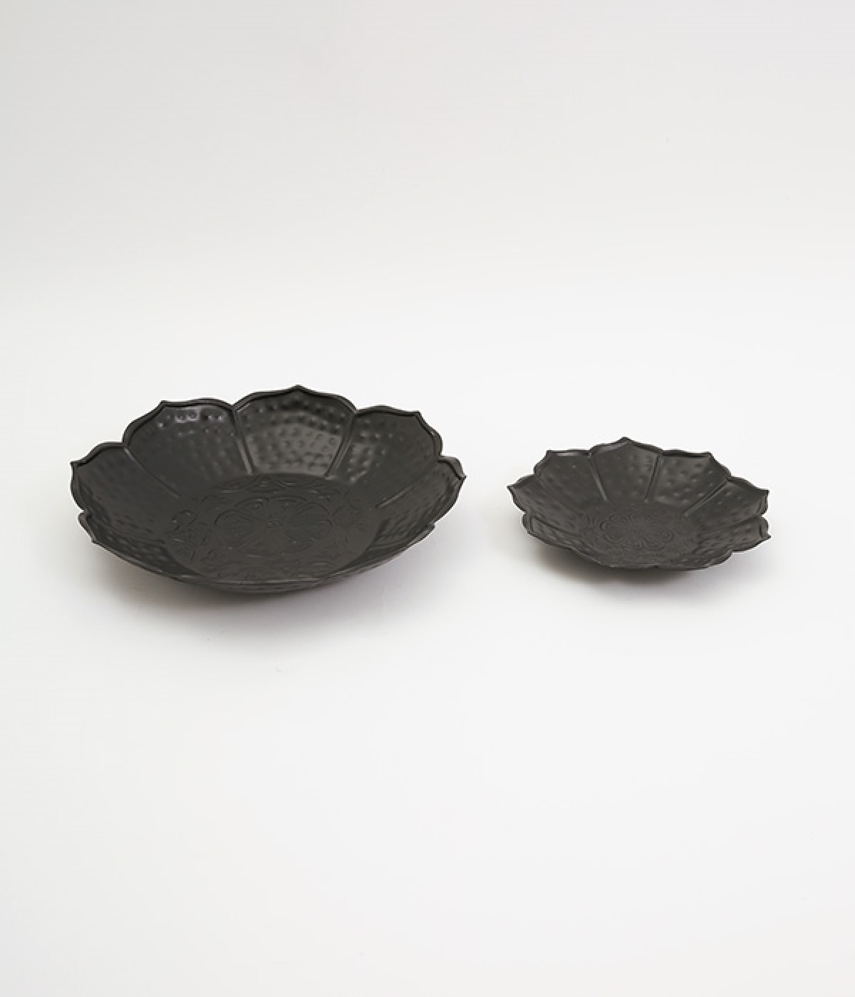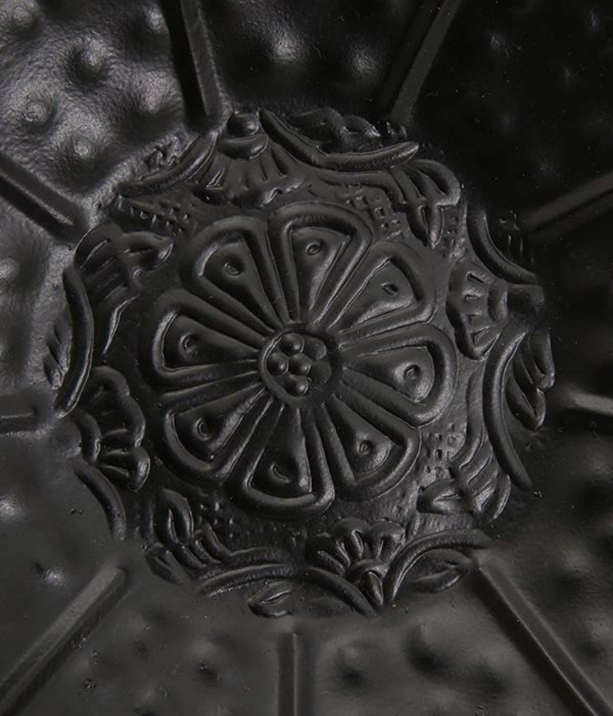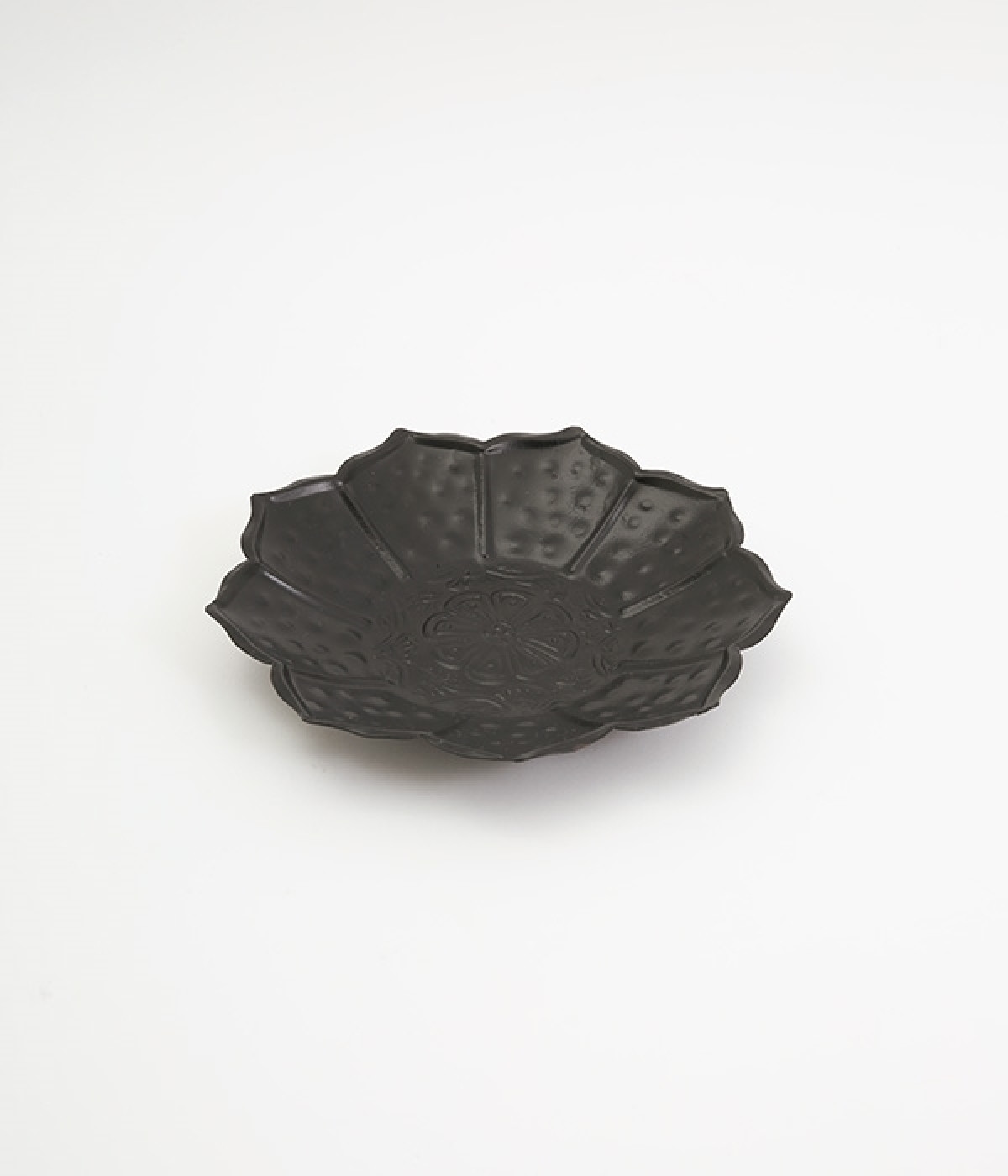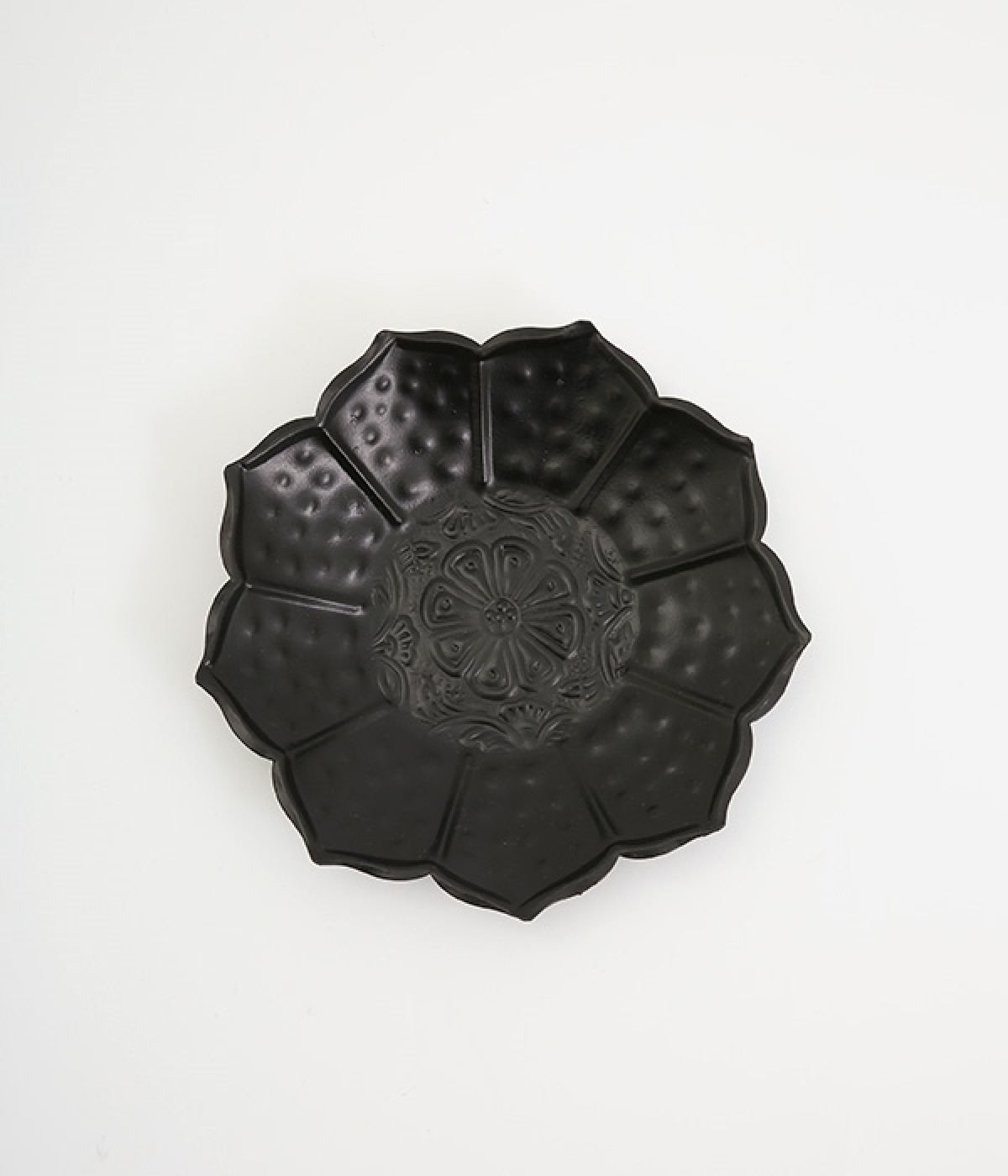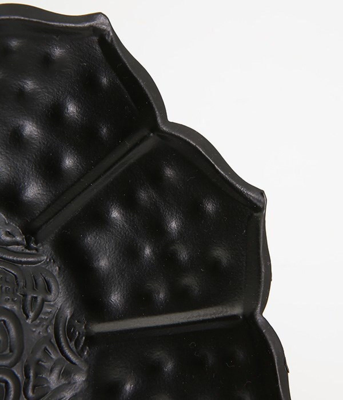 落ち着いた趣のおしゃれなアイアントレイです。マットなブラックがモダンな雰囲気を漂わせる、蓮の花のようなロータス型。アクセサリーやちょっとした小物入れにぴったりです。テーブルや棚に置いておくだけで独特の存在感を発揮する、インテリアのアクセントにもおすすめのアイテム。ホームパーティなどの華やかなシーンにも活躍してくれます。