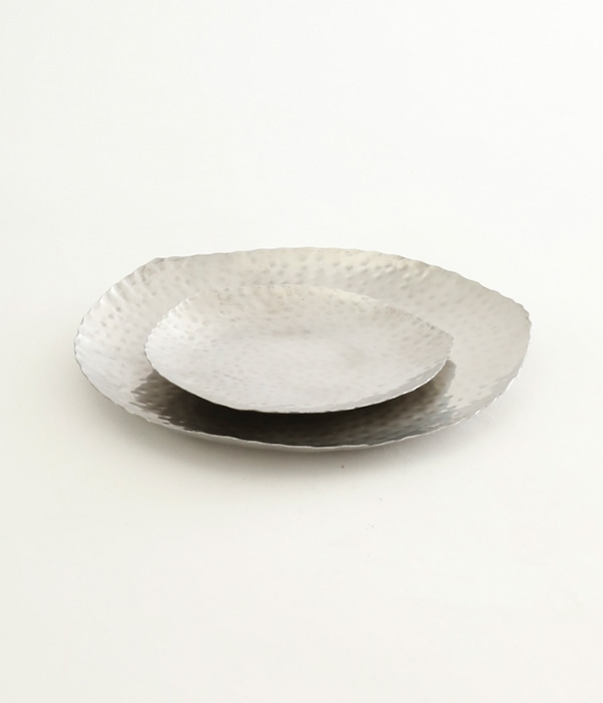 高級感のある槌目(つちめ)模様が素敵なステンレス素材の中サイズプレートです。1点1点ハンマーでたたいて打ち出した槌目とよばれる凹凸のある表情が美しく、そこにあるだけで存在感のあるとっておきのトレイ。デザートやフルーツを盛り付けたり、取り分け皿としてもちょうどいいサイズ。軽さがあり、重ねられるデザインで使いやすさも◎。