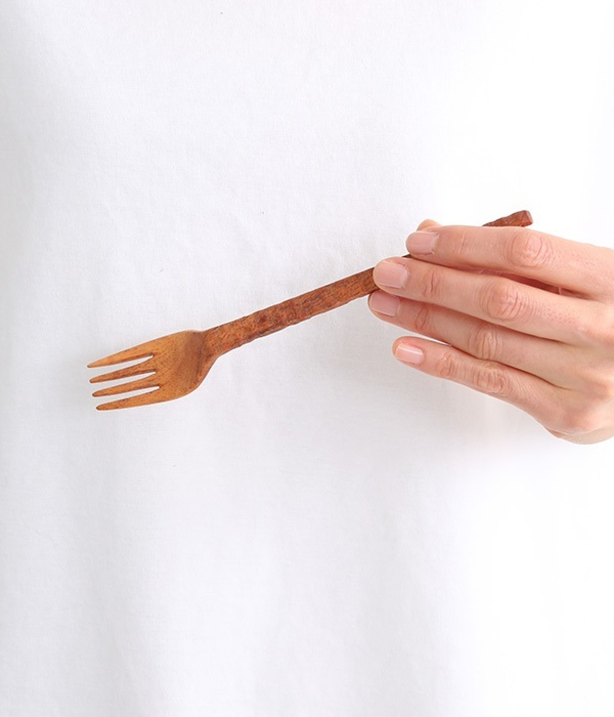 すべりにくいのでパスタにもぴったりな木製のフォークです。木製のフォークを使うと暖かい食べ物もさらにほっこりと感じられるなど、さり気なく寄り添いながらも日々の生活をより豊かにしてくれるようなアイテムです。自然素材(ニームウッド)で作られているので一つひとつ色目に個体差が生まれ、天然素材・無塗装ならではの風合いが魅力。使い心地の良いサイズでちょっとしたギフトにもおすすめです。