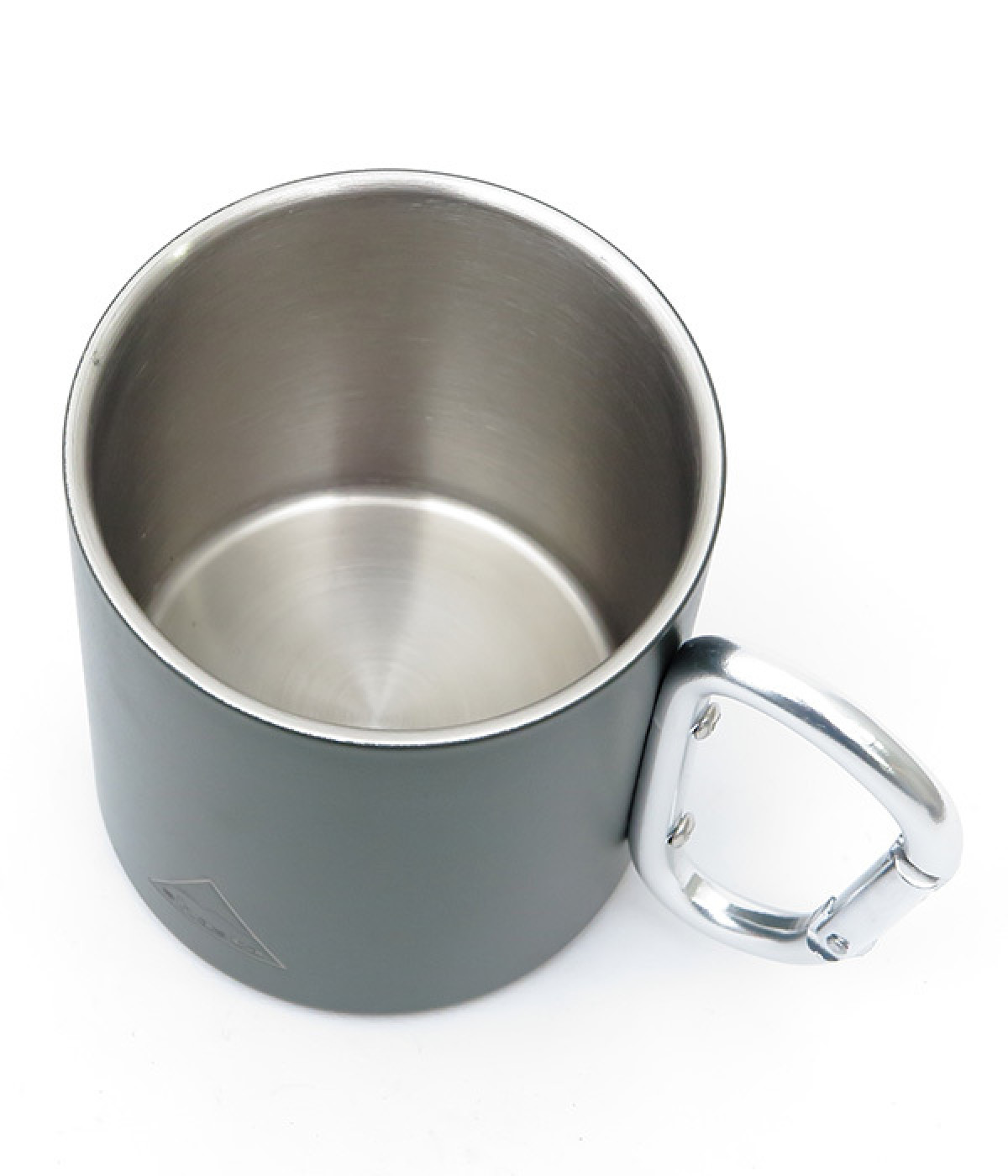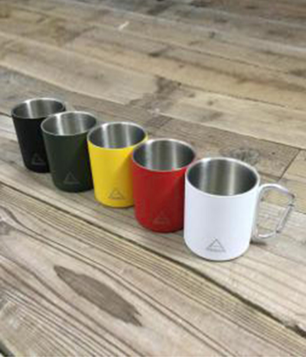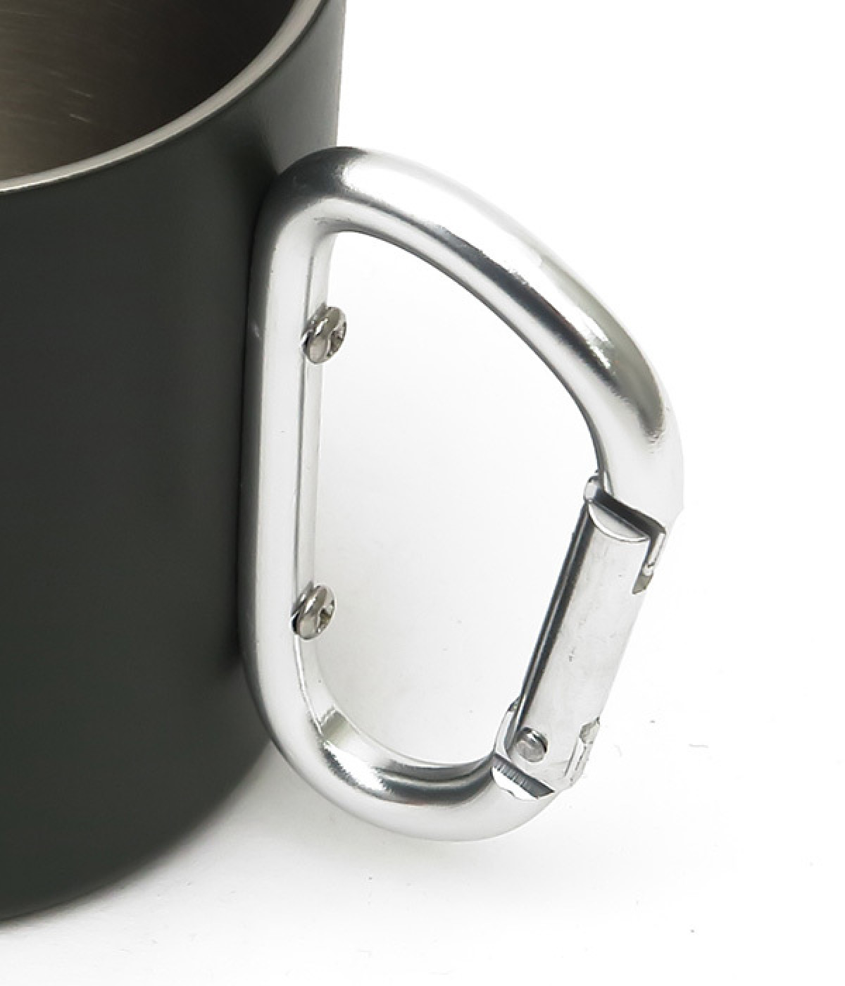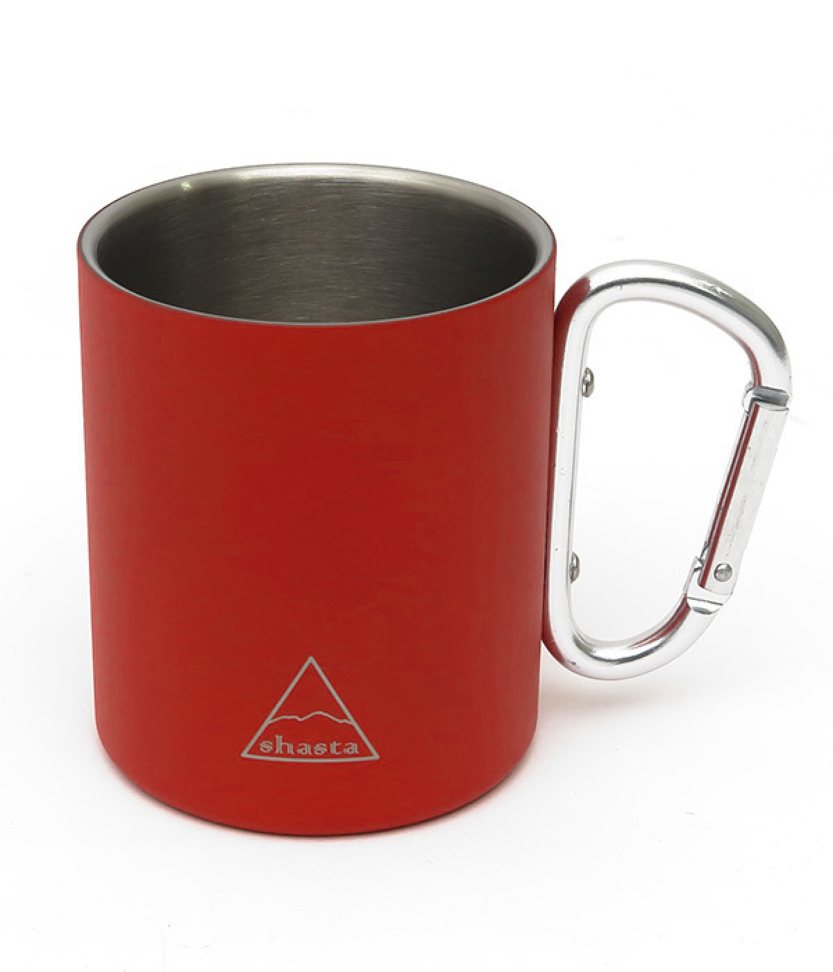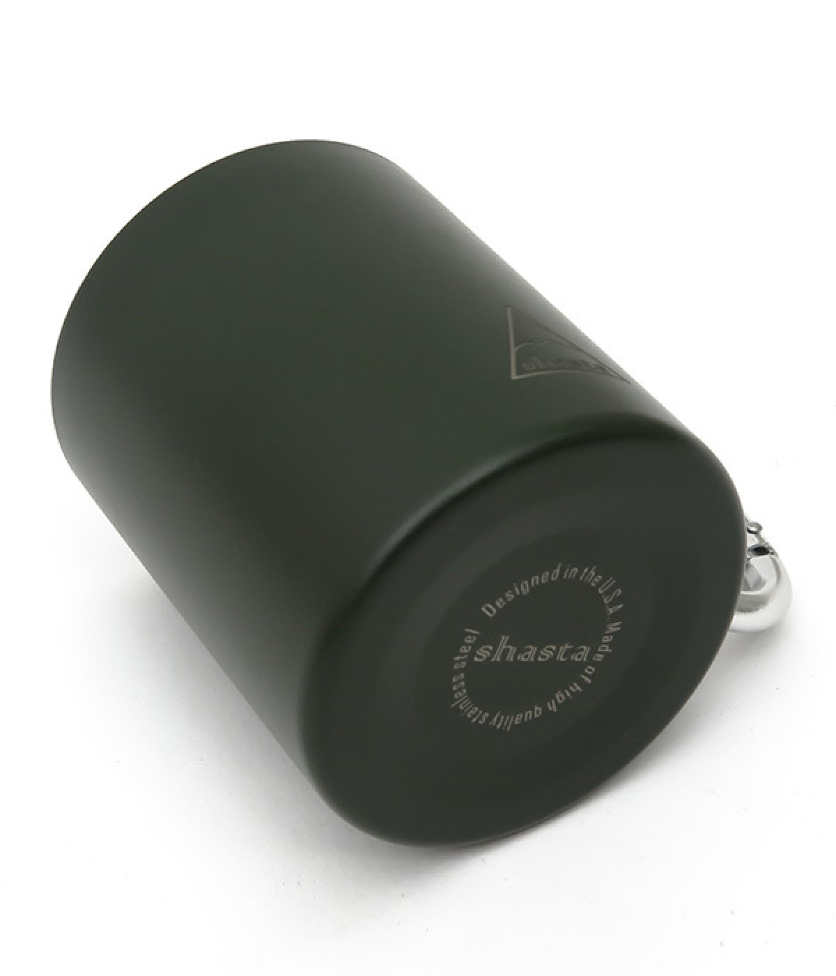 ハンドル部分がカラビナになった使いやすいマグカップです。持ち運びしやすく、取り付けられるため、おうちキャンプやバーベキューなど行楽にピッタリ。保温、保冷力が優れている二重構造、カップ外側は汚れがつきにくいパウダーコーティング、内側は錆びにくい高耐食のステンレスを採用した優れた機能性もポイントです。アメリカ発のブランドshastaはペットボトル飲料やお弁当等の購入を減らし、プラゴミなどの廃棄を減らすことで環境によいサイクルを作り出すことを提案するブランドです。