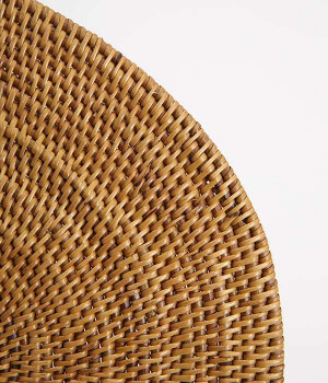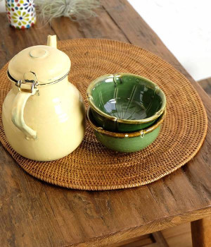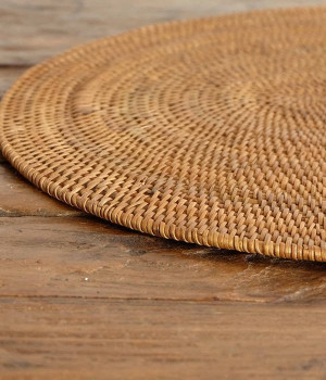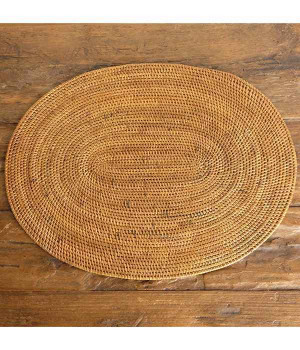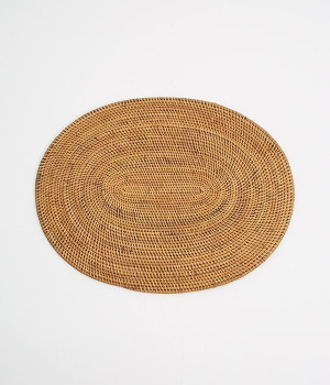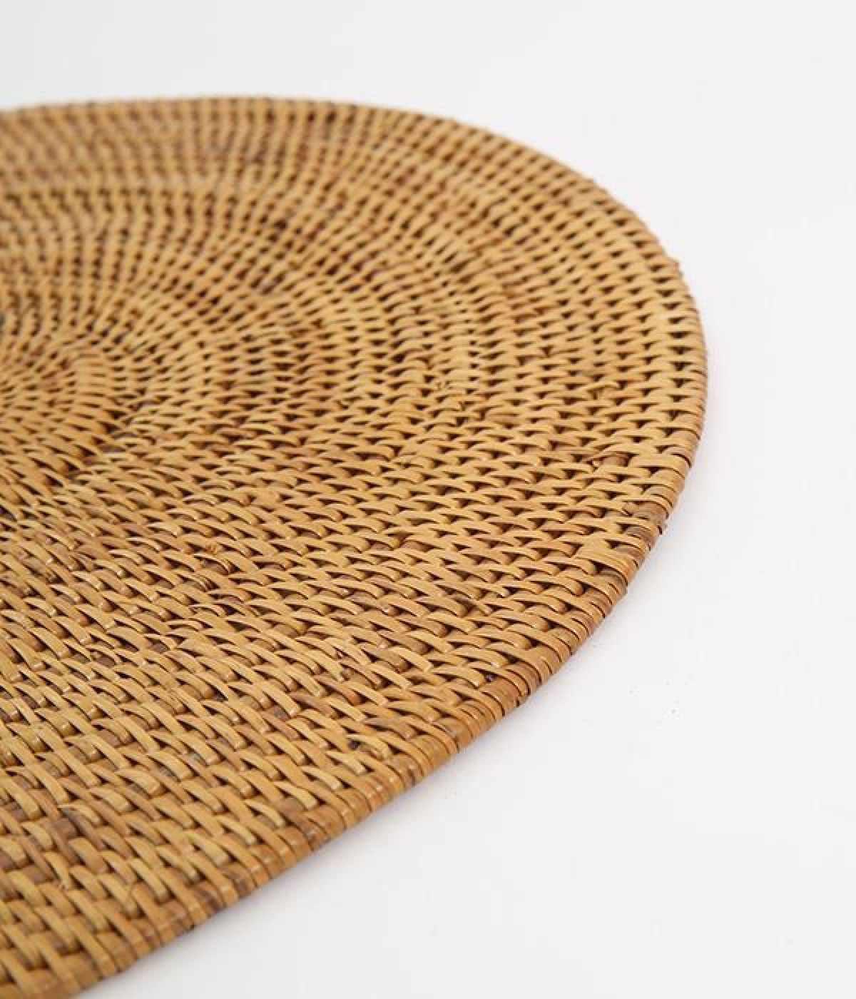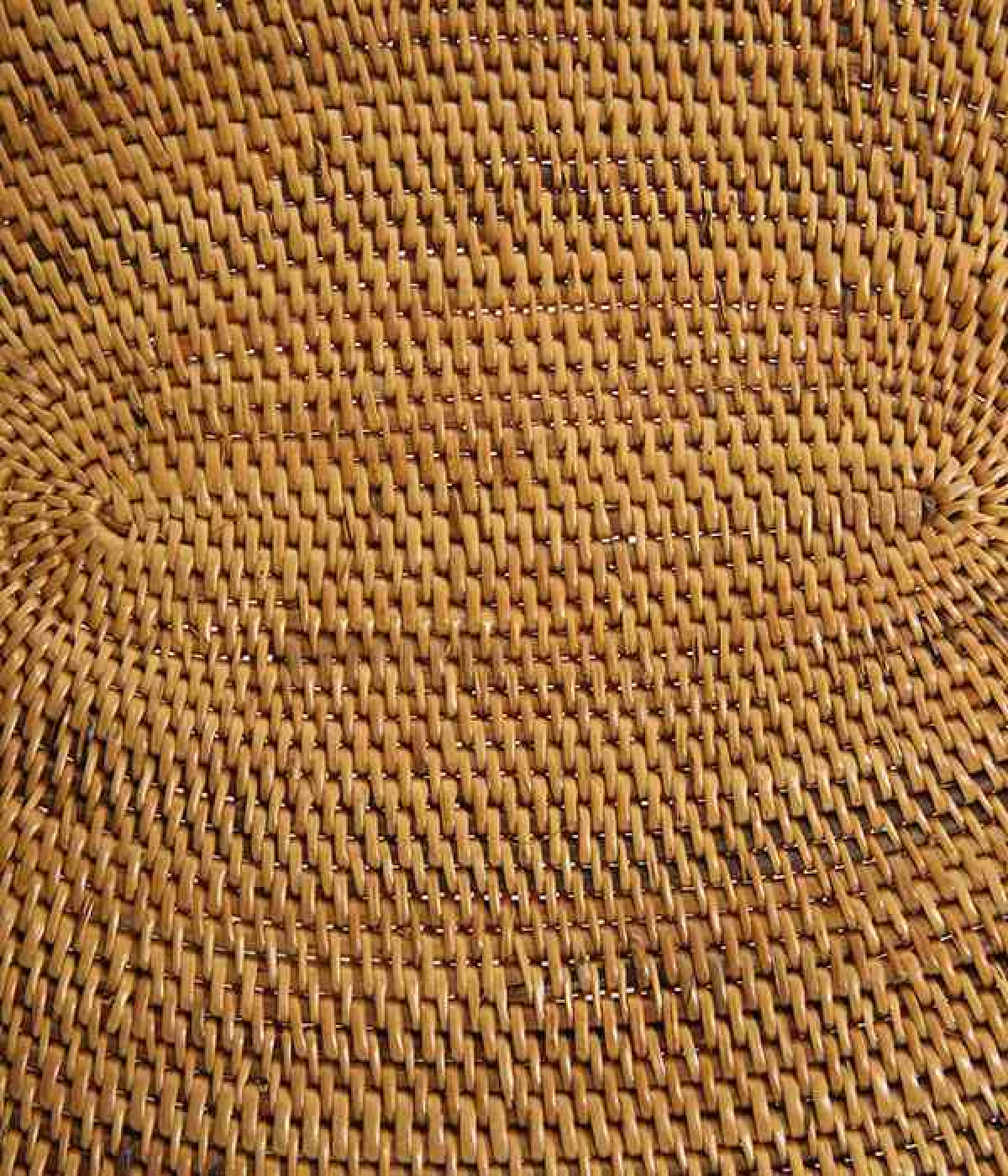 アタの蔓を使って編まれた楕円タイプのランチョンマット。特徴的な飴色をしたアタは、和室やナチュラルテイストのお部屋によく合います。飴色の艶は、編んだ後にココナッツの実を使って燻すことによりつけられたもの。この作業により湿気に強くなって防虫効果が加わり、高温多湿な気候でも長持ちするのが魅力です。