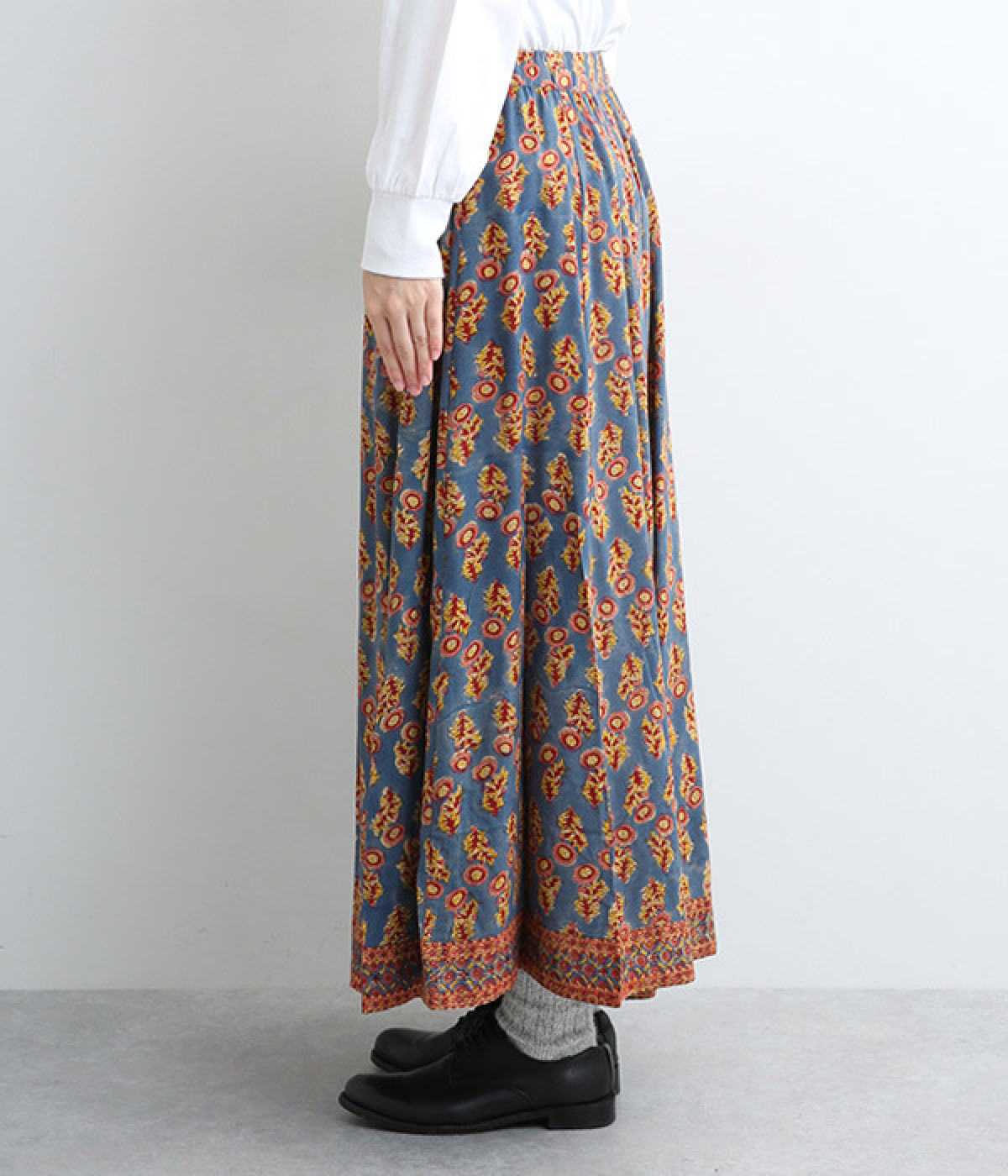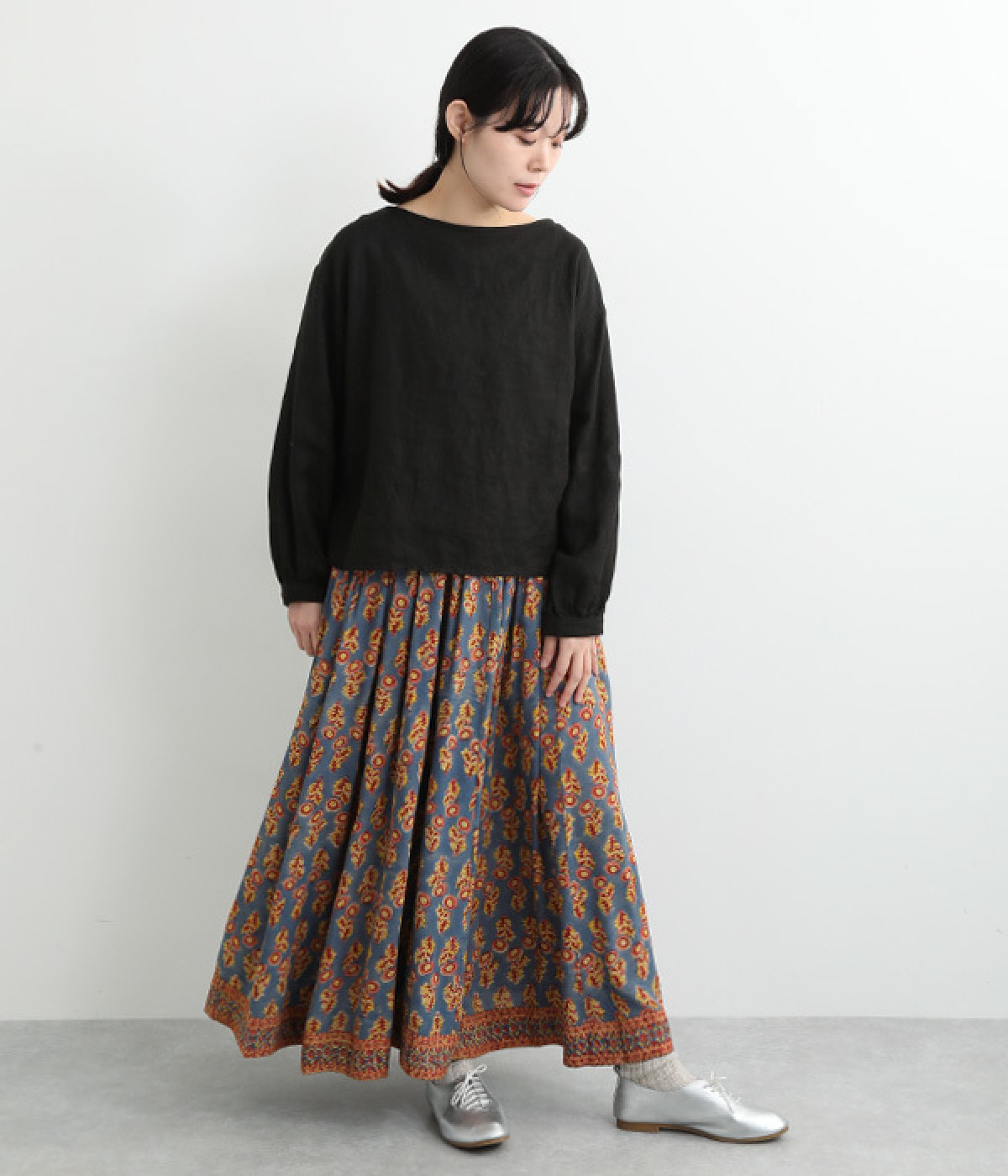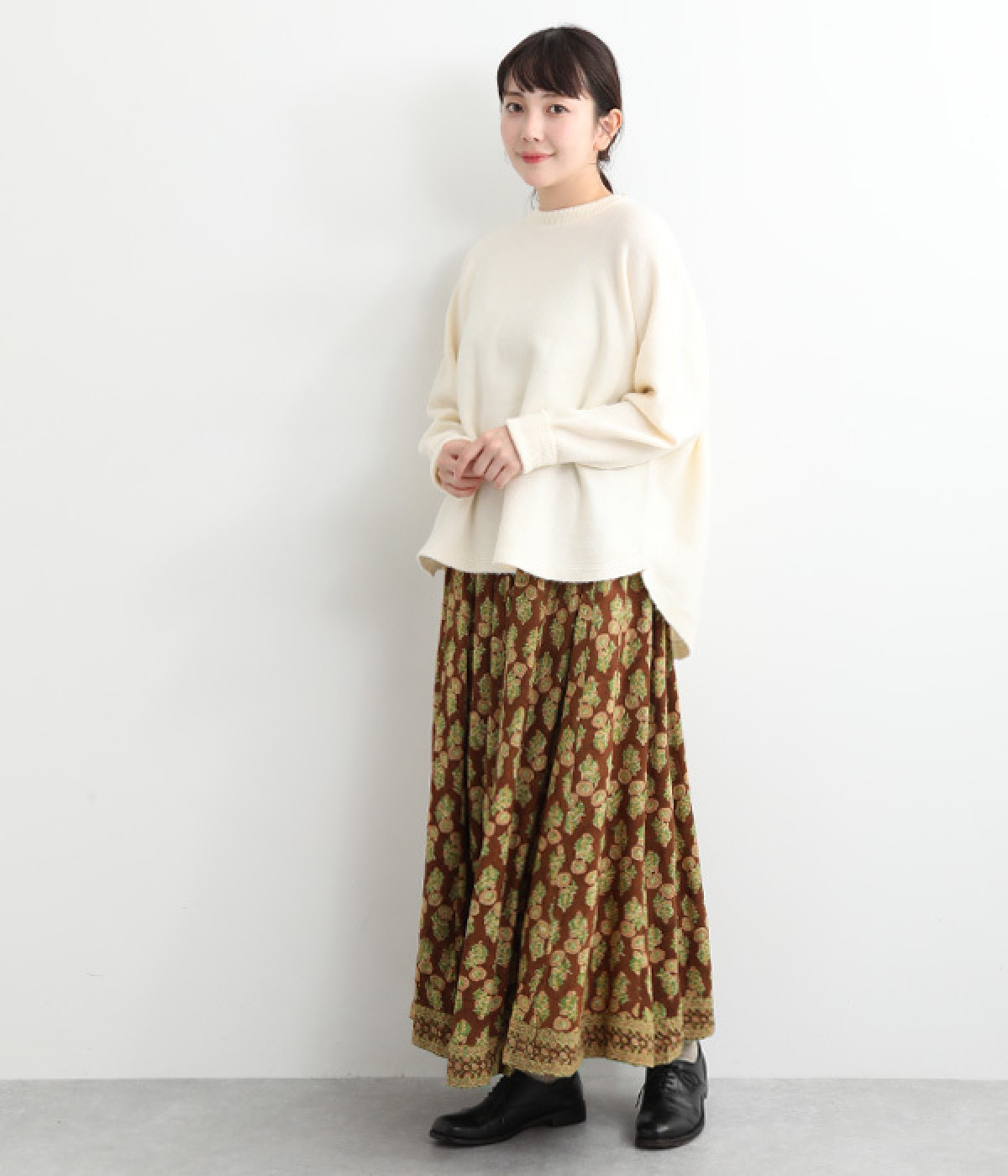裾の量感がありつつ腰まわりはすっきりと