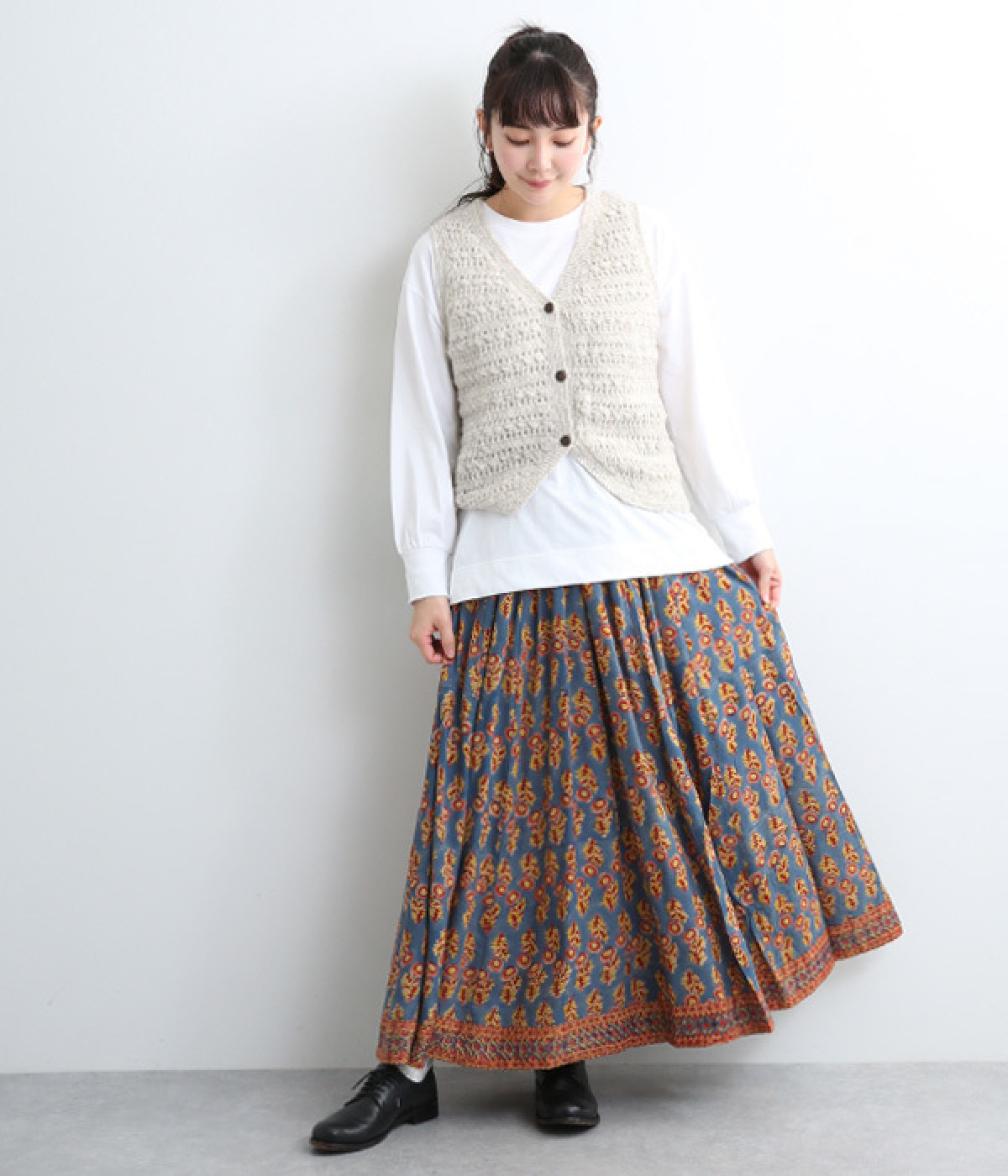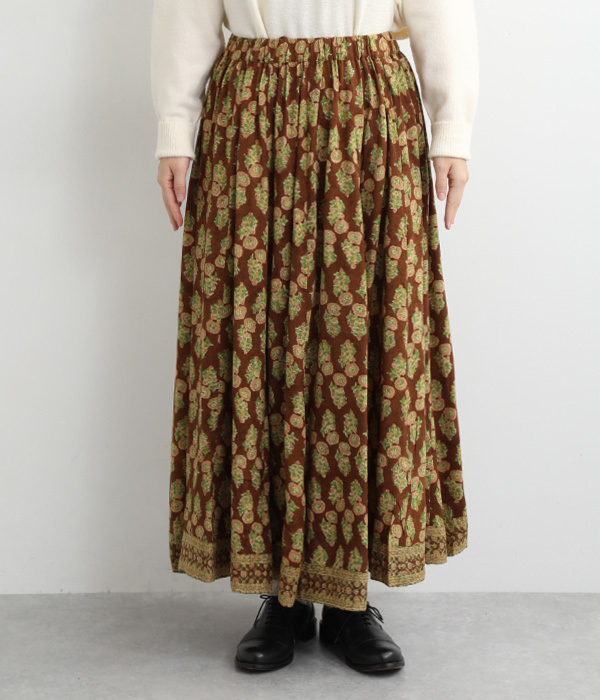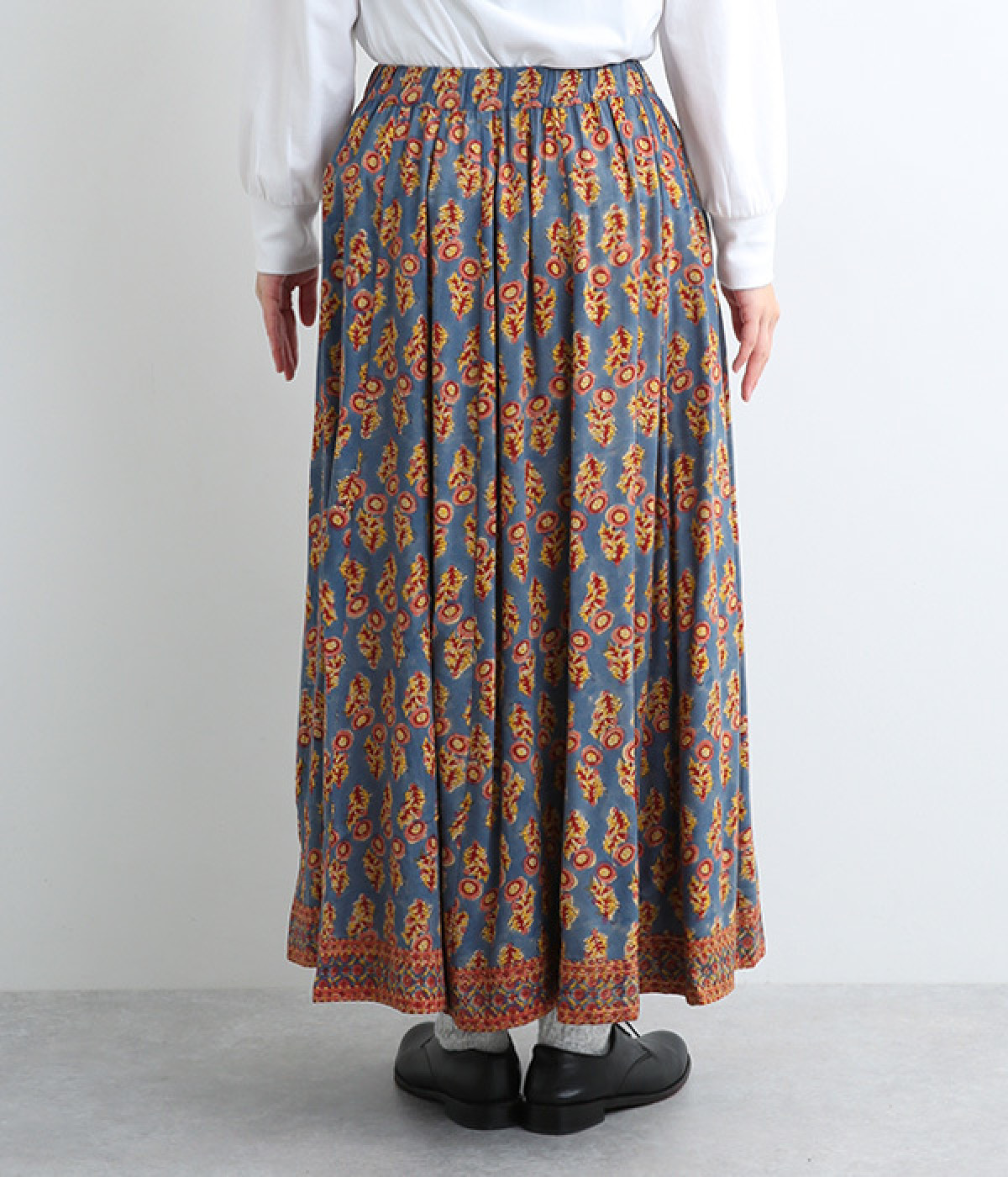 裾の量感がありつつ腰まわりはすっきりと