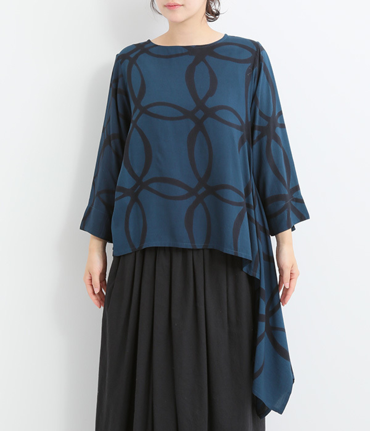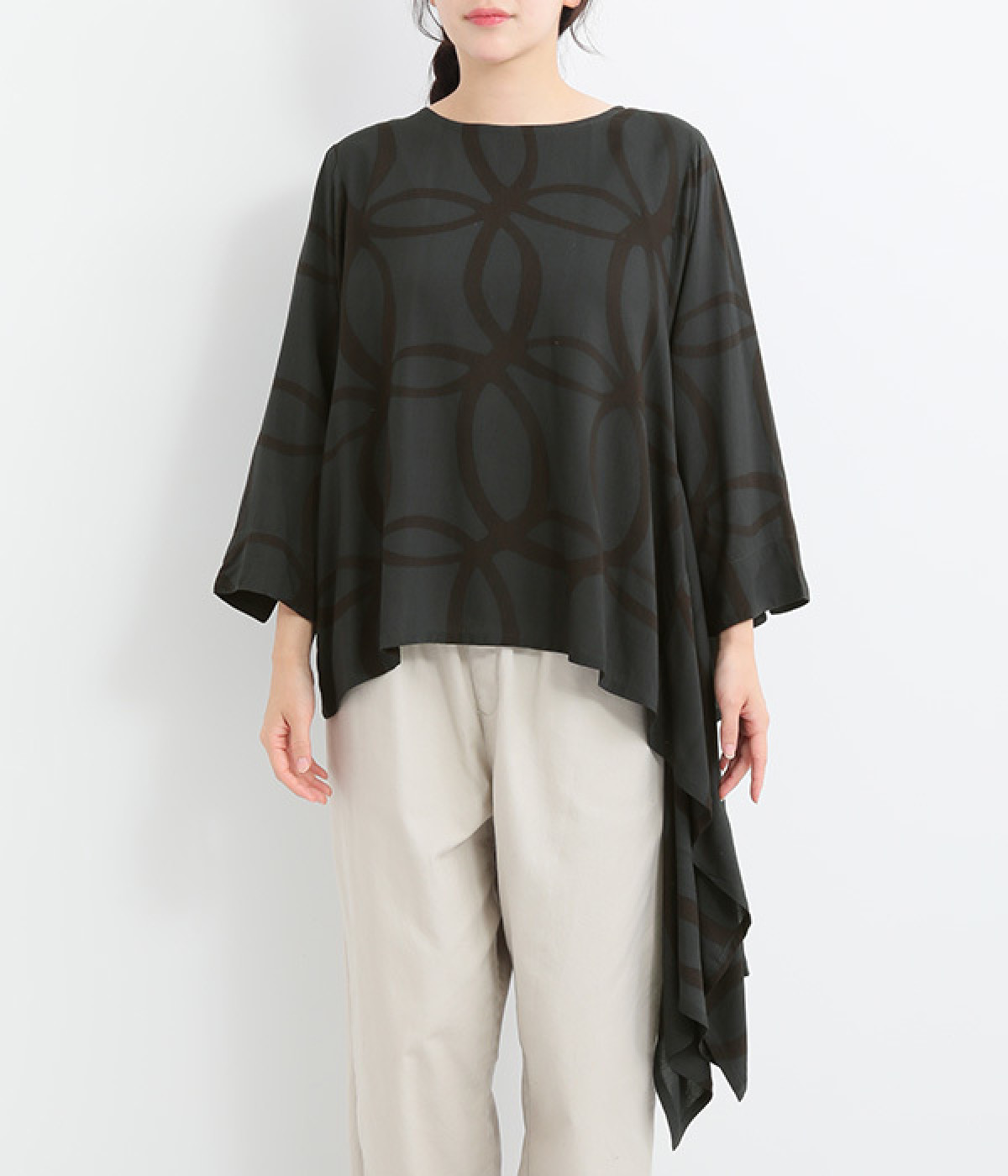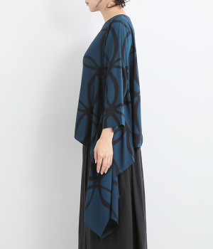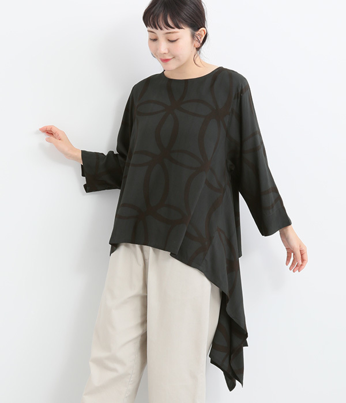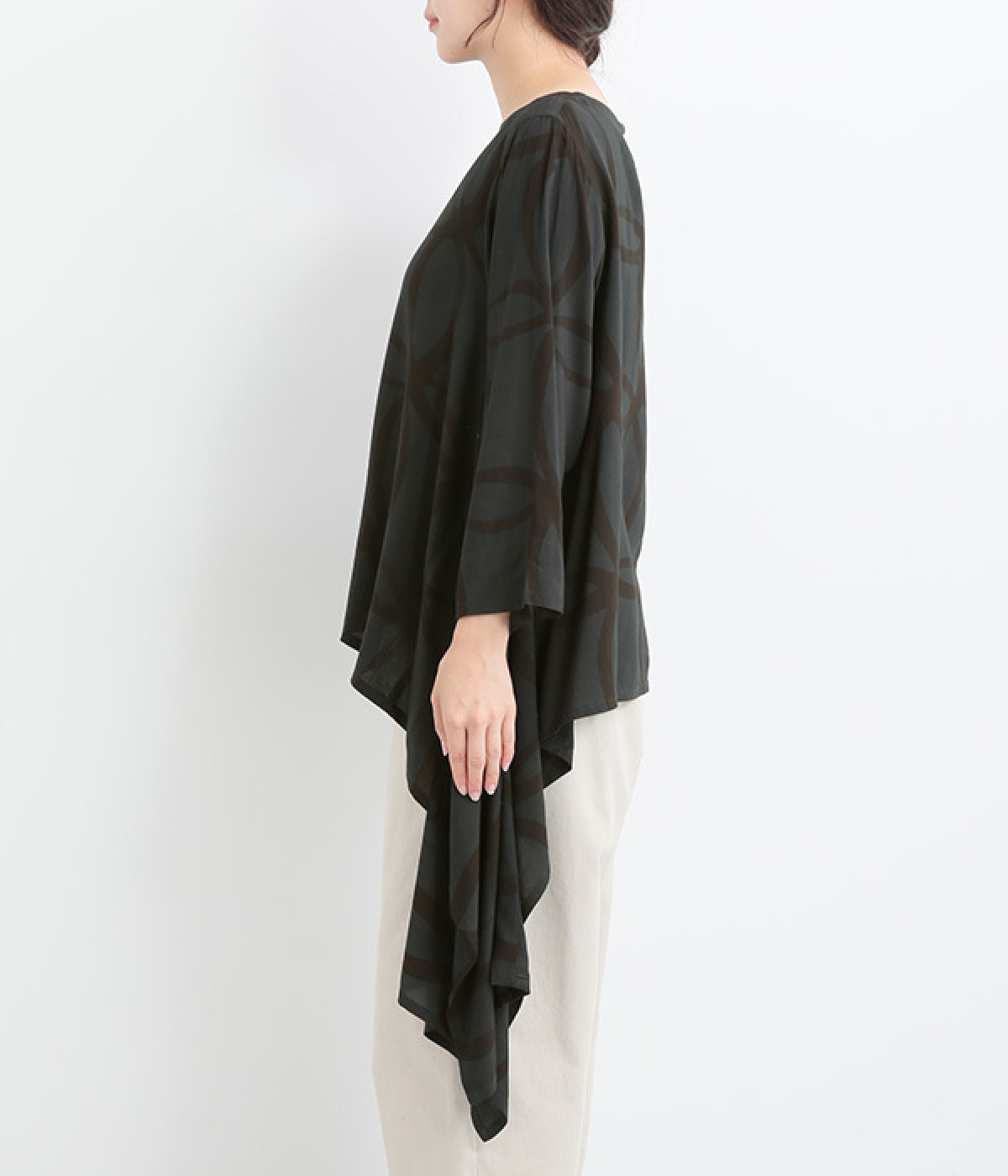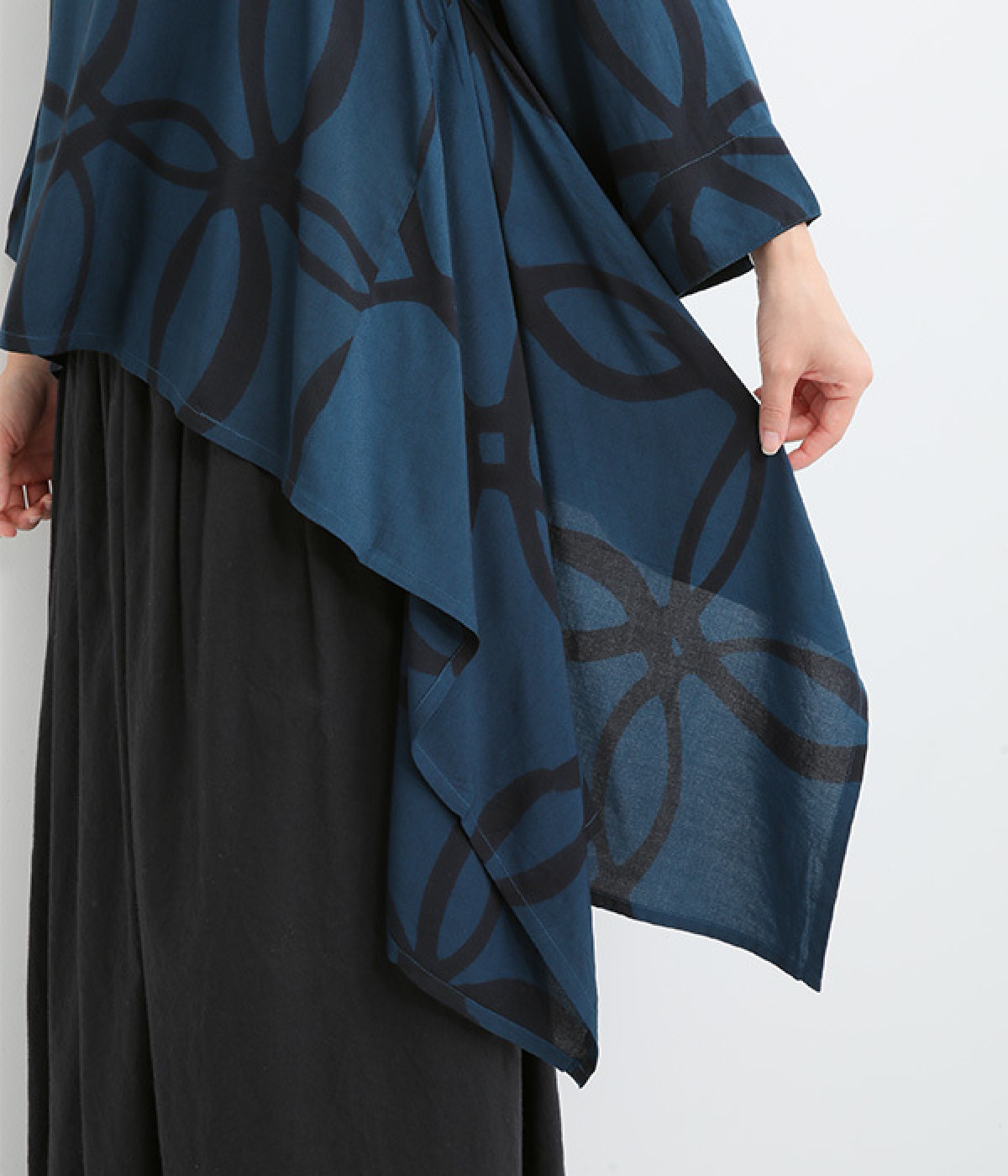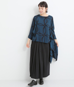 動くたびに揺れ動くアシンメトリーな裾ラインが優雅