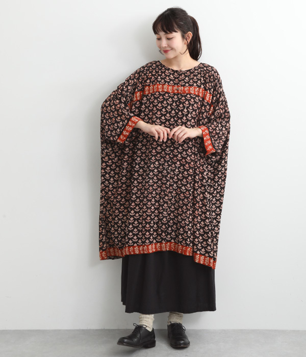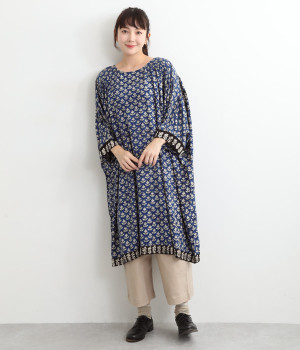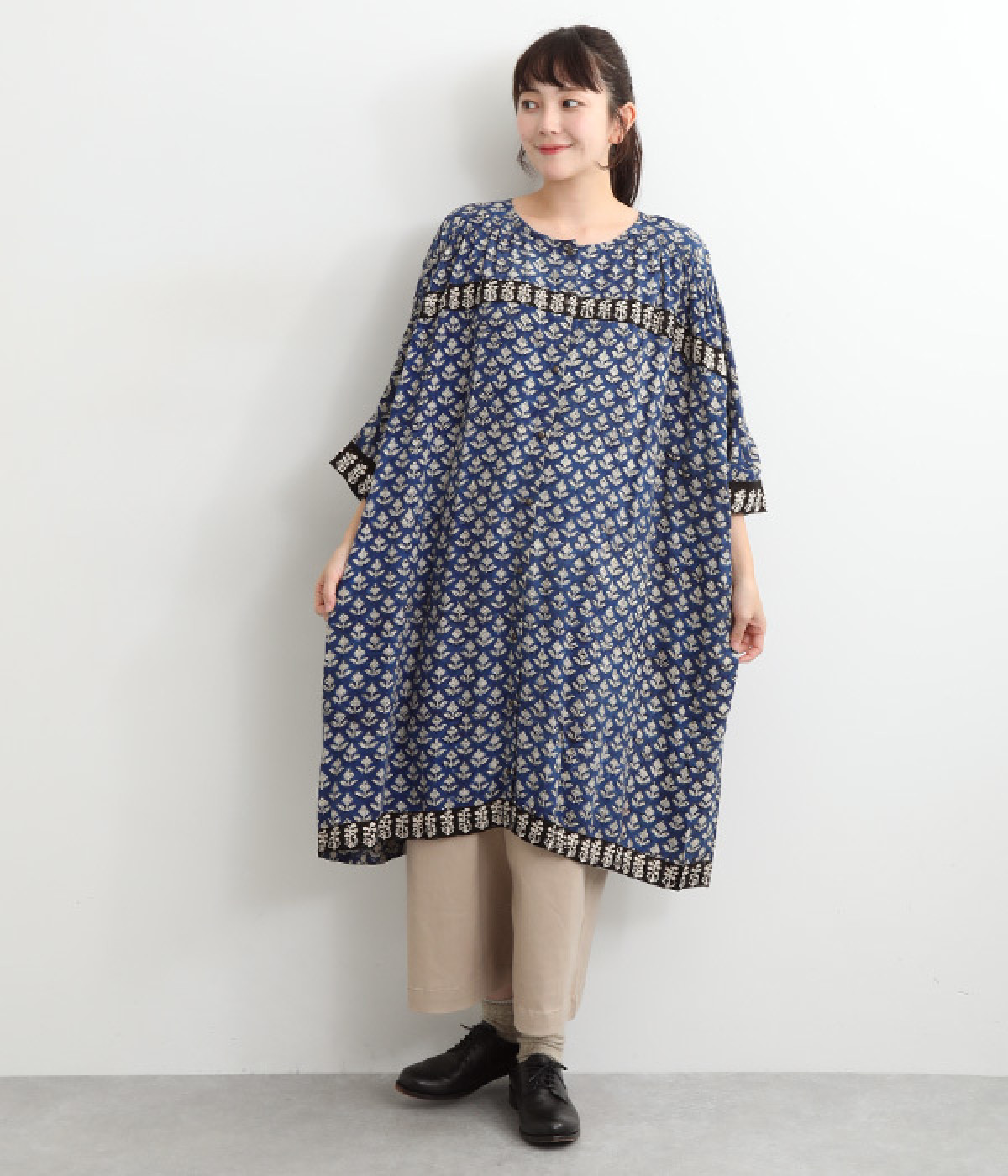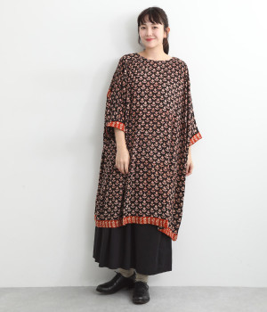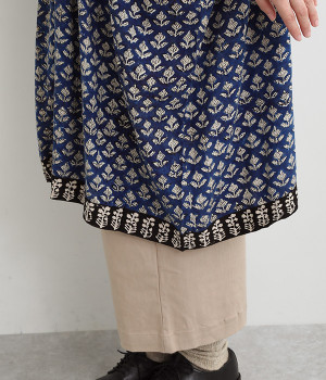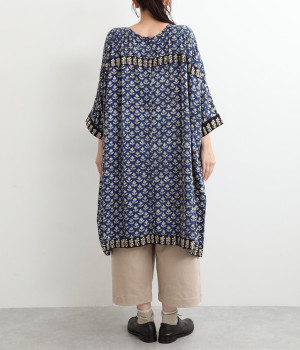 袖口と裾、胸元に別柄をあしらっておしゃれ度アップ