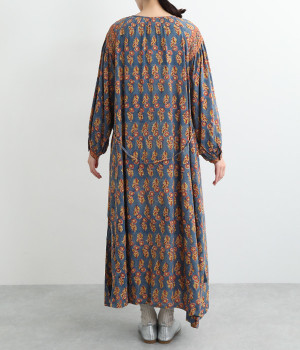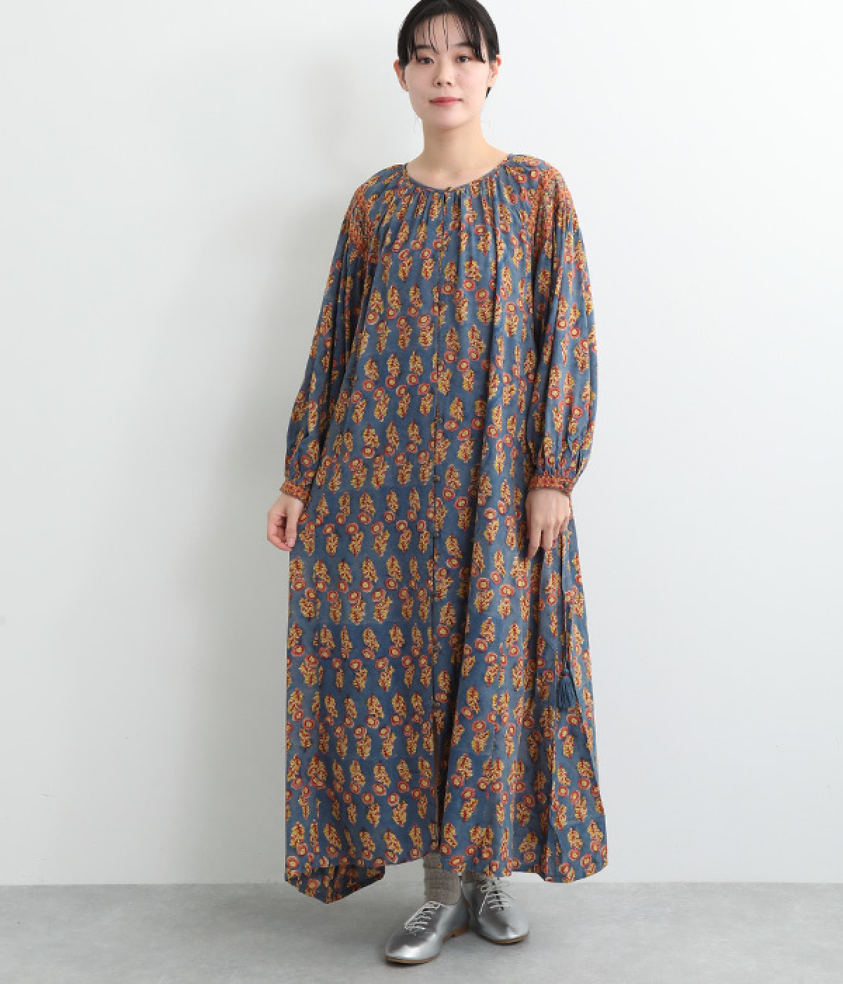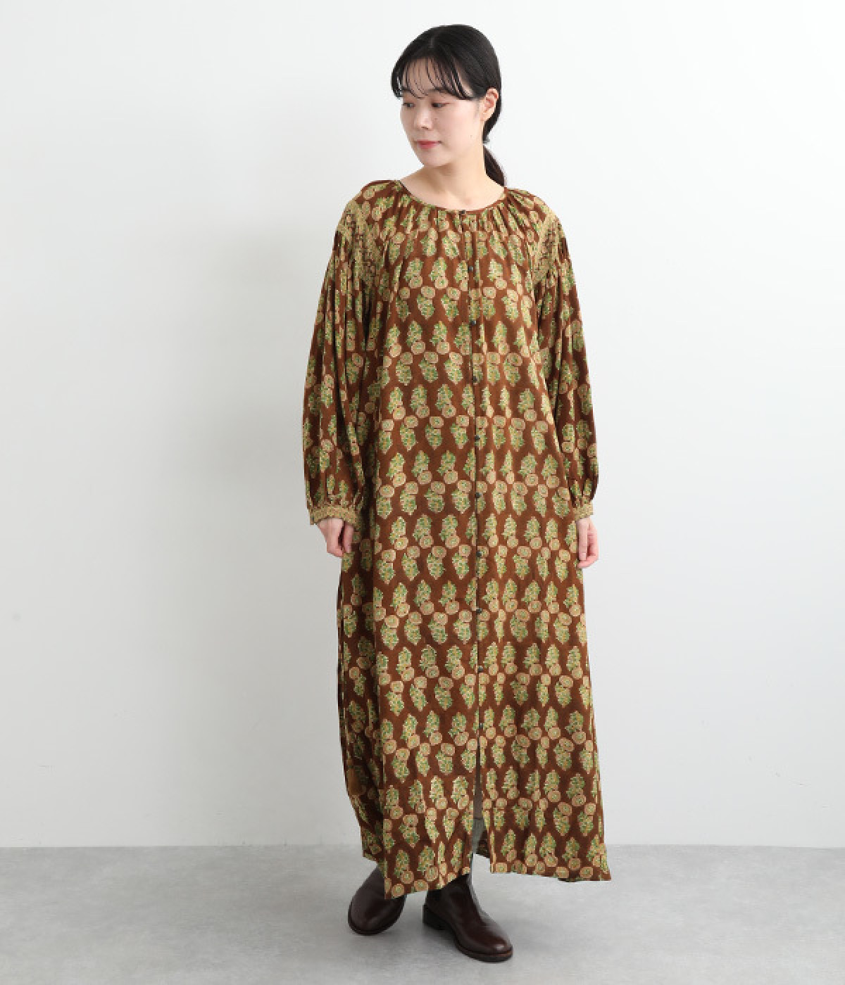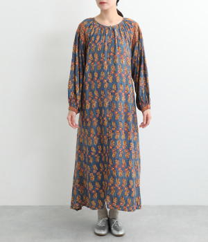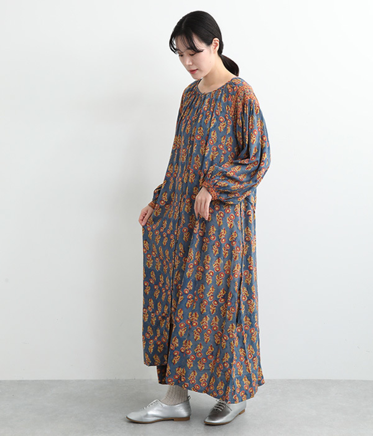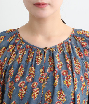 ネックラインにギャザーを入れ、ゆったりとしたシルエットに