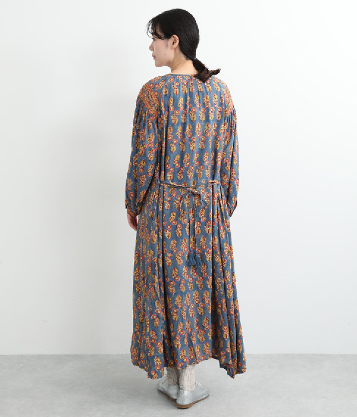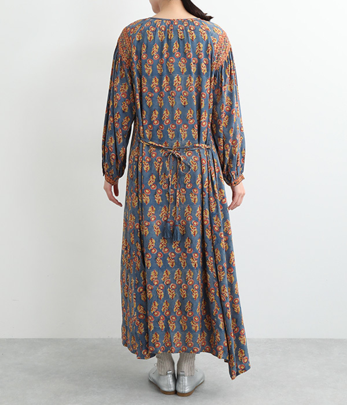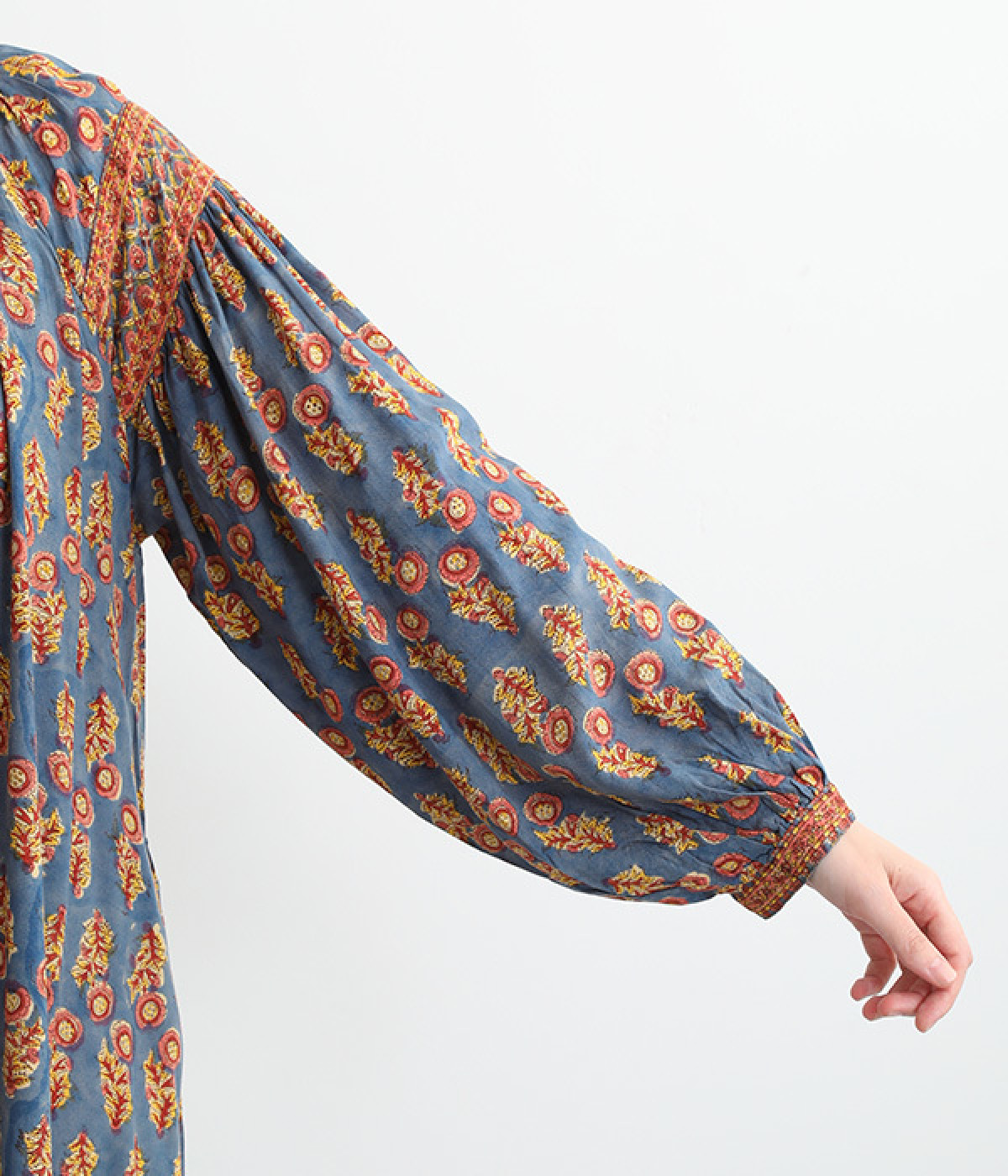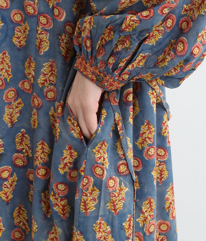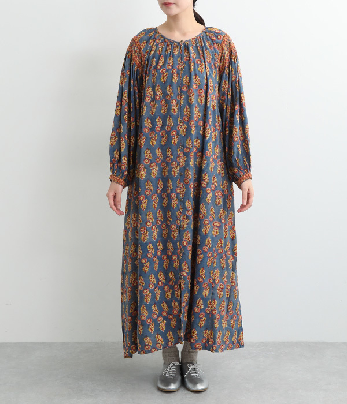 ネックラインにギャザーを入れ、ゆったりとしたシルエットに