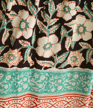 軽やかで涼しげなレーヨン素材。染色には、藍やターメリックといった草木を由来とする天然染料を主に使用。天然染料ならではの素朴な色合いが味わえます。