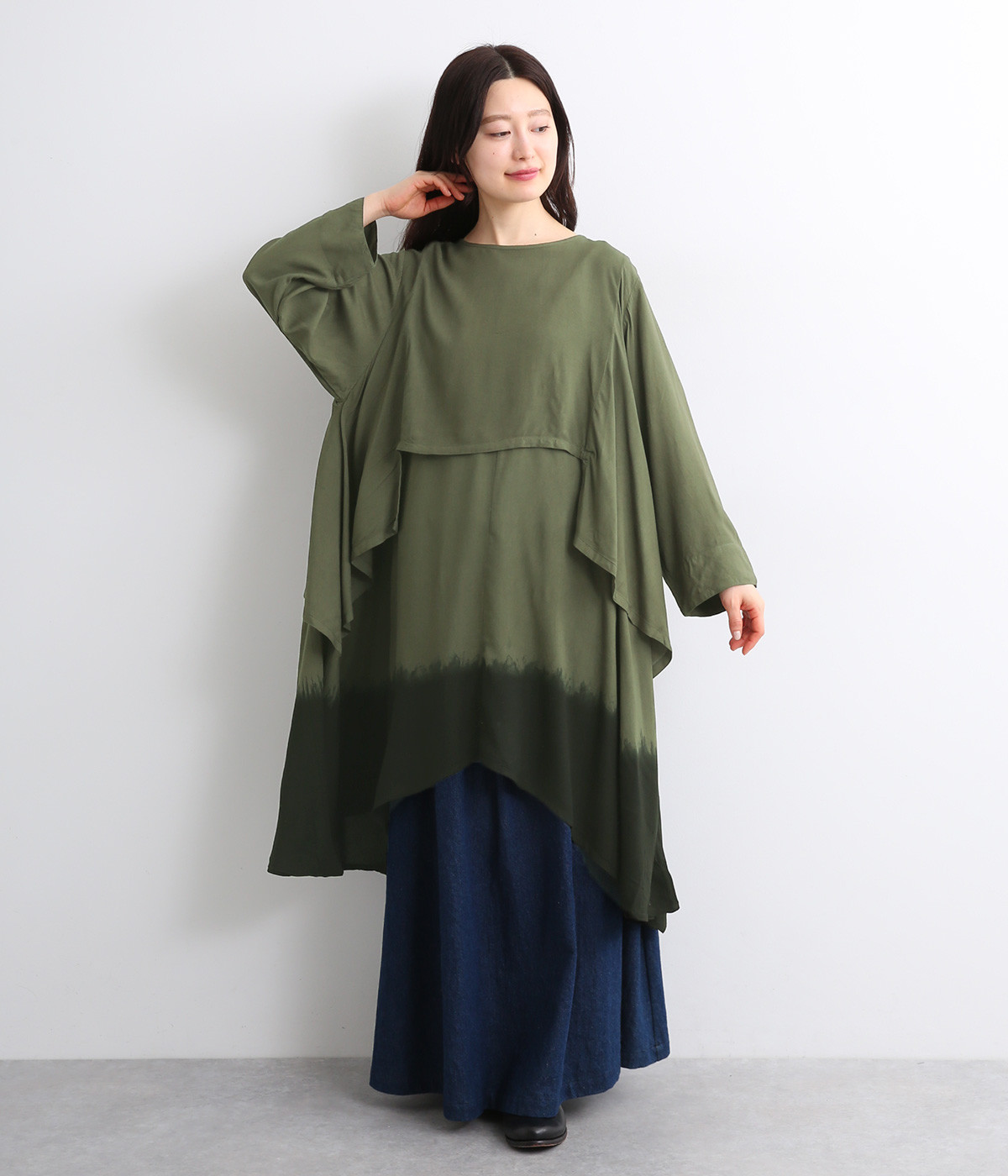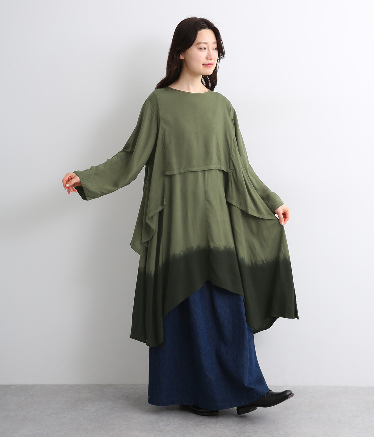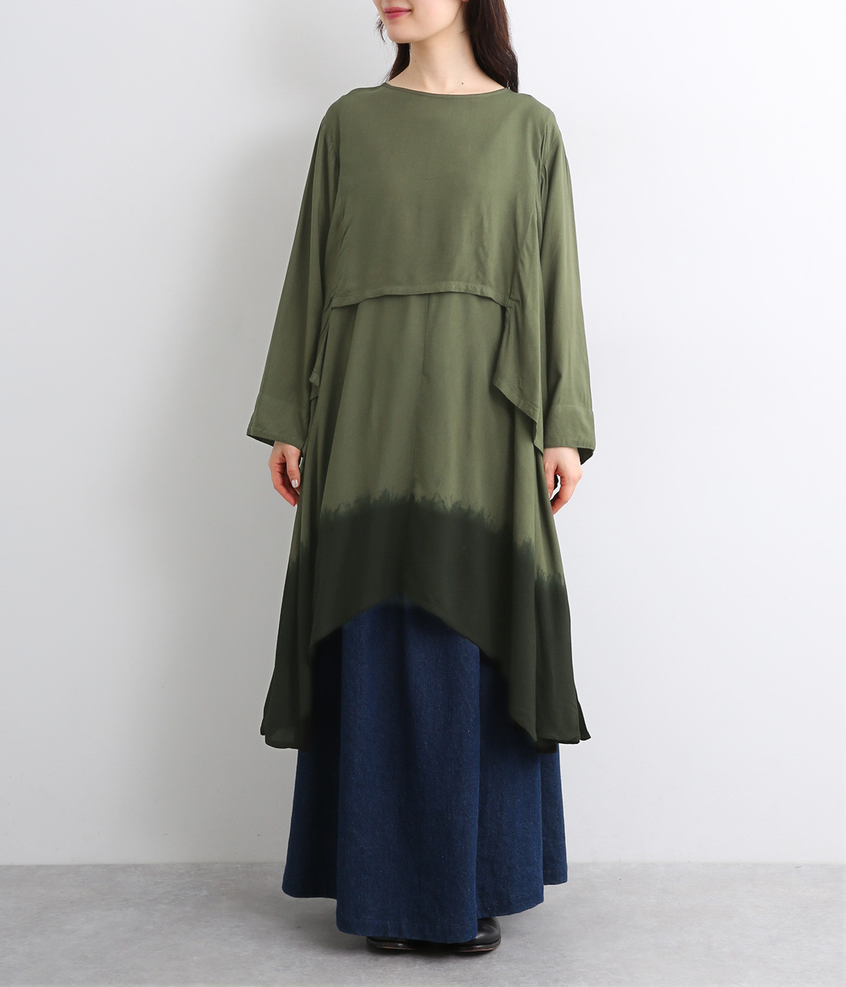 スクエアヘム&ラウンドヘムのイレギュラー裾のレイヤード