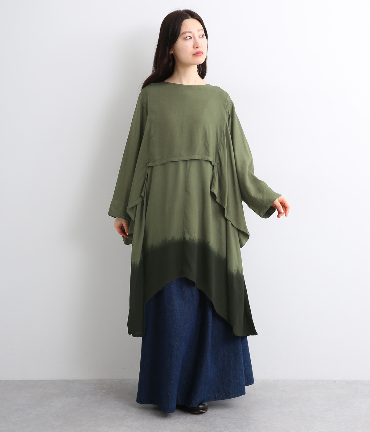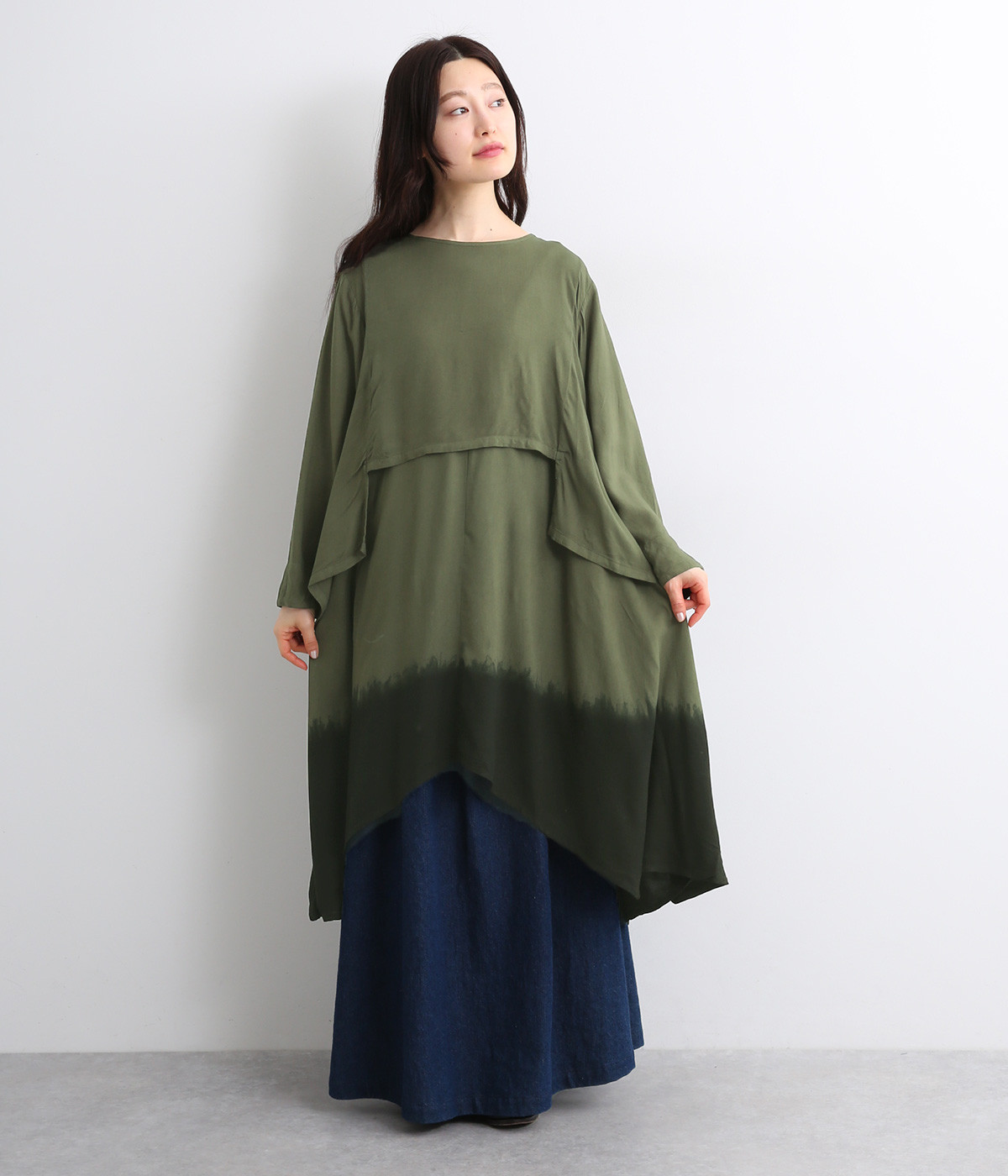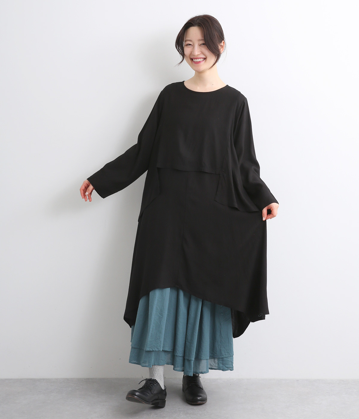 スクエアヘム&ラウンドヘムのイレギュラー裾のレイヤード