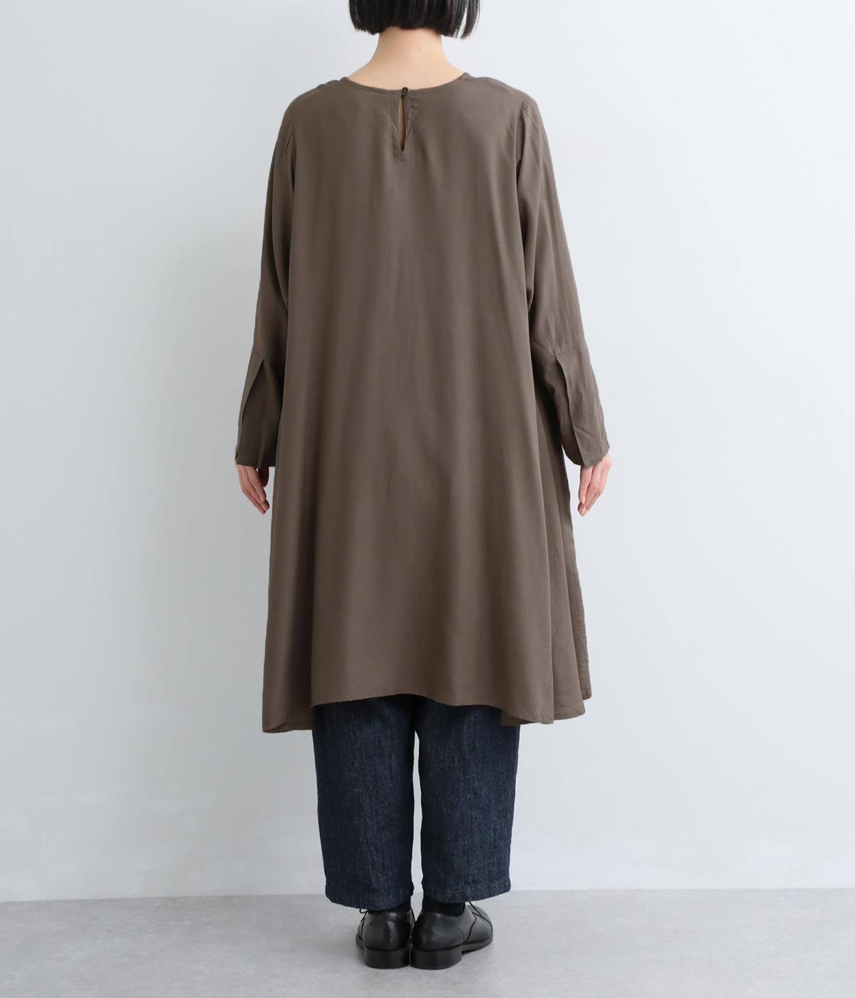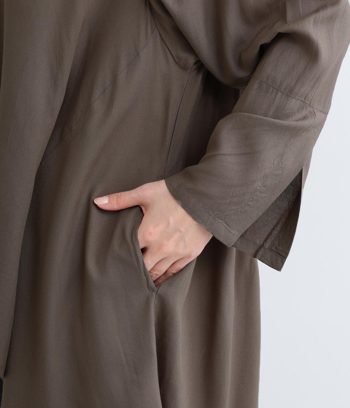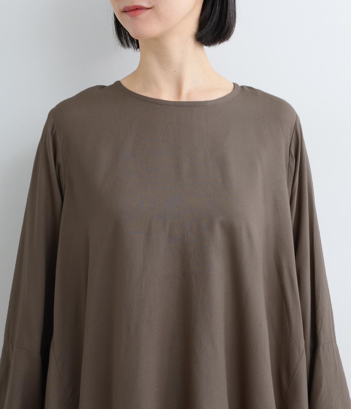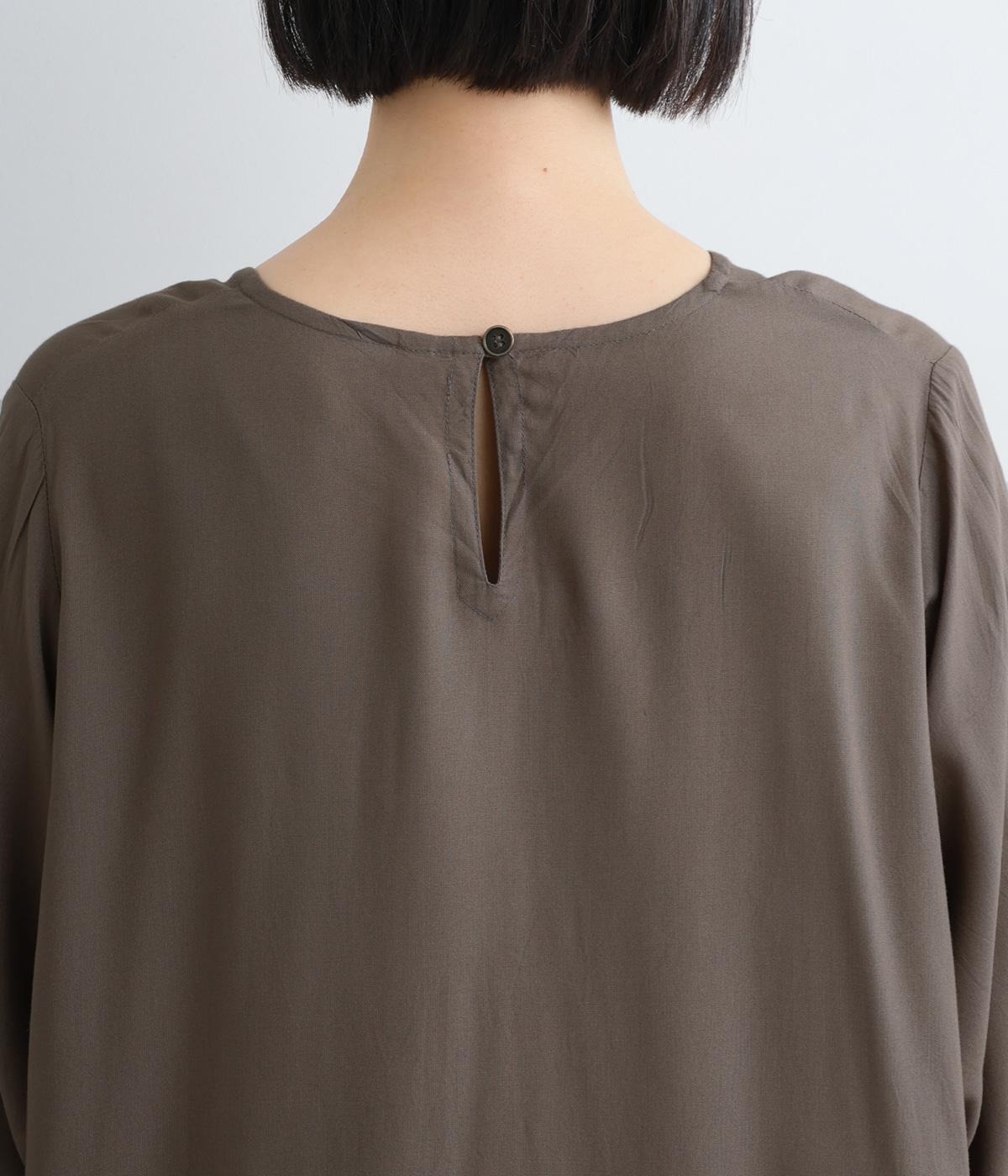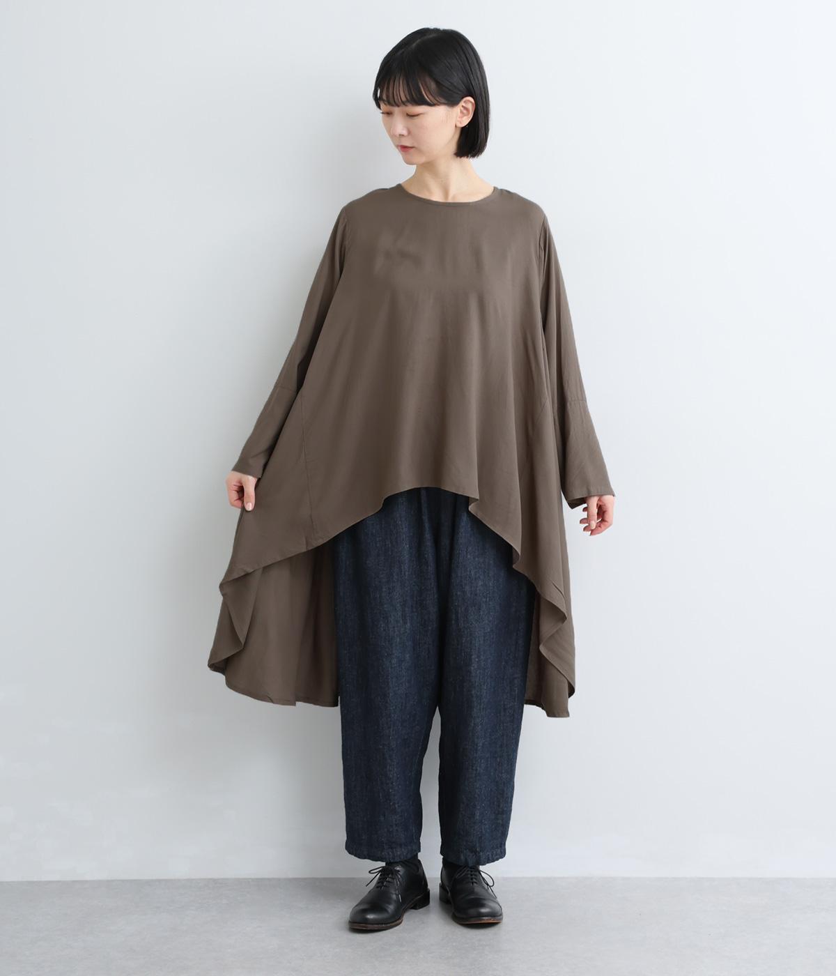 なめらかなとろみのレーヨン生地を使用しました。やわらかい肌なじみで心地よい着用感です。軽やかで、季節を通して着られる素材感です。