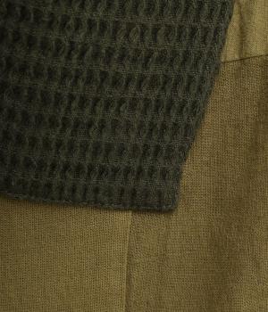やわらかなコットン素材を使用。通気性があり、サラリと快適に着こなせます。ポケットは大きめの編み方がユニークな素材。ほっとした気持ちにさせてくれる、そんな心地よさが特徴の素材感です。