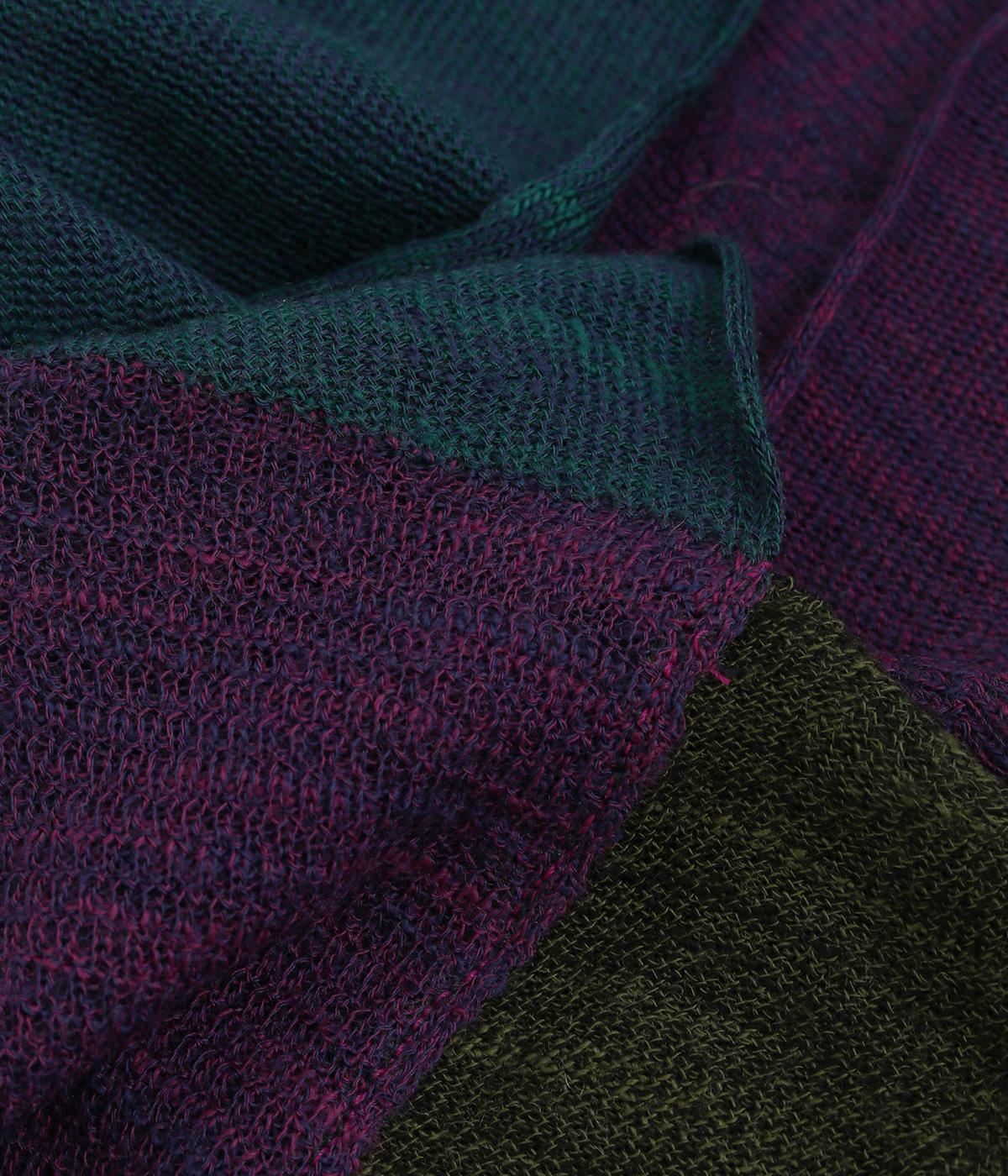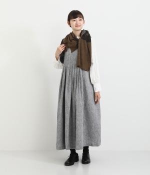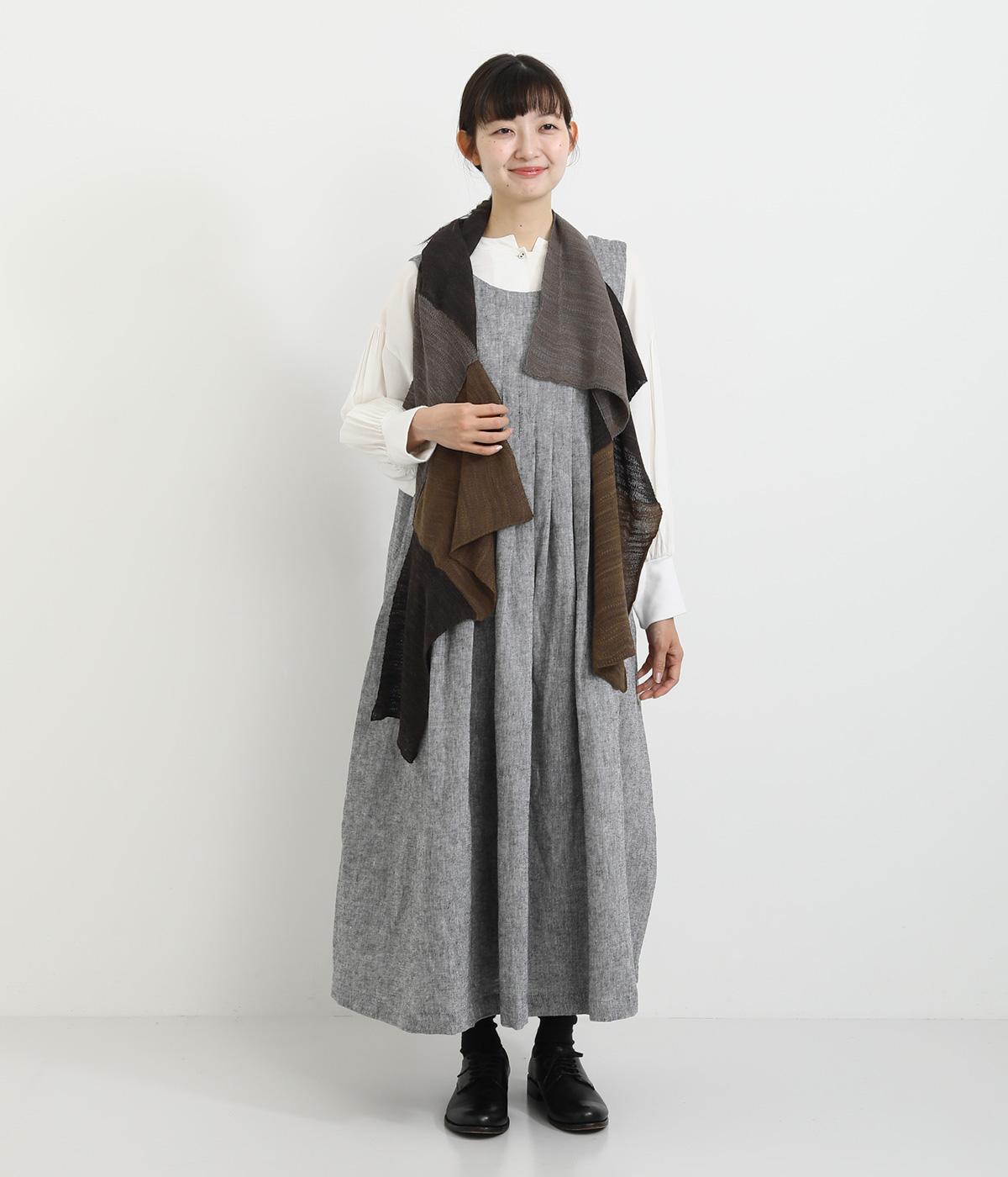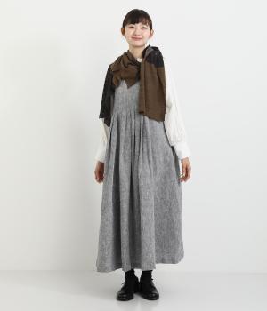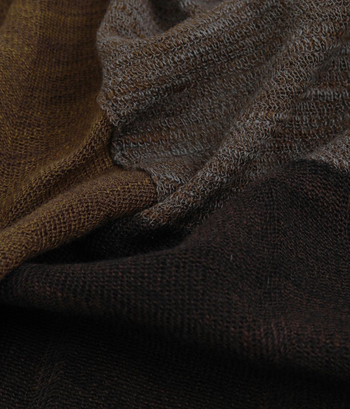 透け感のあるニット生地でストールを仕立てました。ドライな質感でナチュラルな風合いが魅力です。ちくちく感じにくく、首に巻いても肩から羽織ってもストレス感のない肌ざわりです。