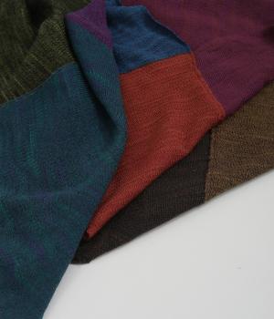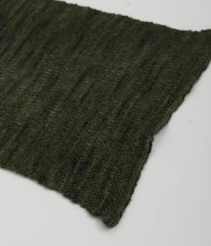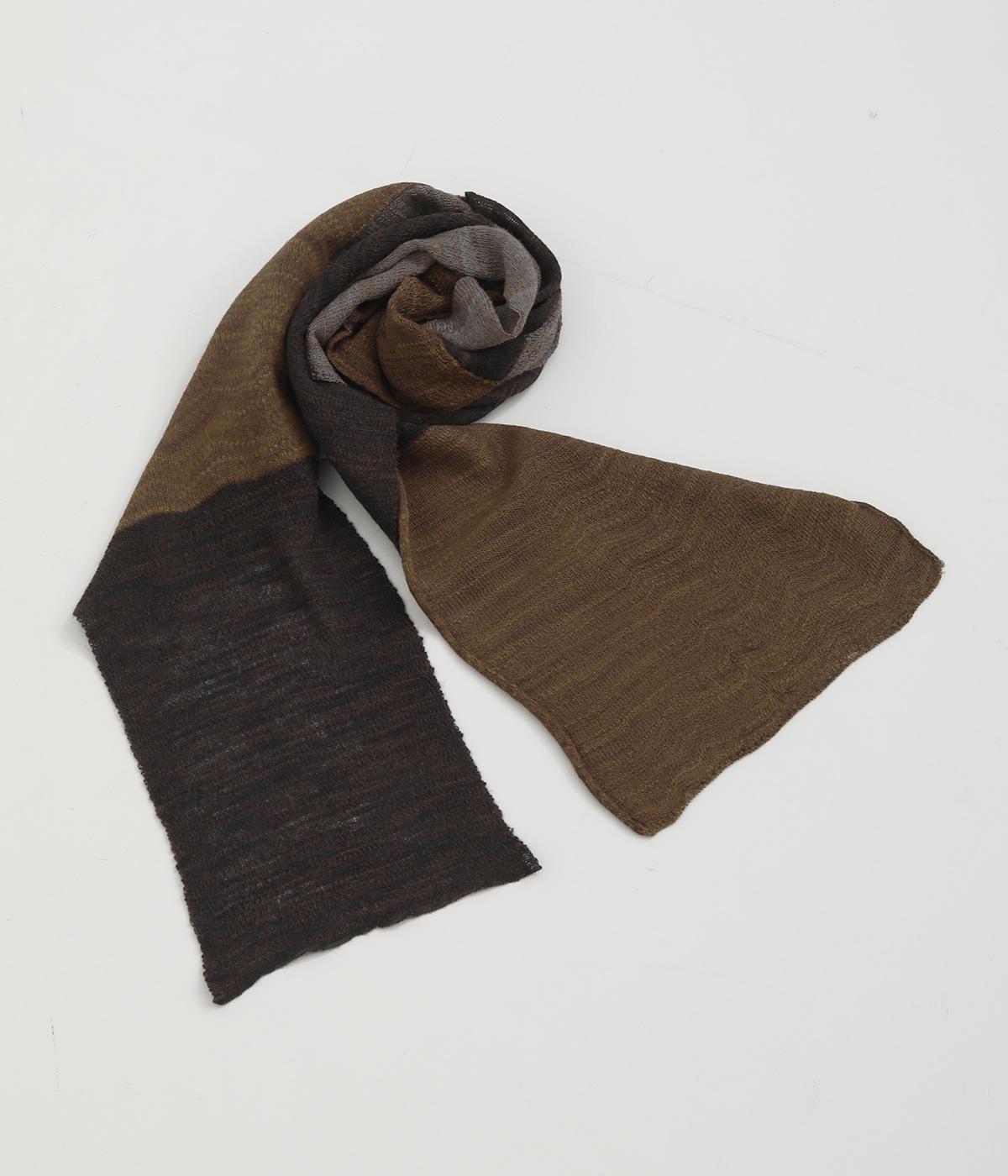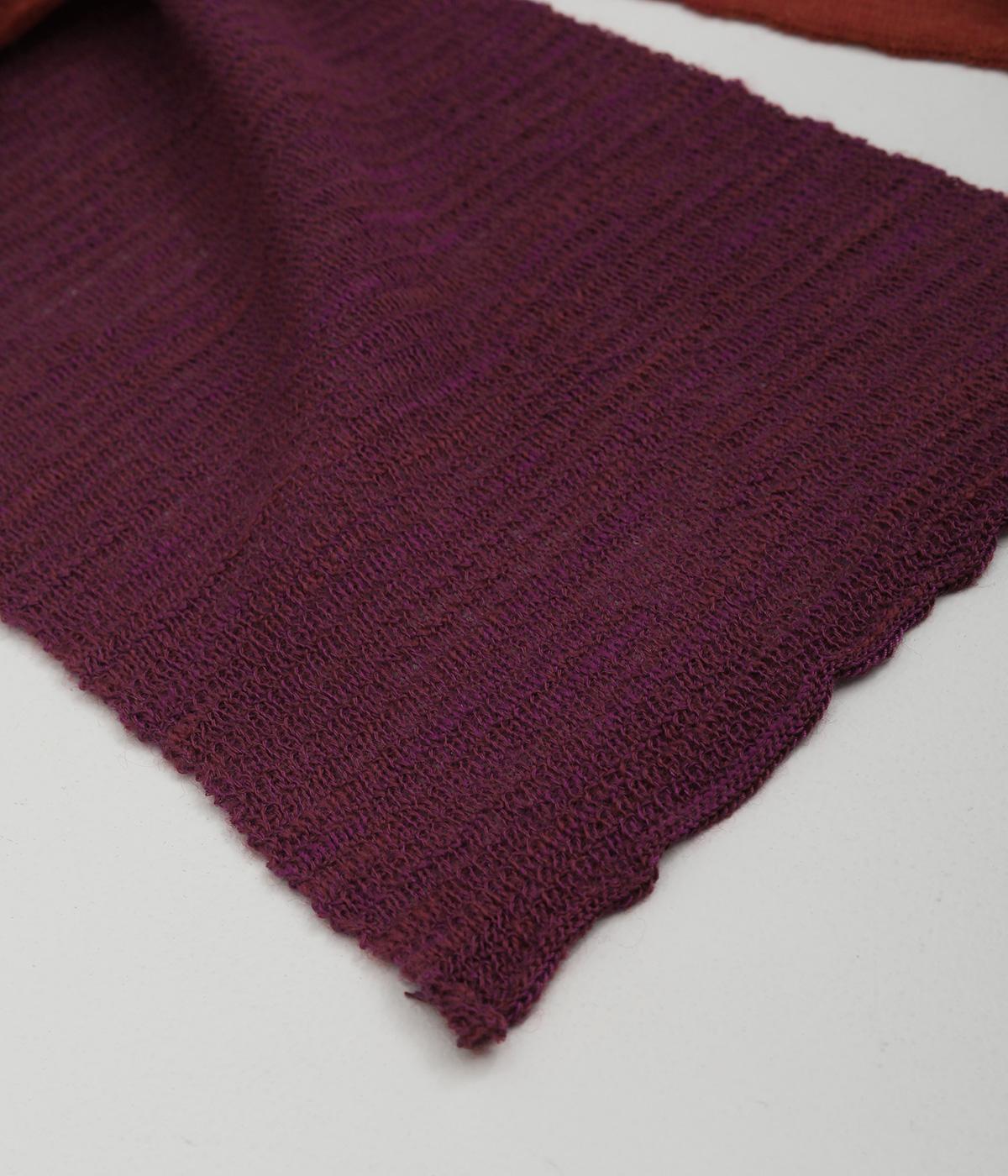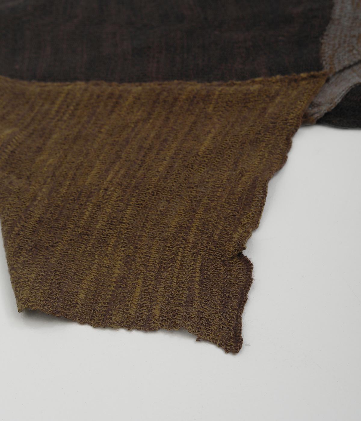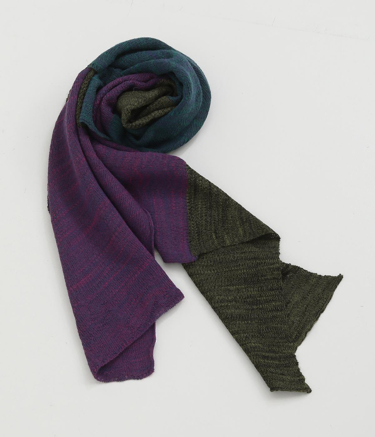透け感のあるニット生地でストールを仕立てました。ドライな質感でナチュラルな風合いが魅力です。ちくちく感じにくく、首に巻いても肩から羽織ってもストレス感のない肌ざわりです。