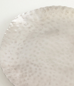 高級感のある槌目(つちめ)模様が素敵なステンレス素材の中サイズプレートです。1点1点ハンマーでたたいて打ち出した槌目とよばれる凹凸のある表情が美しく、そこにあるだけで存在感のあるとっておきのトレイ。デザートやフルーツを盛り付けたり、取り分け皿としてもちょうどいいサイズ。軽さがあり、重ねられるデザインで使いやすさも◎。