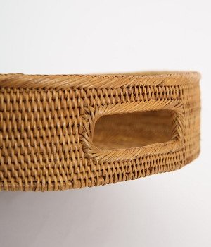 アタで丁寧に編み込まれたラウンドトレイです。取っ手がついて持ち運びやすく掴みやすく、細かく編みこまれたシンプルで上品なデザインになっています。食事を運びそのままランチョマットとして使ったり、洗い終わった食器のちょっとした水切りトレイにしてもキッチンが一気にお洒落になります。いつもの食卓にリゾートライクな雰囲気を演出してくれたり、新聞や本を収納してリビングをナチュラルにも見せたりと使い方も様々。