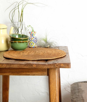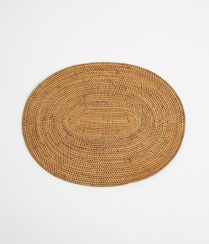 アタの蔓を使って編まれた楕円タイプのランチョンマット。特徴的な飴色をしたアタは、和室やナチュラルテイストのお部屋によく合います。飴色の艶は、編んだ後にココナッツの実を使って燻すことによりつけられたもの。この作業により湿気に強くなって防虫効果が加わり、高温多湿な気候でも長持ちするのが魅力です。