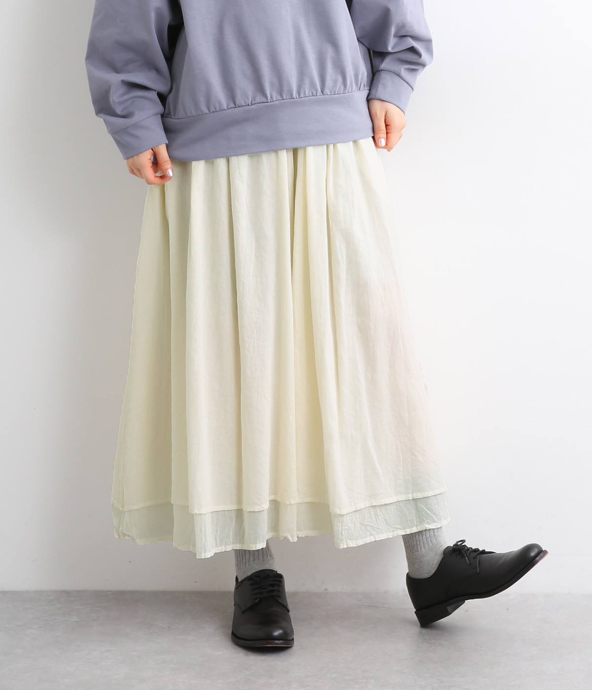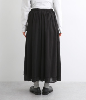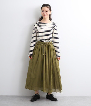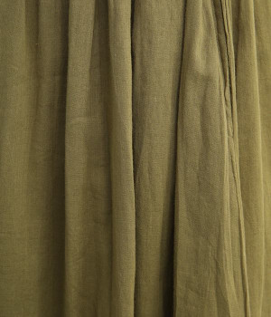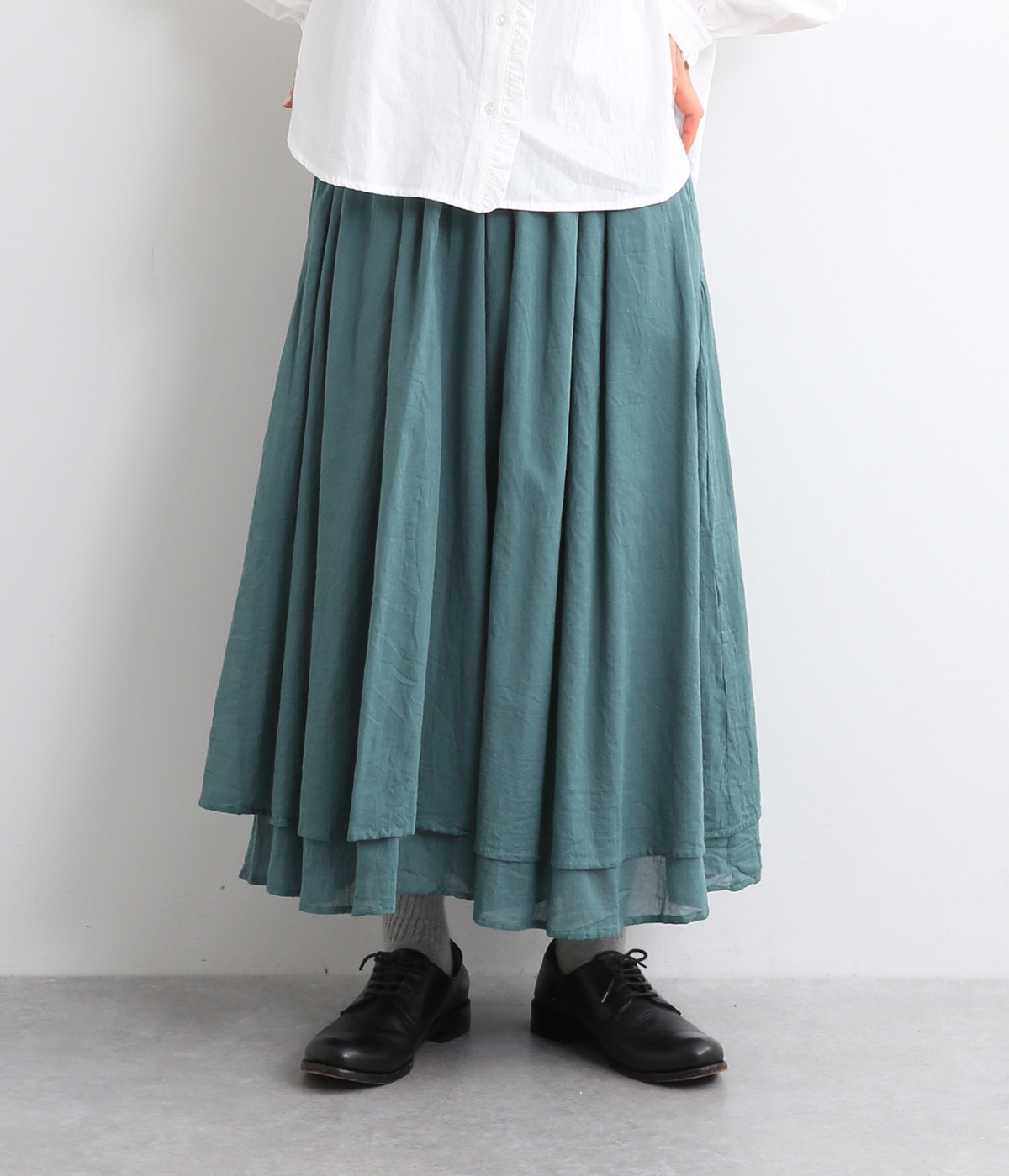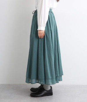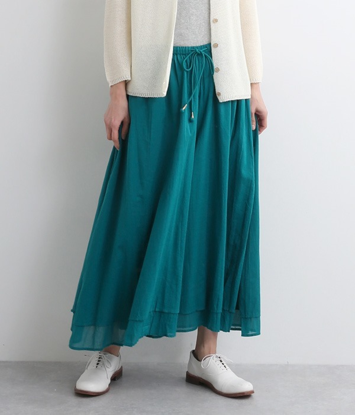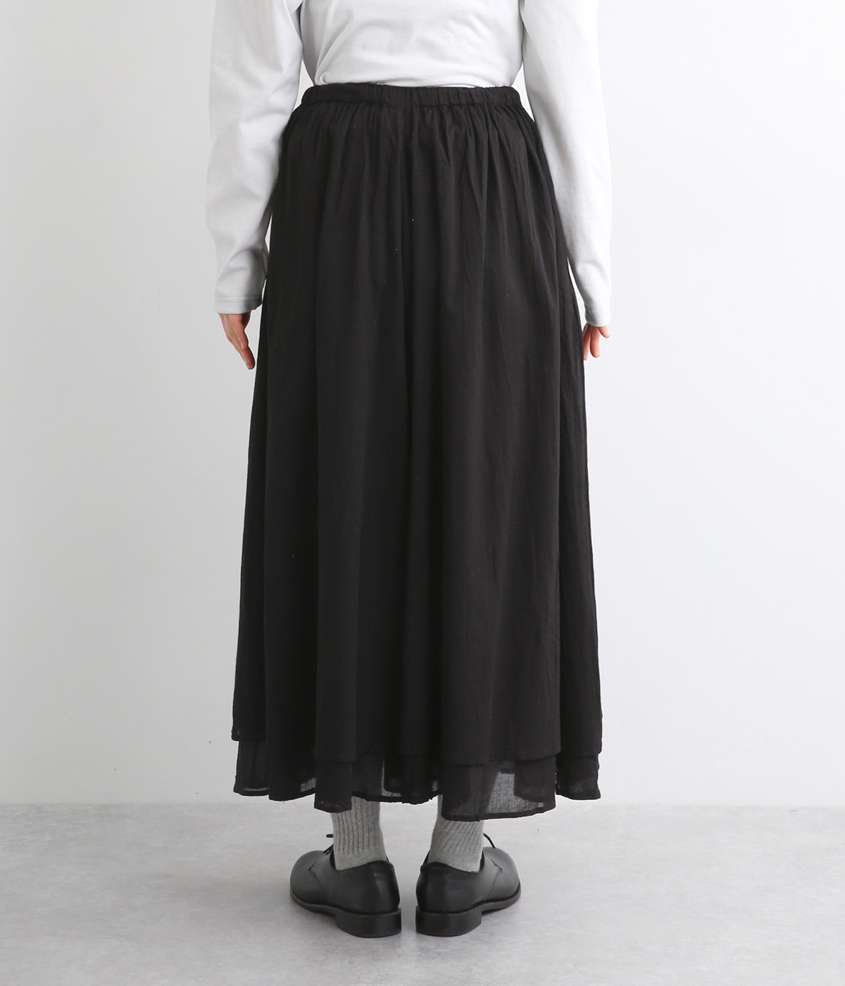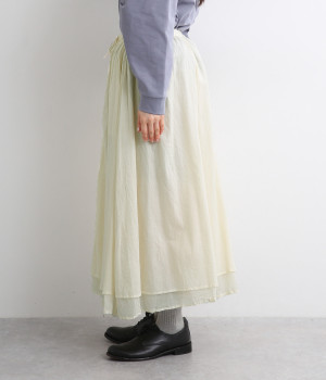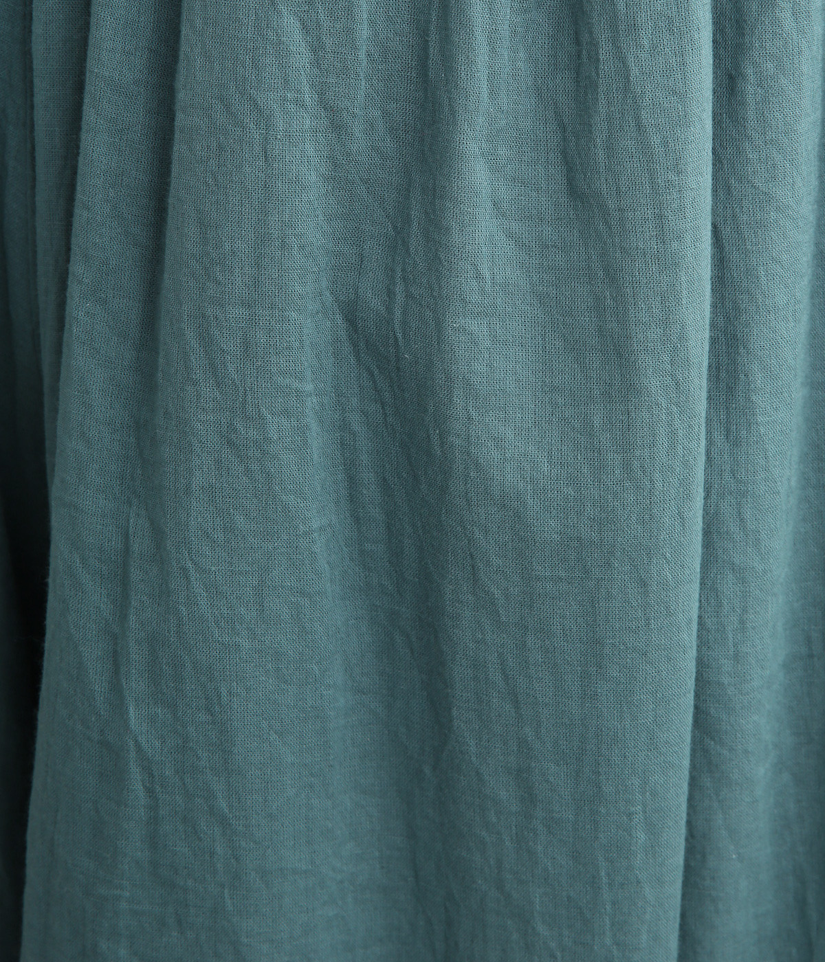 ふわっとした柔らかな風合いと、軽やかな肌触りが魅力のインド綿を使用したワイドギャザーパンツです。生地を二枚重ね合わせてレイヤードデザインに仕立てた、スカート見えするフレアなシルエットが特徴。ウエストまわりはゴムでコンパクトにフィットするラクなはき心地です。サイズの微調整もできる腰ひもの先端には金糸が巻かれており、ちょっぴりリッチなアクセントに。