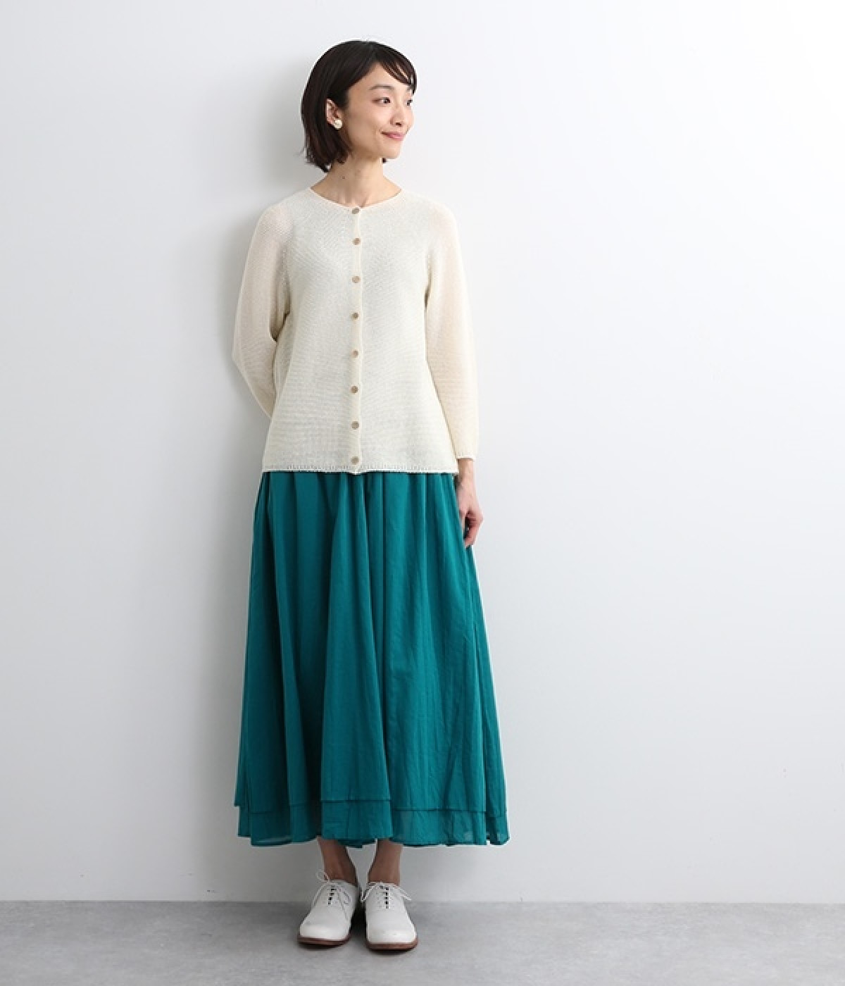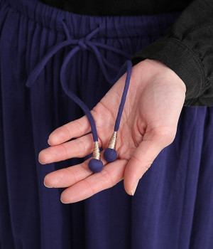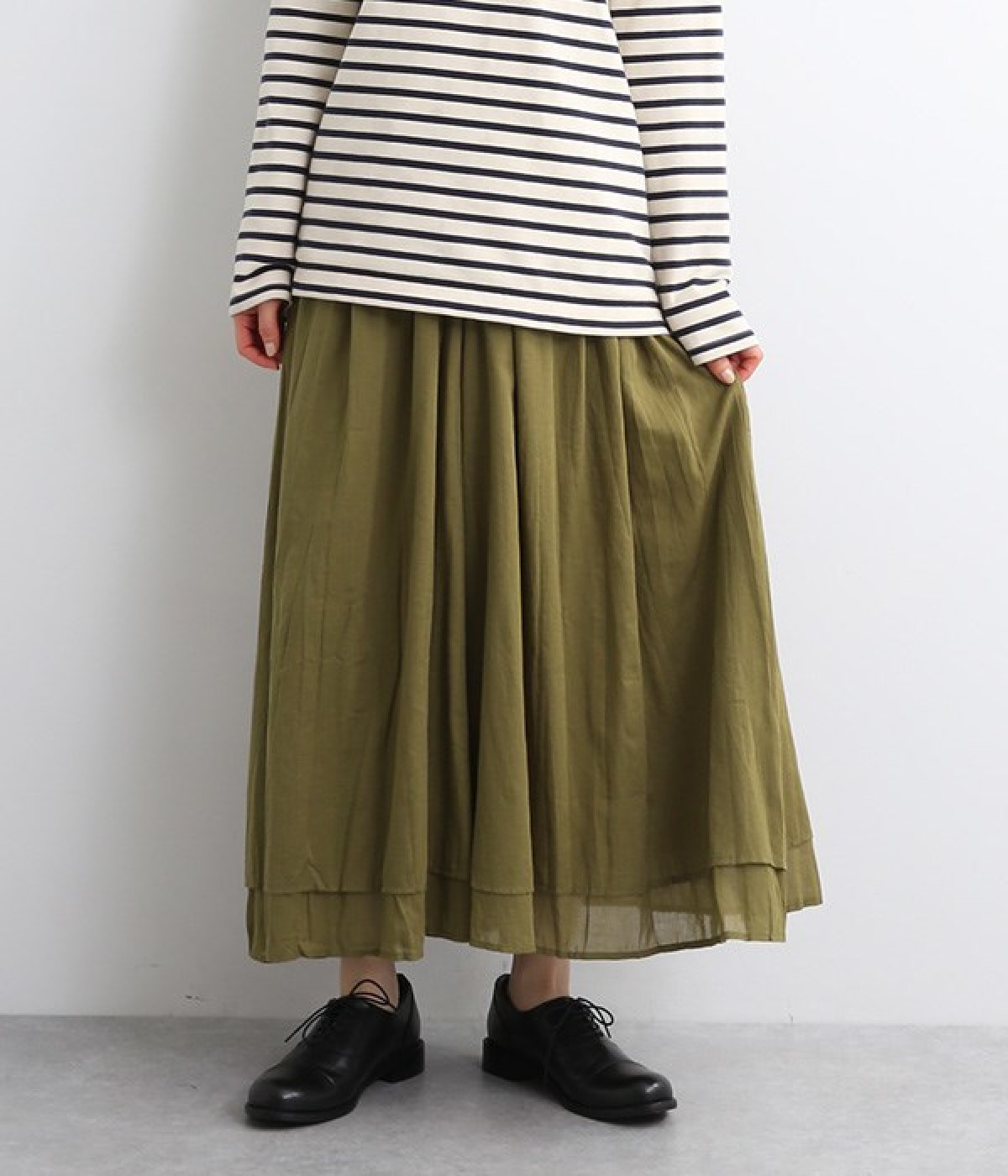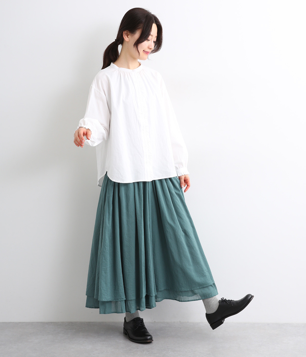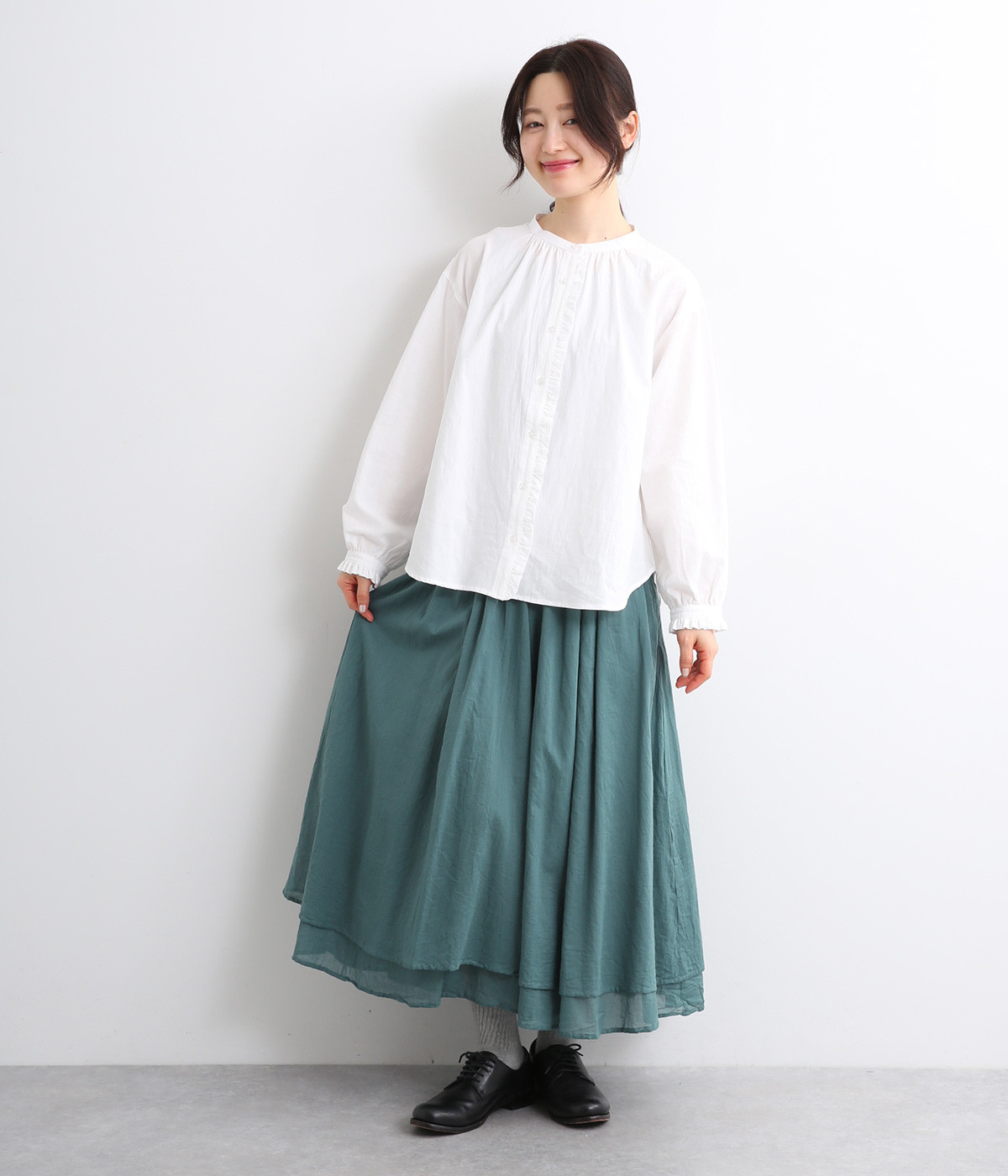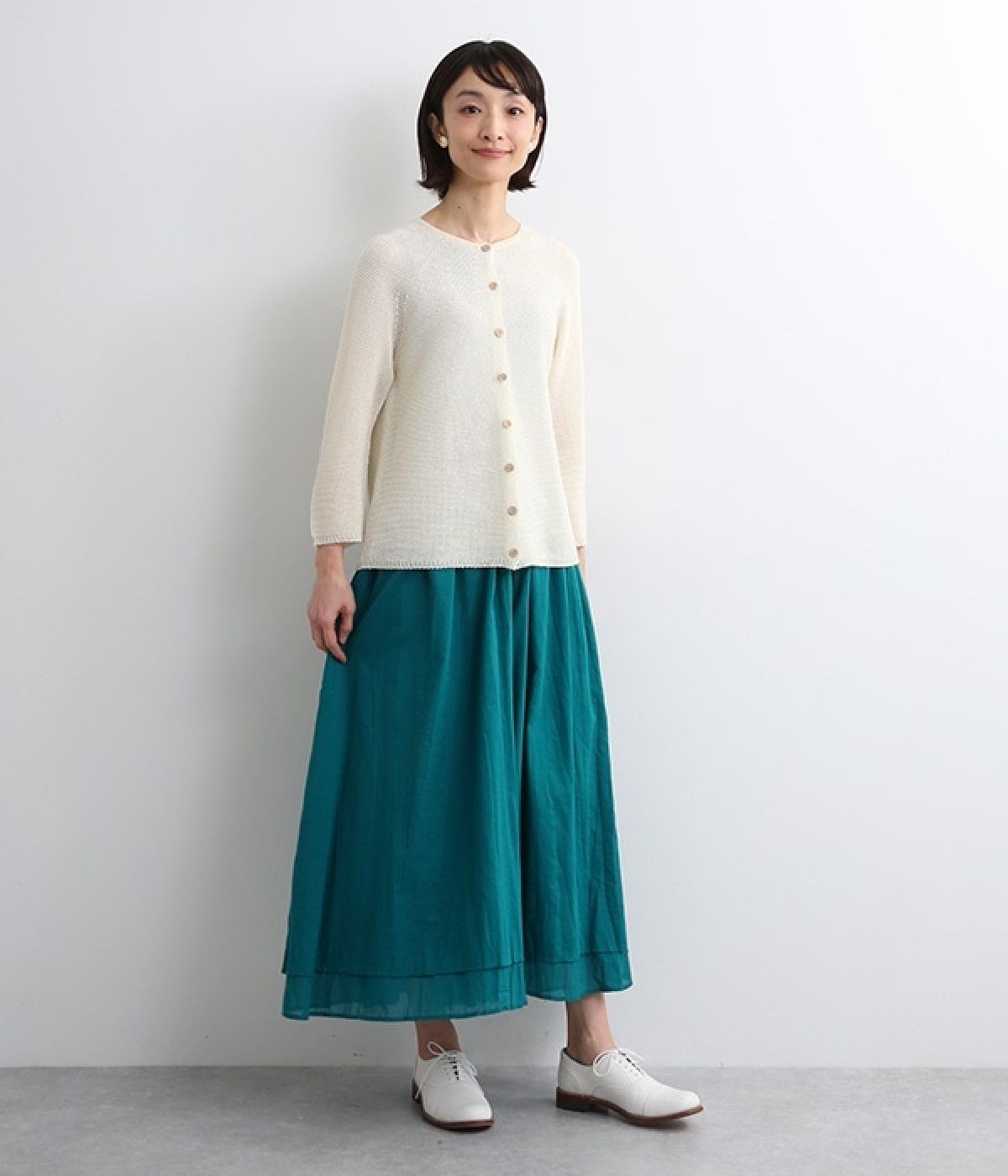 ふわっとした柔らかな風合いと、軽やかな肌触りが魅力のインド綿を使用したワイドギャザーパンツです。生地を二枚重ね合わせてレイヤードデザインに仕立てた、スカート見えするフレアなシルエットが特徴。ウエストまわりはゴムでコンパクトにフィットするラクなはき心地です。サイズの微調整もできる腰ひもの先端には金糸が巻かれており、ちょっぴりリッチなアクセントに。