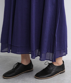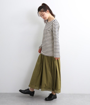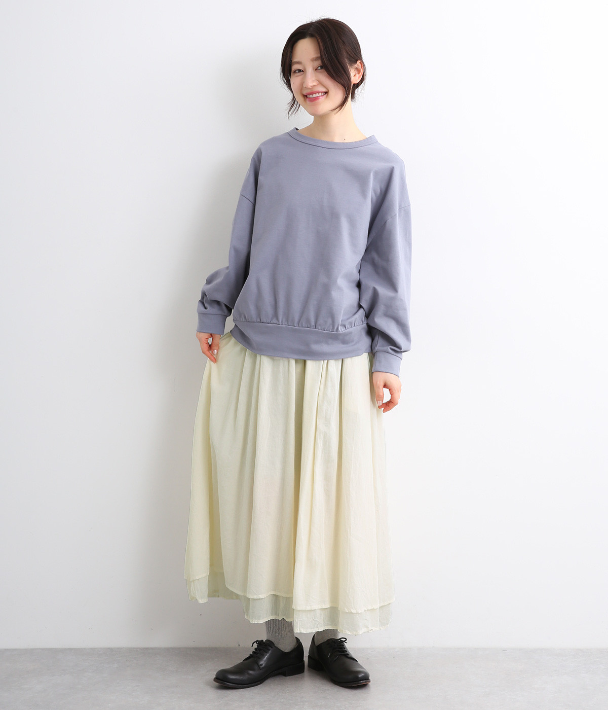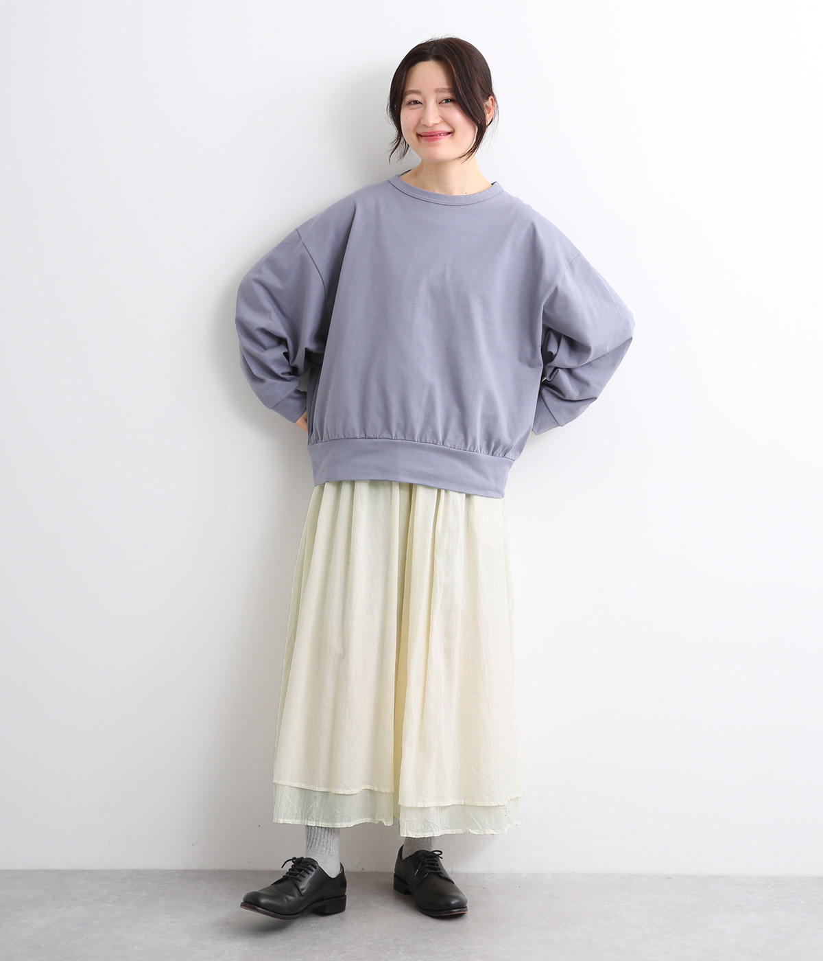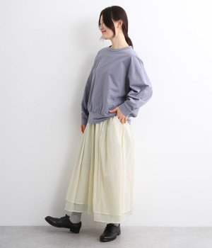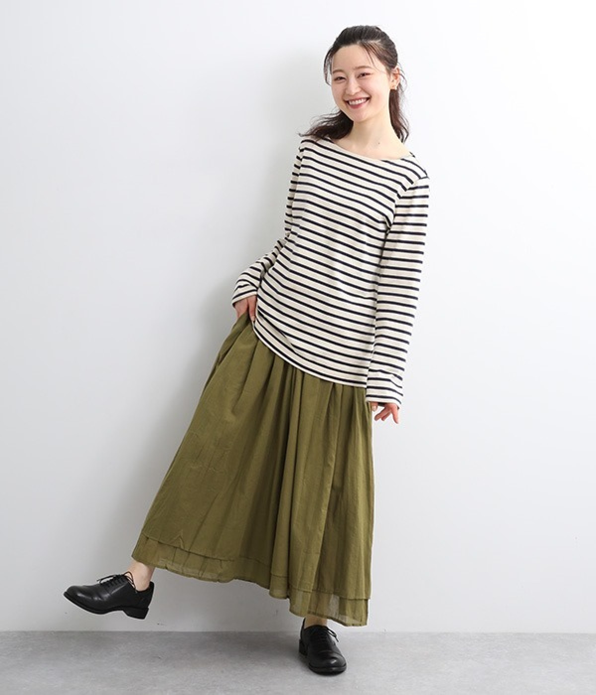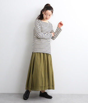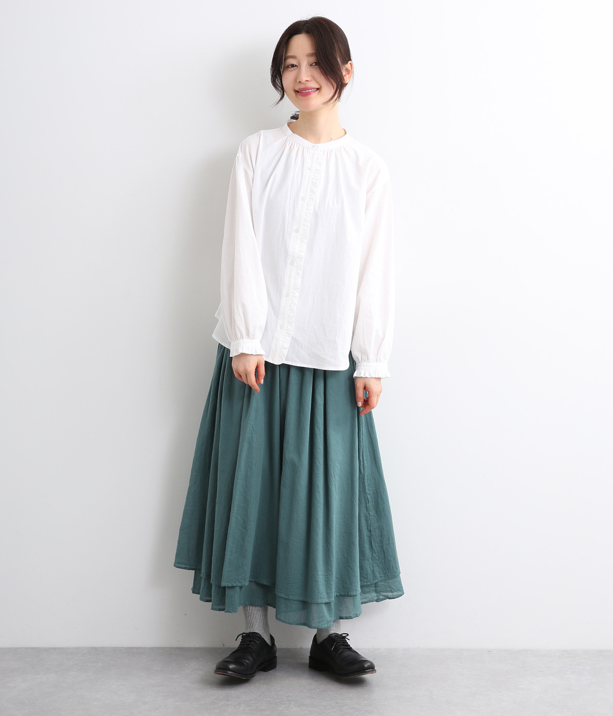 ふわっとした柔らかな風合いと、軽やかな肌触りが魅力のインド綿を使用したワイドギャザーパンツです。生地を二枚重ね合わせてレイヤードデザインに仕立てた、スカート見えするフレアなシルエットが特徴。ウエストまわりはゴムでコンパクトにフィットするラクなはき心地です。サイズの微調整もできる腰ひもの先端には金糸が巻かれており、ちょっぴりリッチなアクセントに。