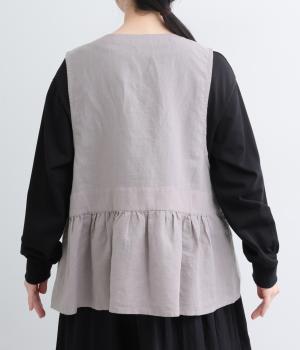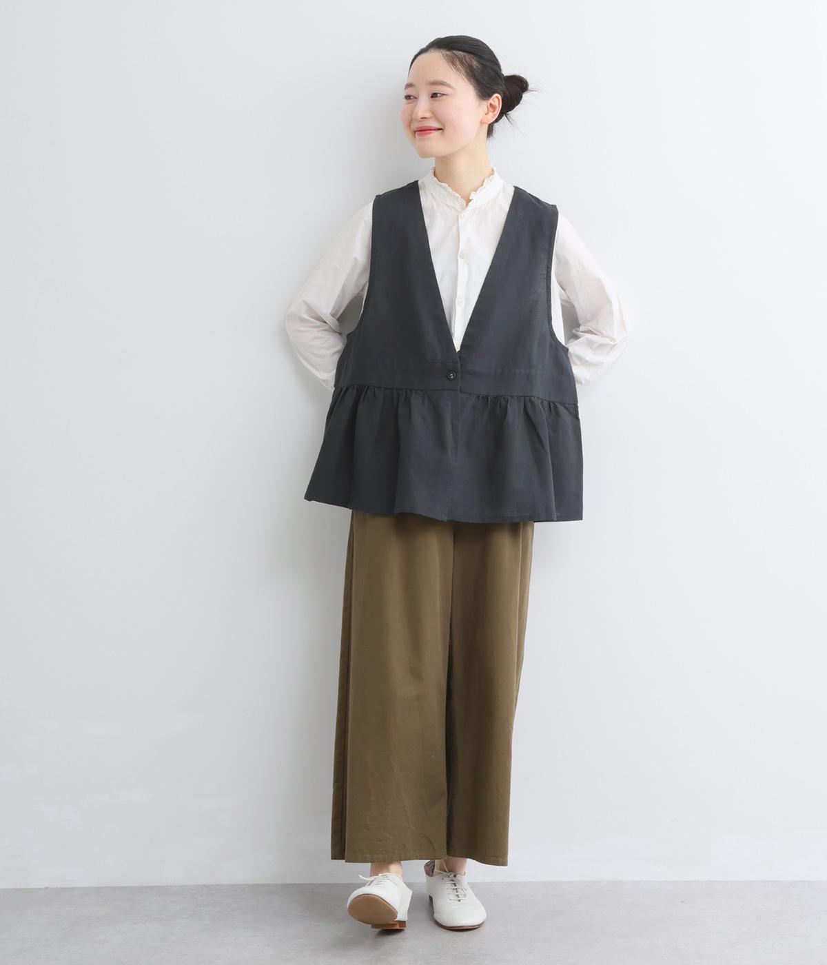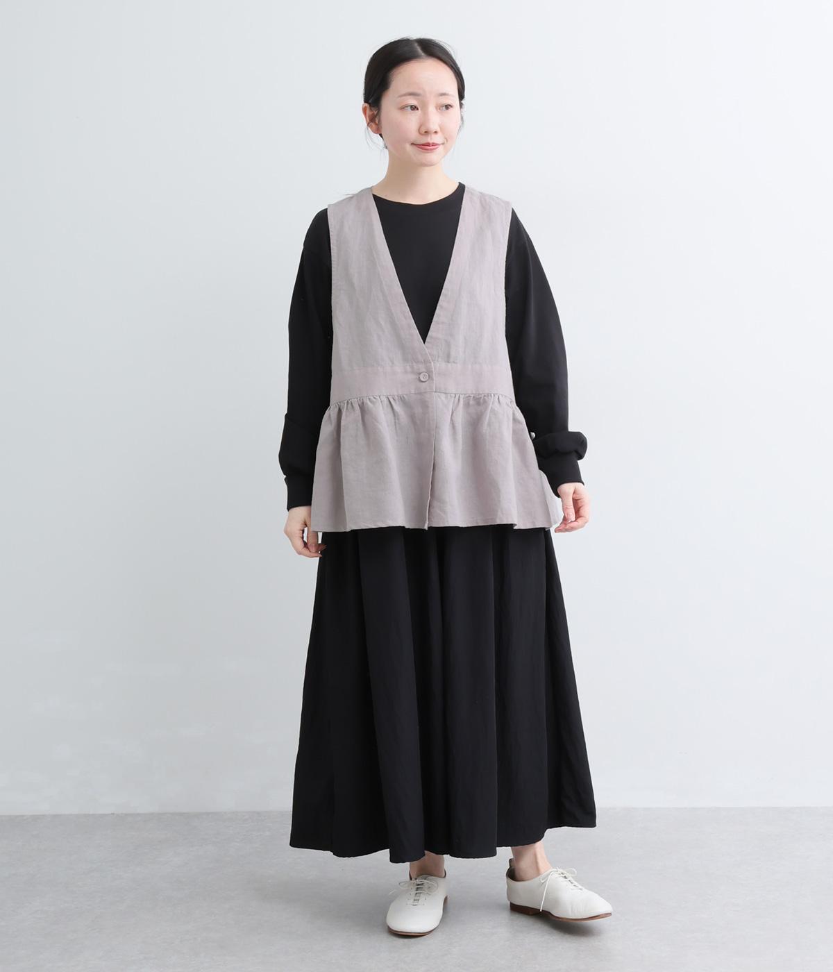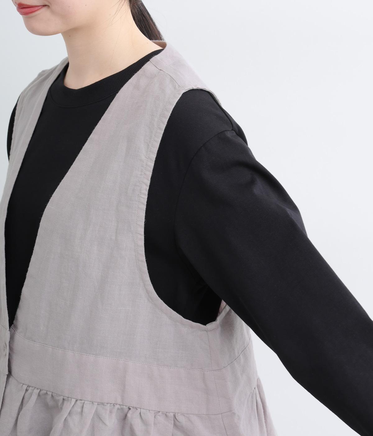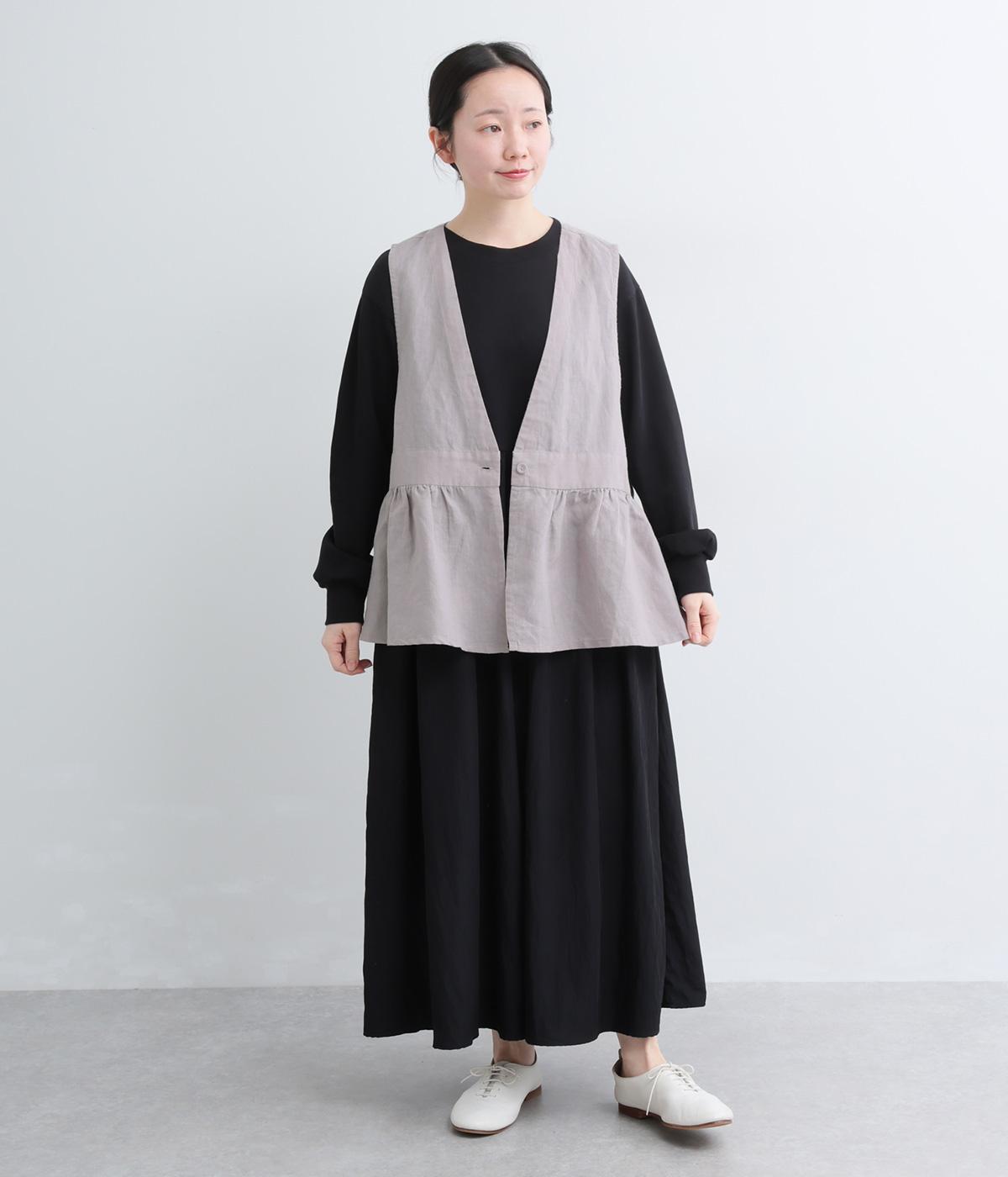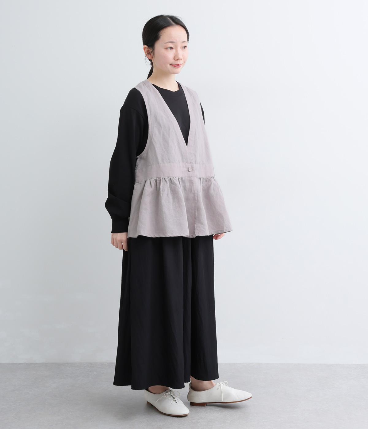 風合いのいいリネンを贅沢にたっぷり使用しました。やわらかな薄手ながらも平織りなので地合いがしっかりしていて丈夫で摩擦に強く、通気性がいいので心地よく着用できます。