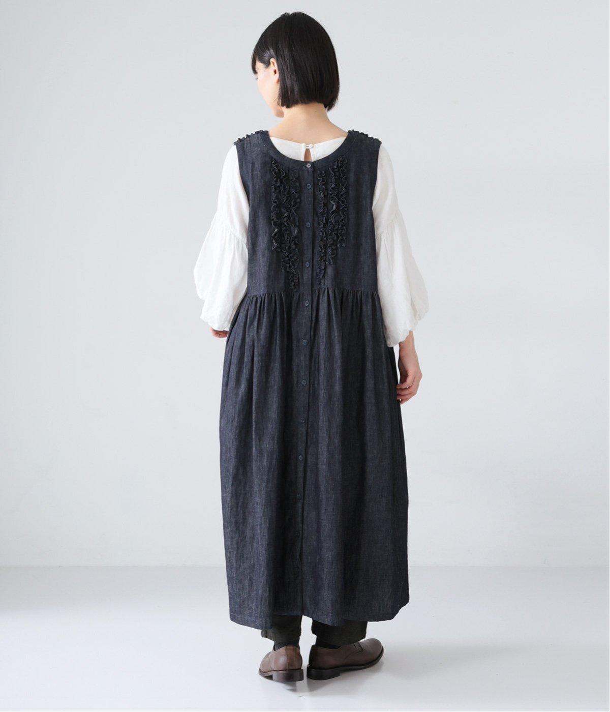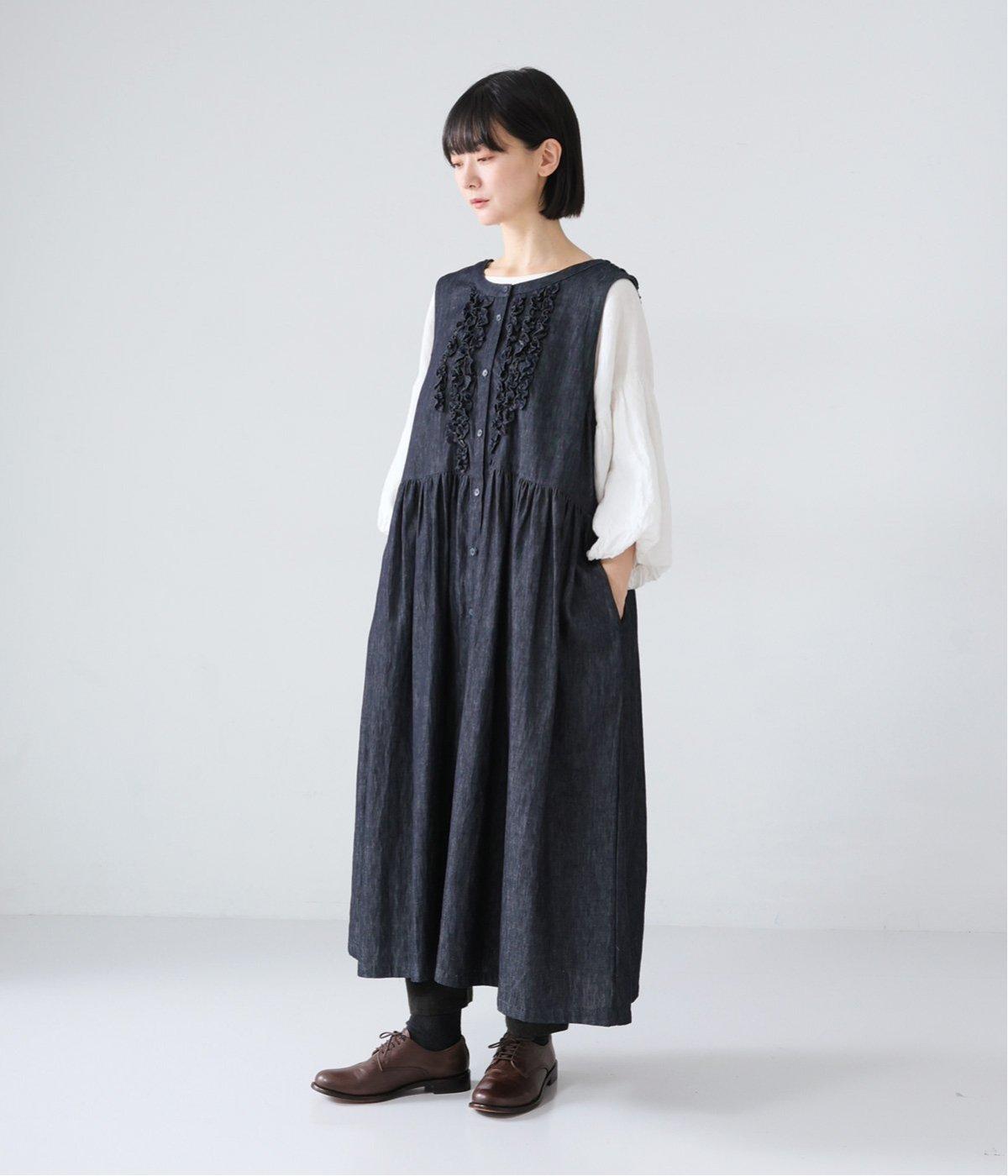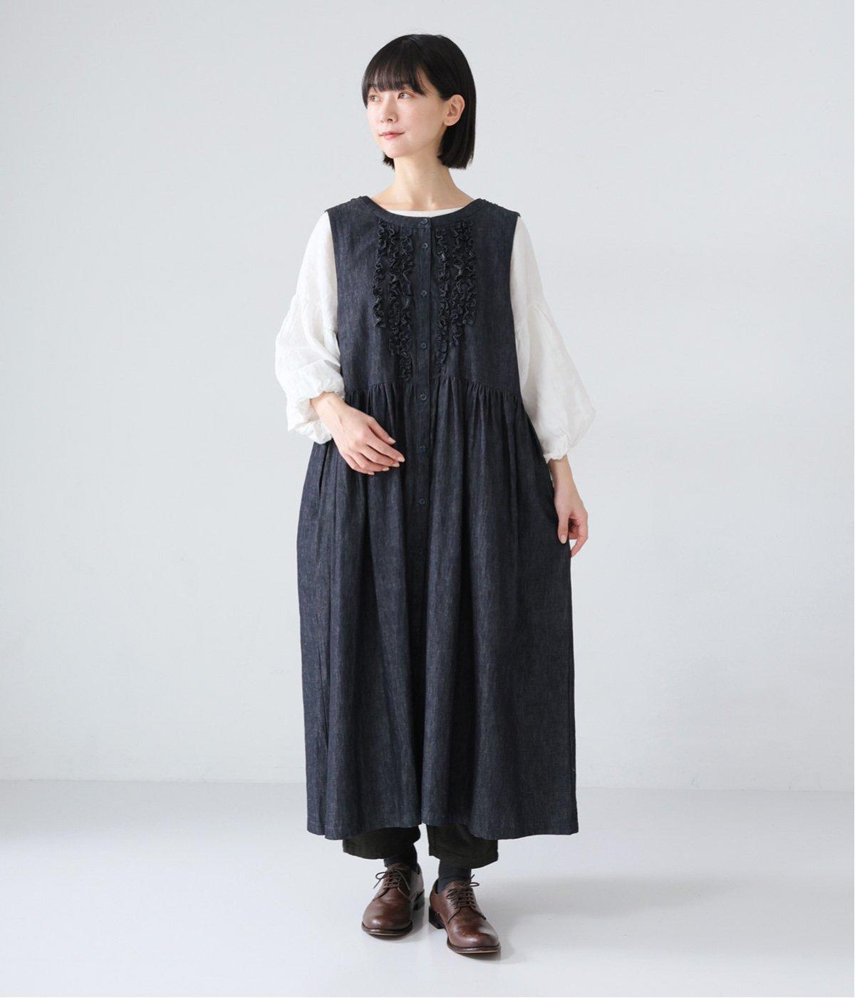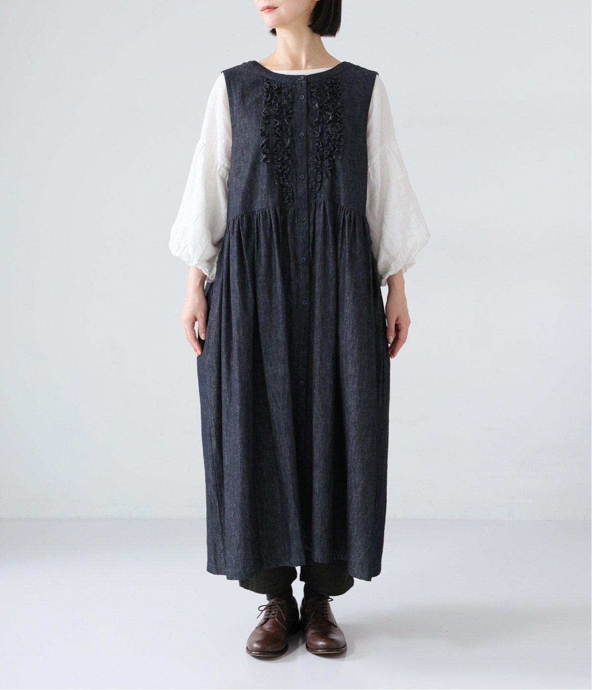 前後にあしらったフリルが、ubasokuらしさを添えるノースリーブワンピース。カラーは<