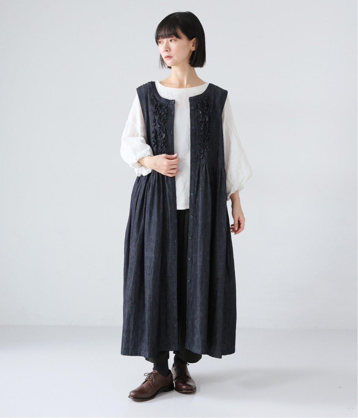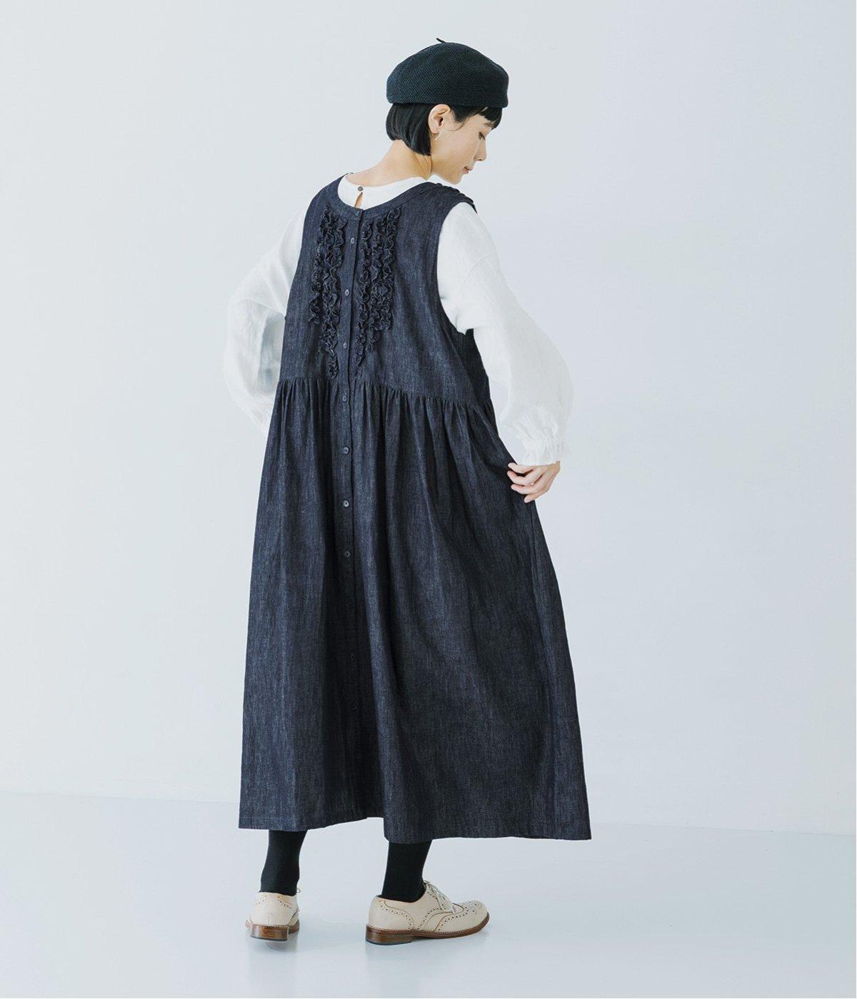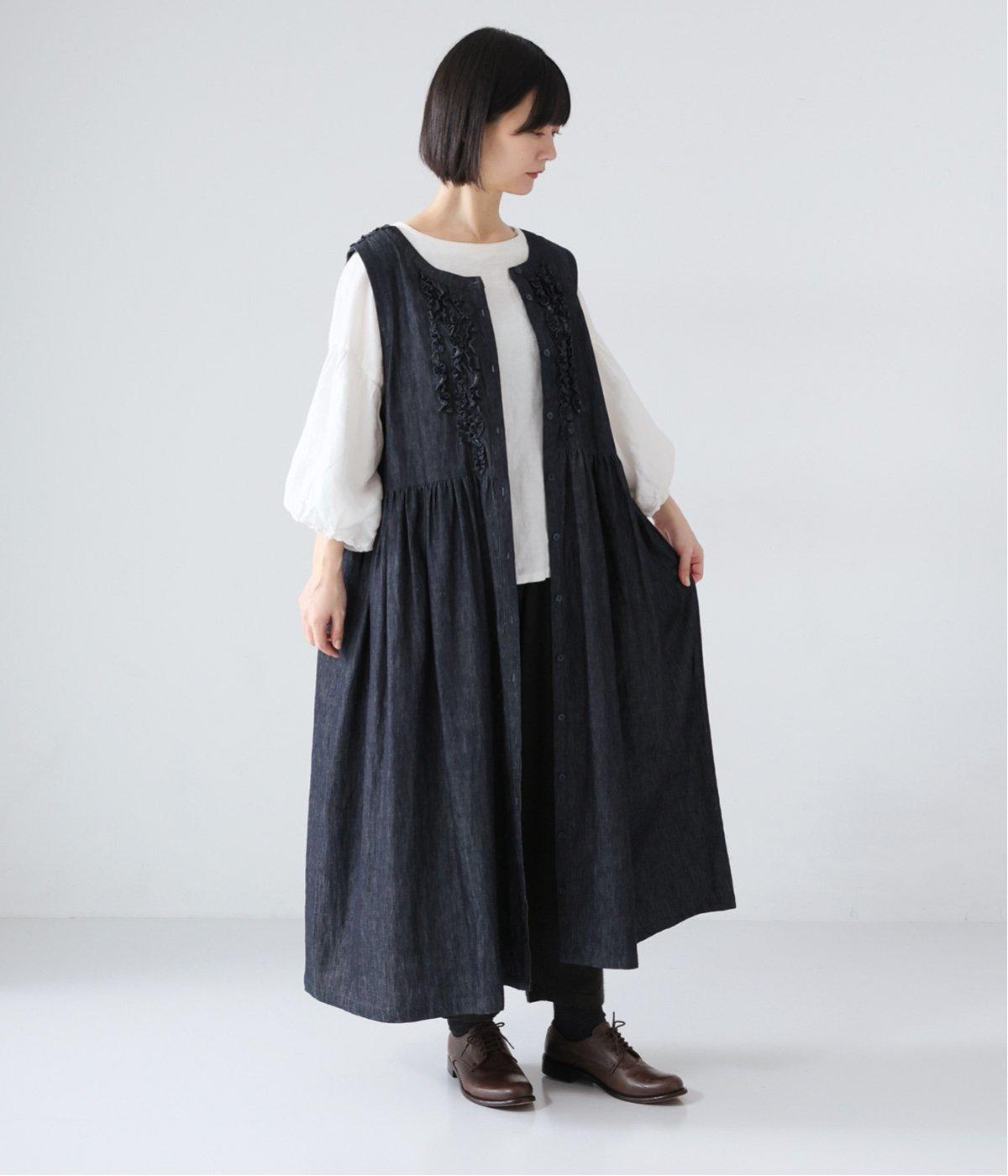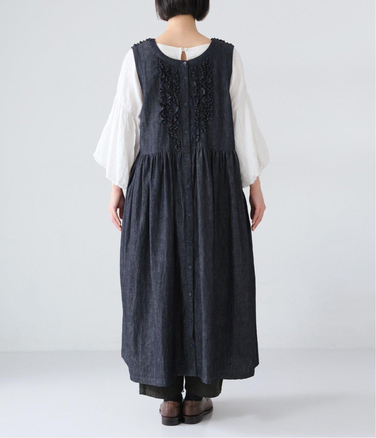 前後にあしらったフリルが、ubasokuらしさを添えるノースリーブワンピース。カラーは<