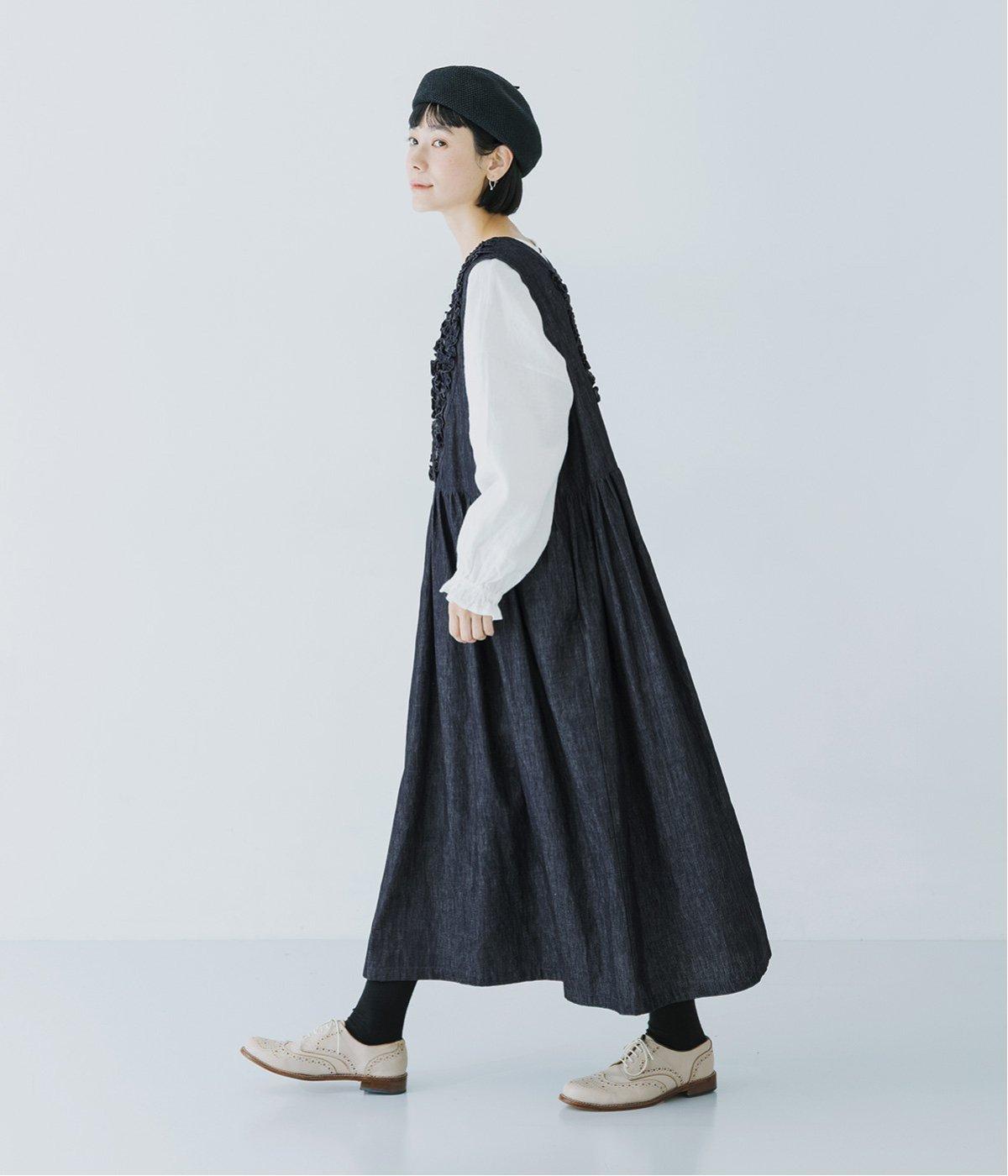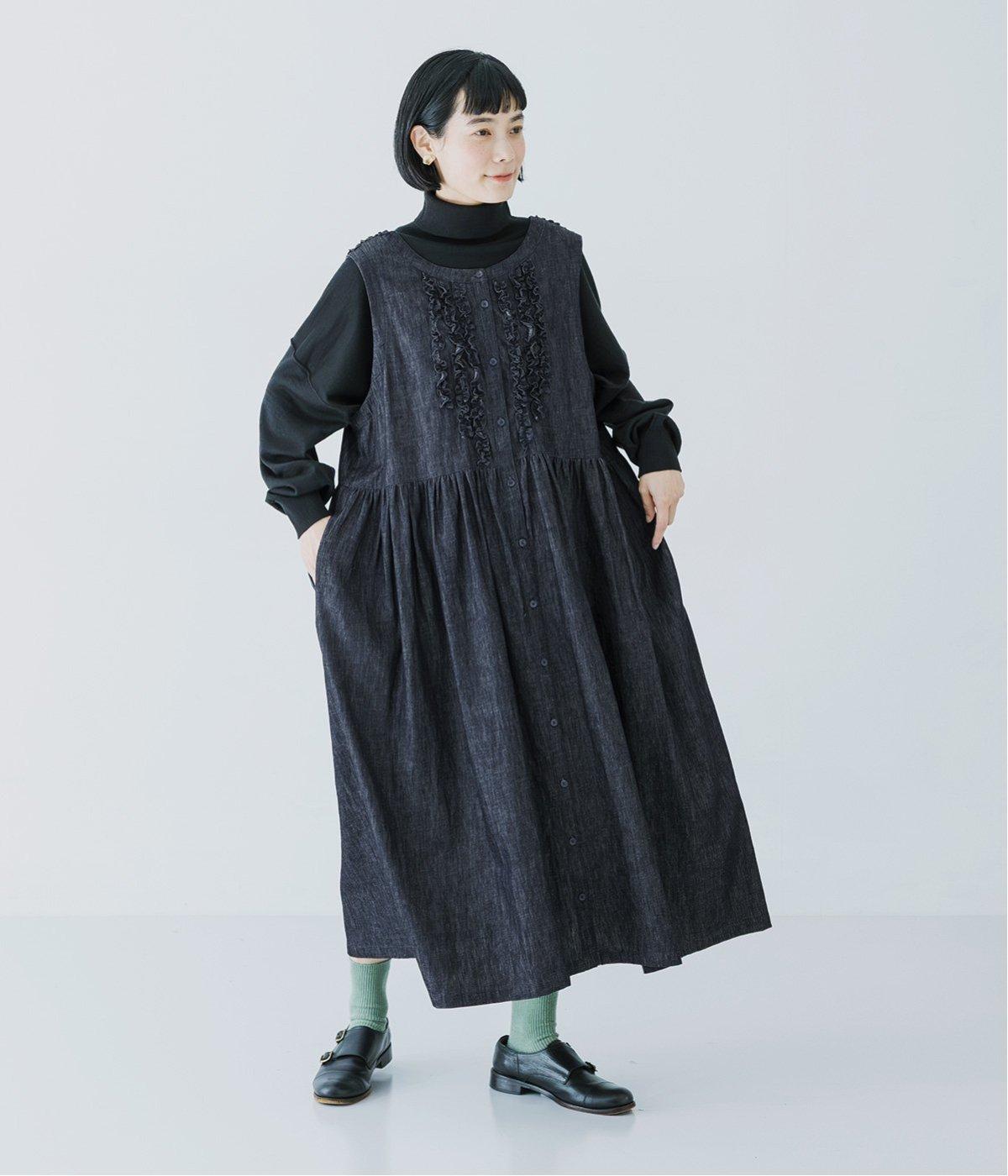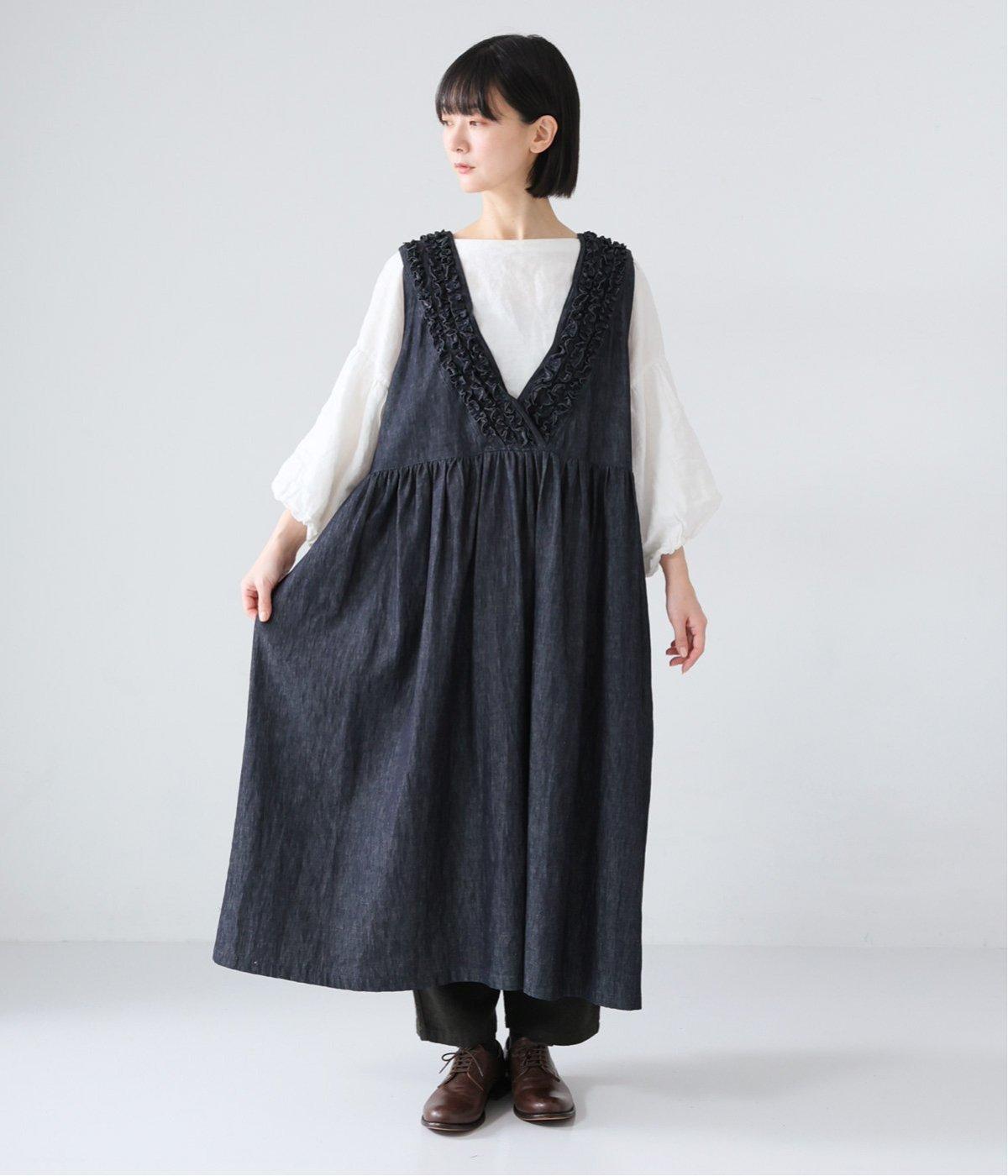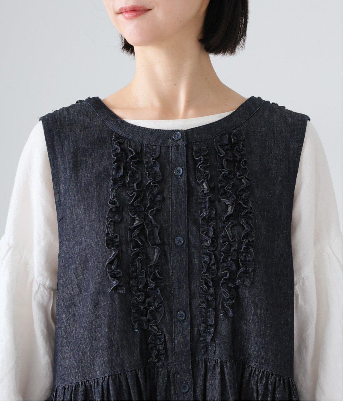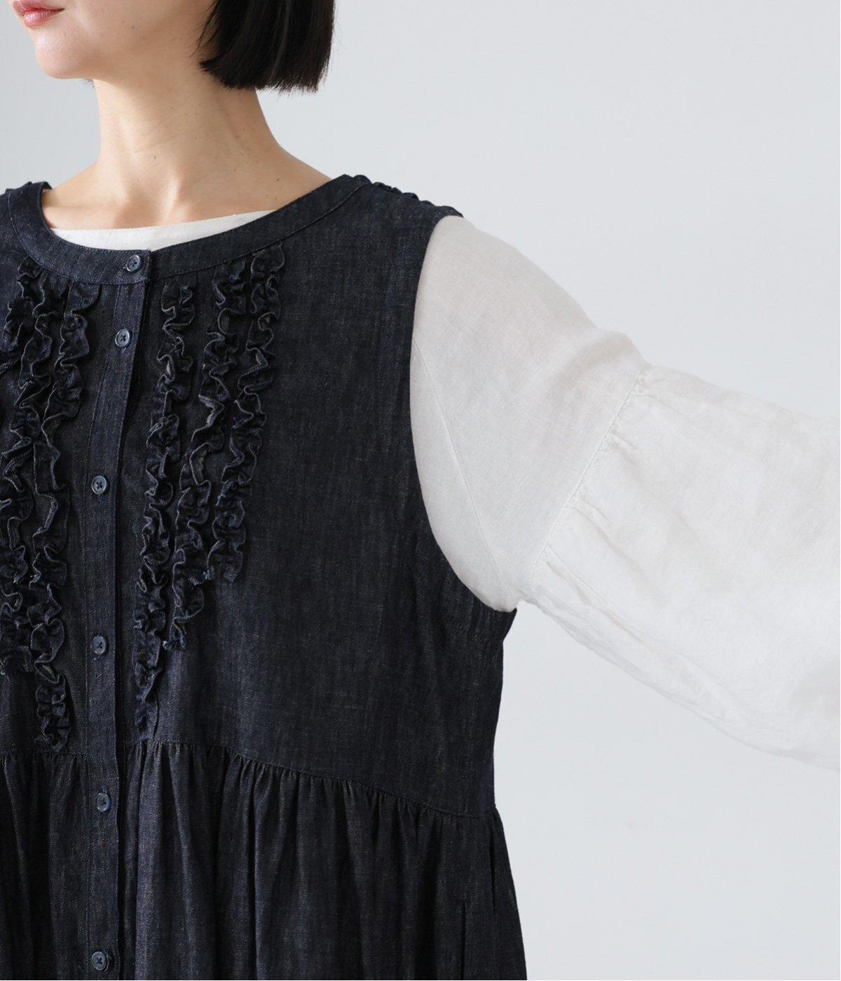 前後にあしらったフリルが、ubasokuらしさを添えるノースリーブワンピース。カラーは<