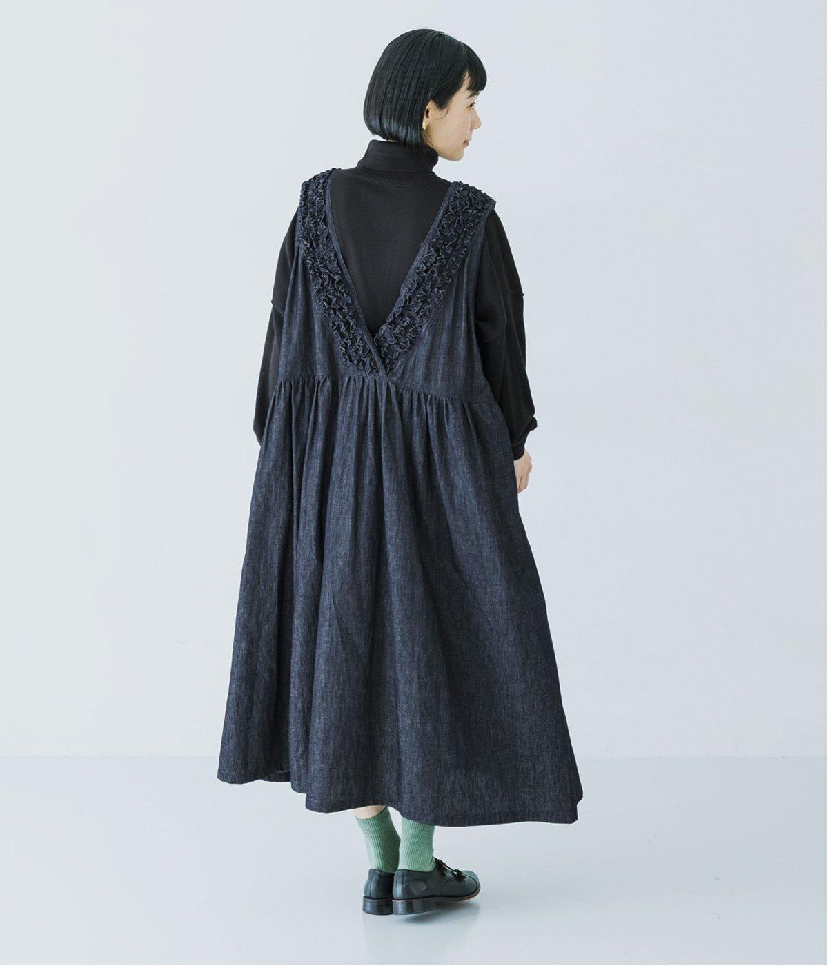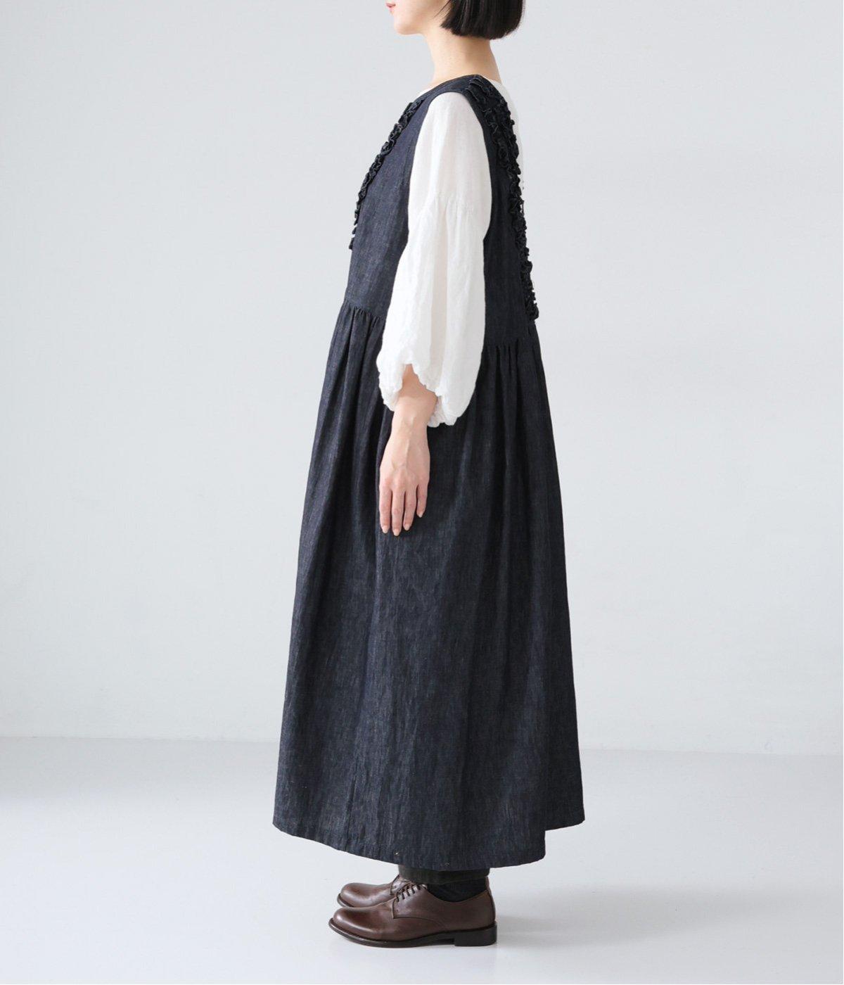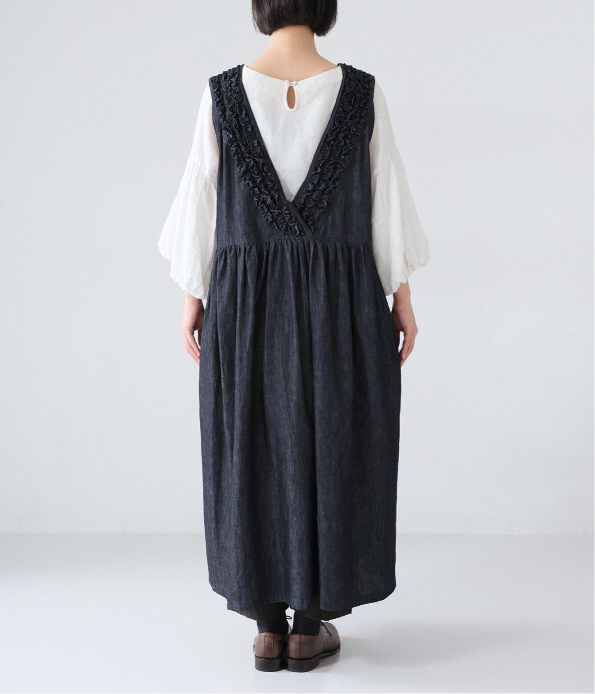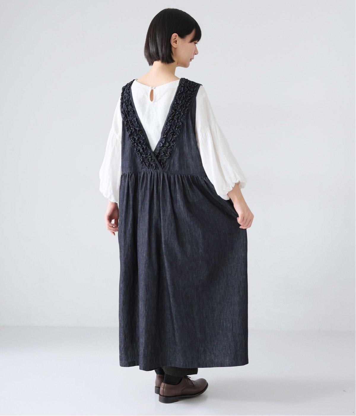 前後にあしらったフリルが、ubasokuらしさを添えるノースリーブワンピース。カラーは<